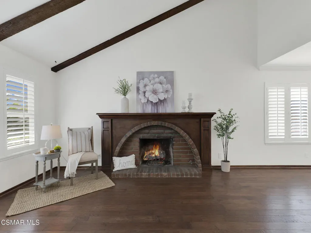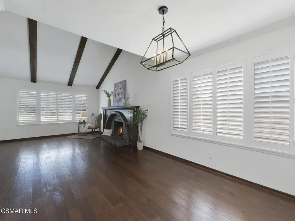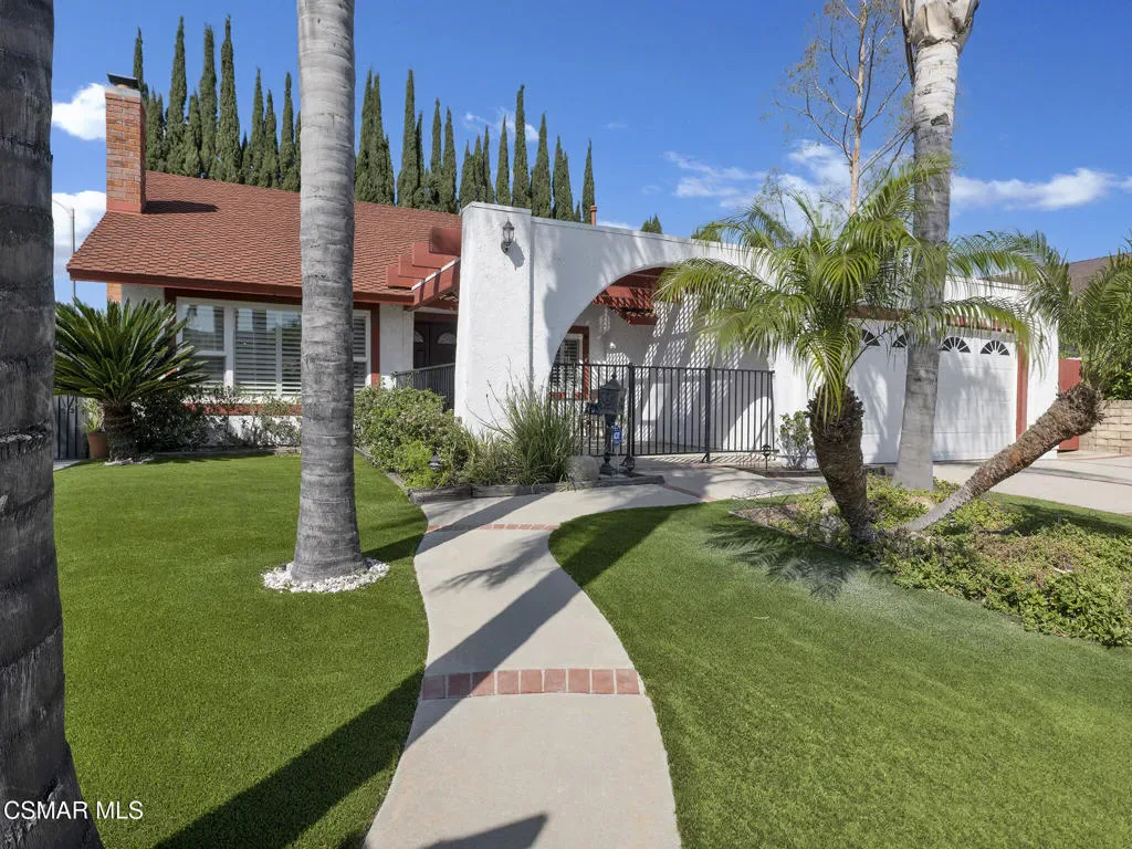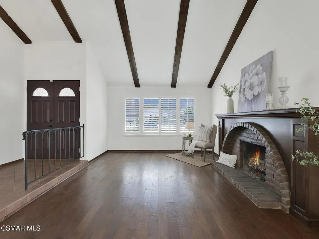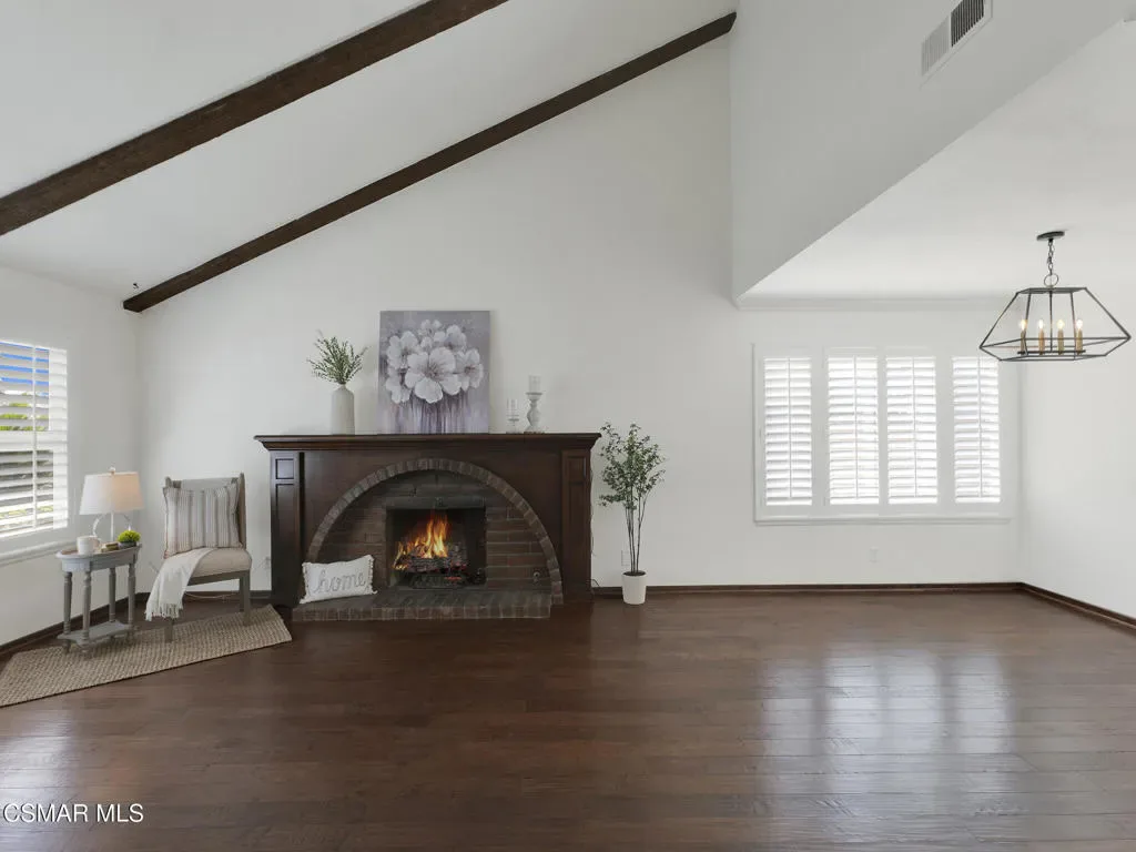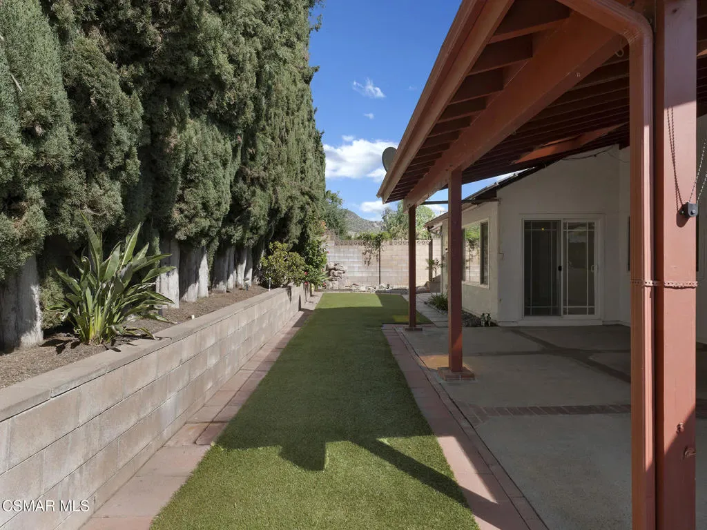 Welcome home to this beautifully updated single-story residence in the desirable east end of Simi Valley, where comfort, style, and exceptional curb appeal come together effortlessly. Surrounded by scenic mountain views, this charming home showcases thoughtful upgrades and inviting living spaces throughout.Step inside to a bright and airy living room featuring rich wood-like flooring, neutral designer paint, soaring vaulted ceilings with striking wood beams, and an oversized brick fireplace that serves as a stunning focal point-perfect for cozy evenings at home. A dramatic living room with expansive sliding doors opens seamlessly to the backyard, creating the ideal indoor-outdoor living experience.The light-filled kitchen is both functional and stylish, offering granite countertops, a charming garden window, and a spacious dining area perfect for casual meals and entertaining.Both bathrooms have been tastefully updated with granite and quartz countertops, modern finishes, and designer touches. Highlights include a walk-in shower with custom tile, an oversized sunken tub, and sleek vessel sinks.The generously sized primary suite features vaulted ceilings and direct access to the tranquil backyard, creating a peaceful retreat. Secondary bedrooms are equally spacious, complete with mirrored wardrobes and ceiling fans for year-round comfort.Additional upgrades include solar panels, dual-pane windows, plantation shutters, fresh interior paint, new ceiling fans, and elegant chandeliers that enhance the home’s modern appeal and energy efficiency.Step outside to an oversized wood-covered patio- an inviting space perfect for entertaining or relaxing at the end of the day. The low-maintenance private yard offers ample room to enjoy outdoor living.A standout feature of this property is the expansive paved RV storage–ideal for all your recreational needs.Located near top-rated schools and nestled in one of the most desirable neighborhoods with no HOA, this home offers the perfect blend of beauty, comfort, and convenience.