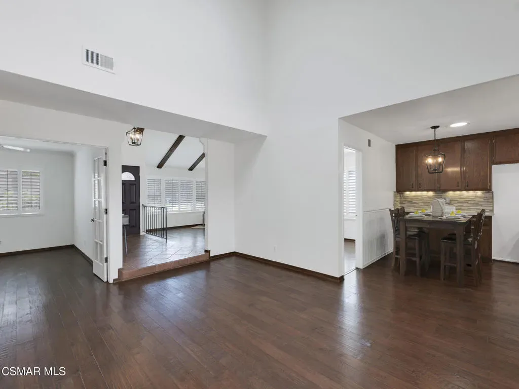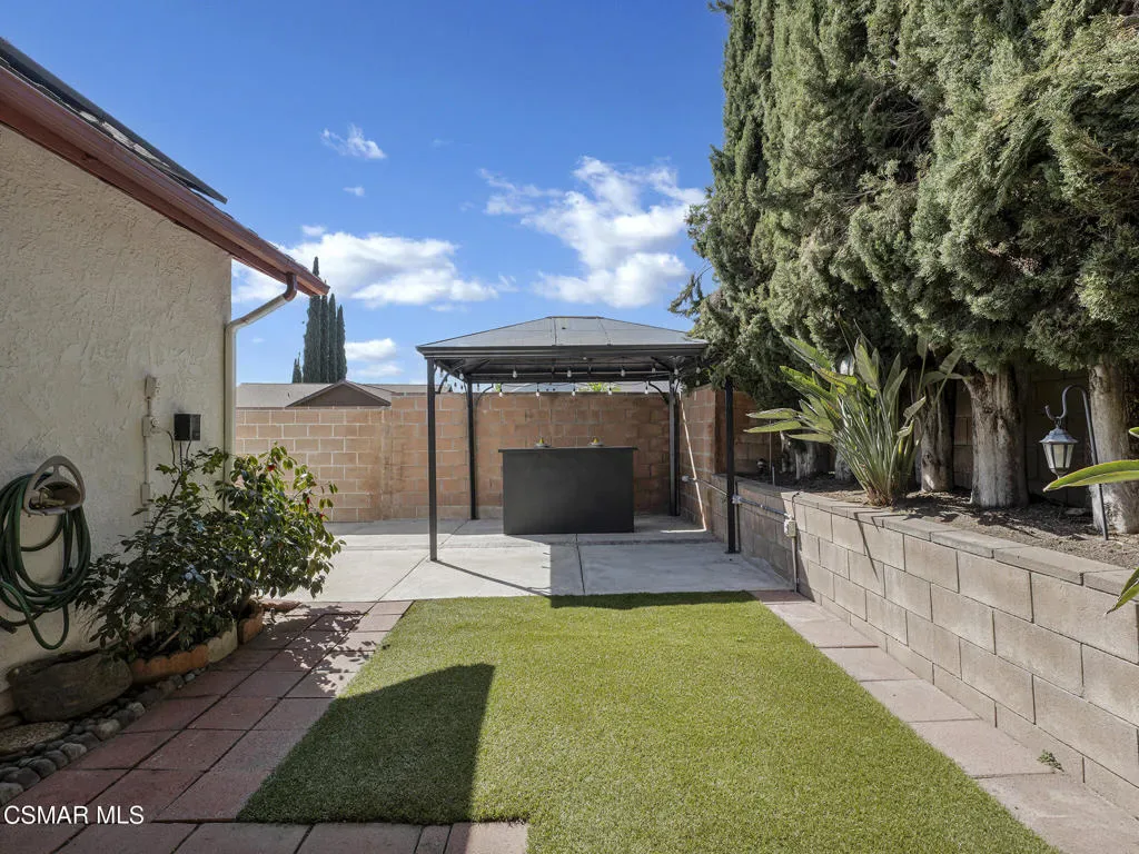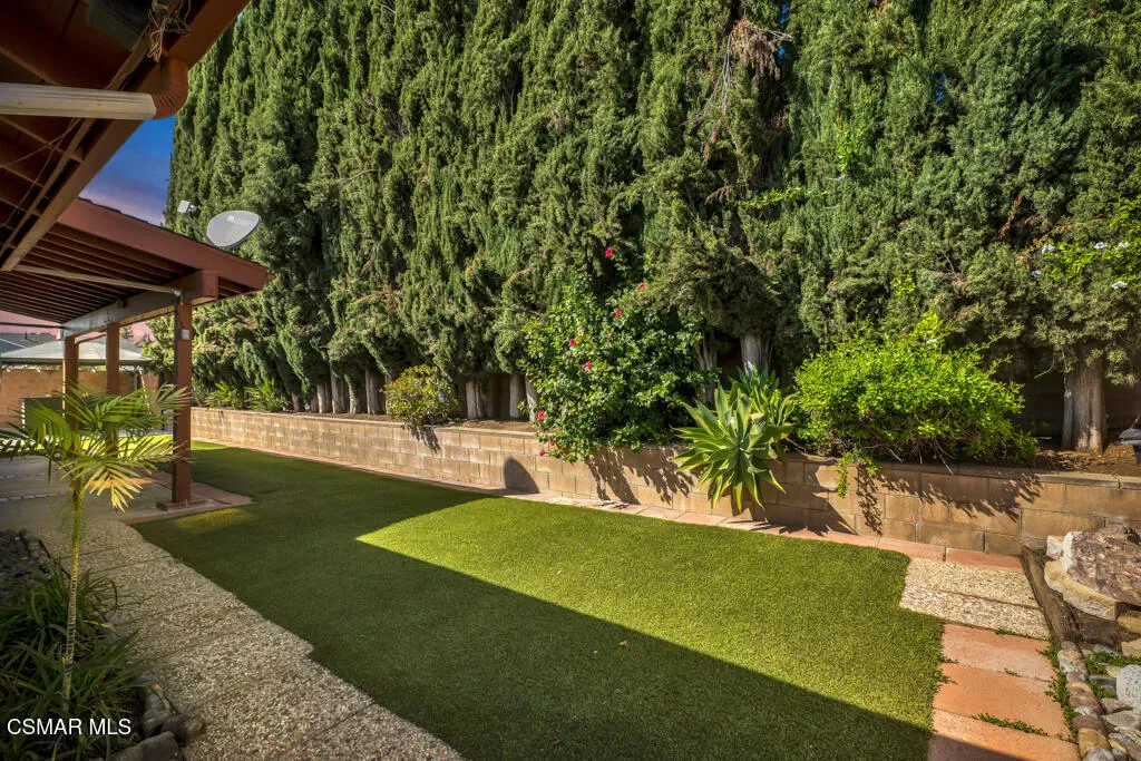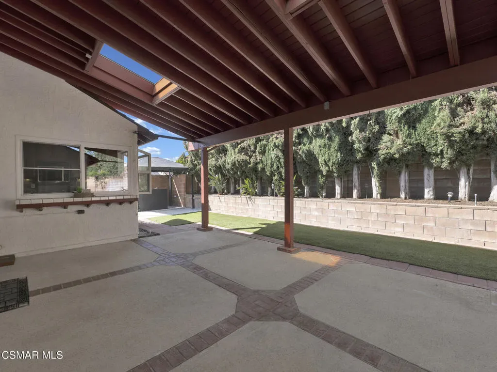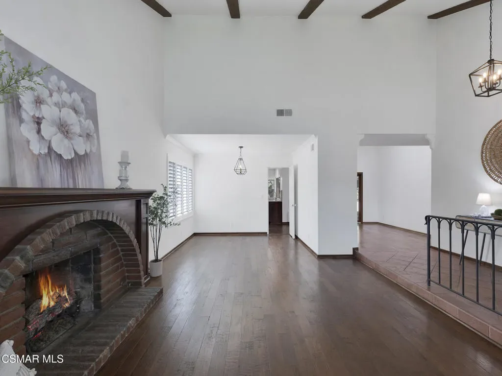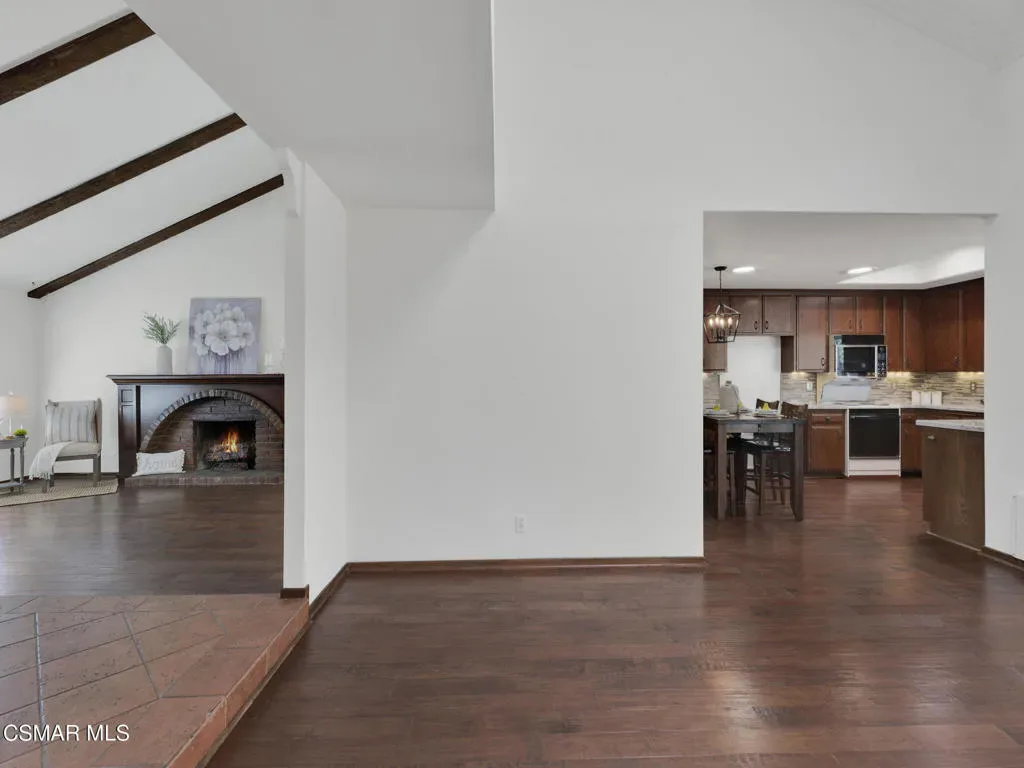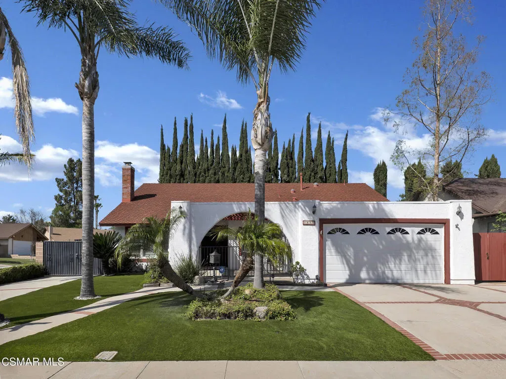 Welcome home to this beautifully updated single-story residence in the desirable east end of Simi Valley, where comfort, style, and exceptional curb appeal come together effortlessly. Surrounded by scenic mountain views, this charming home showcases thoughtful upgrades and inviting living spaces throughout.Step inside to a bright and airy living room featuring rich wood-like flooring, neutral designer paint, soaring vaulted ceilings with striking wood beams, and an oversized brick fireplace that serves as a stunning focal point-perfect for cozy evenings at home. A dramatic living room with expansive sliding doors opens seamlessly to the backyard, creating the ideal indoor-outdoor living experience.The light-filled kitchen is both functional and stylish, offering granite countertops, a charming garden window, and a spacious dining area perfect for casual meals and entertaining.Both bathrooms have been tastefully updated with granite and quartz countertops, modern finishes, and designer touches. Highlights include a walk-in shower with custom tile, an oversized sunken tub, and sleek vessel sinks.The generously sized primary suite features vaulted ceilings and direct access to the tranquil backyard, creating a peaceful retreat. Secondary bedrooms are equally spacious, complete with mirrored wardrobes and ceiling fans for year-round comfort.Additional upgrades include solar panels, dual-pane windows, plantation shutters, fresh interior paint, new ceiling fans, and elegant chandeliers that enhance the home’s modern appeal and energy efficiency.Step outside to an oversized wood-covered patio- an inviting space perfect for entertaining or relaxing at the end of the day. The low-maintenance private yard offers ample room to enjoy outdoor living.A standout feature of this property is the expansive paved RV storage–ideal for all your recreational needs.Located near top-rated schools and nestled in one of the most desirable neighborhoods with no HOA, this home offers the perfect blend of beauty, comfort, and convenience.