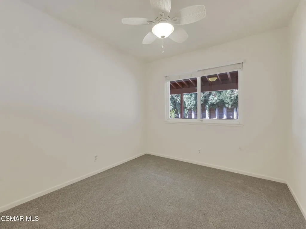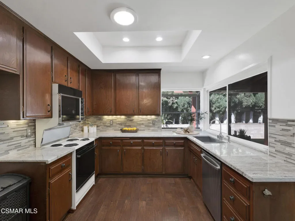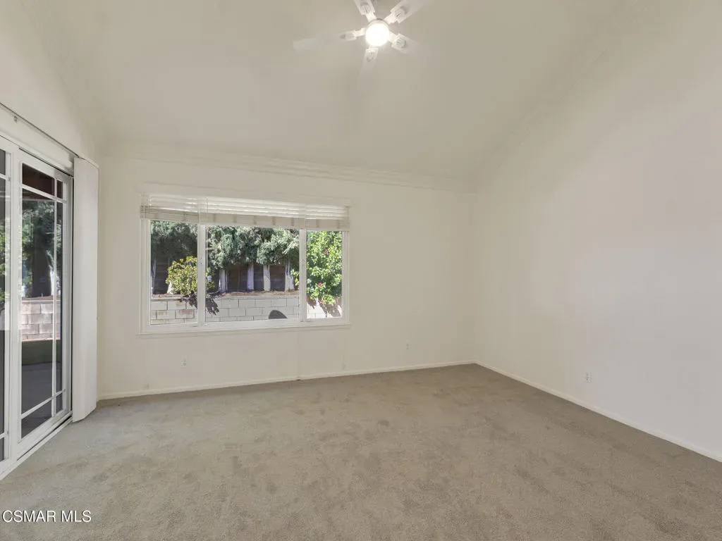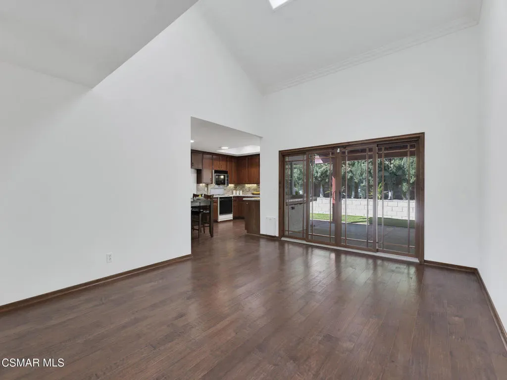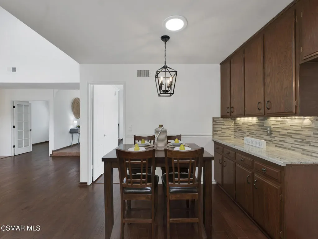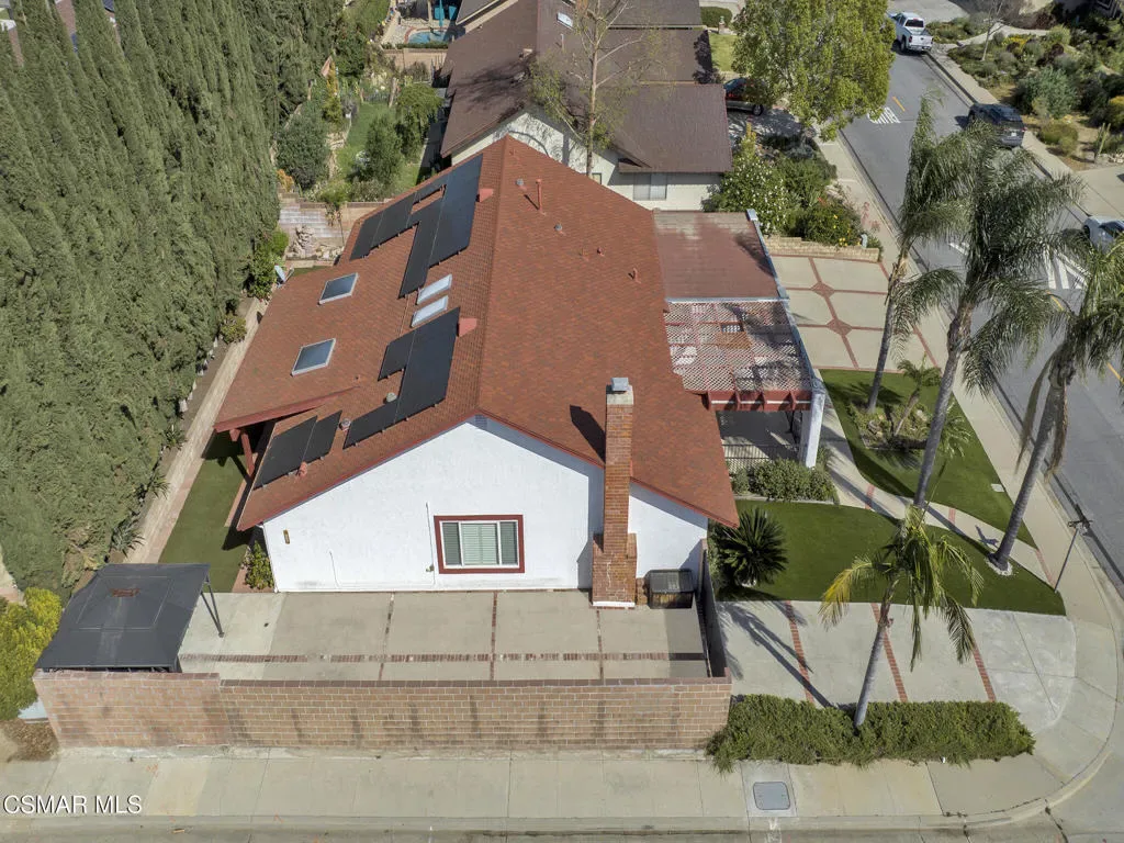 Welcome home to this beautifully updated single-story residence in the desirable east end of Simi Valley, where comfort, style, and exceptional curb appeal come together effortlessly. Surrounded by scenic mountain views, this charming home showcases thoughtful upgrades and inviting living spaces throughout.Step inside to a bright and airy living room featuring rich wood-like flooring, neutral designer paint, soaring vaulted ceilings with striking wood beams, and an oversized brick fireplace that serves as a stunning focal point-perfect for cozy evenings at home. A dramatic living room with expansive sliding doors opens seamlessly to the backyard, creating the ideal indoor-outdoor living experience.The light-filled kitchen is both functional and stylish, offering granite countertops, a charming garden window, and a spacious dining area perfect for casual meals and entertaining.Both bathrooms have been tastefully updated with granite and quartz countertops, modern finishes, and designer touches. Highlights include a walk-in shower with custom tile, an oversized sunken tub, and sleek vessel sinks.The generously sized primary suite features vaulted ceilings and direct access to the tranquil backyard, creating a peaceful retreat. Secondary bedrooms are equally spacious, complete with mirrored wardrobes and ceiling fans for year-round comfort.Additional upgrades include solar panels, dual-pane windows, plantation shutters, fresh interior paint, new ceiling fans, and elegant chandeliers that enhance the home’s modern appeal and energy efficiency.Step outside to an oversized wood-covered patio- an inviting space perfect for entertaining or relaxing at the end of the day. The low-maintenance private yard offers ample room to enjoy outdoor living.A standout feature of this property is the expansive paved RV storage–ideal for all your recreational needs.Located near top-rated schools and nestled in one of the most desirable neighborhoods with no HOA, this home offers the perfect blend of beauty, comfort, and convenience.