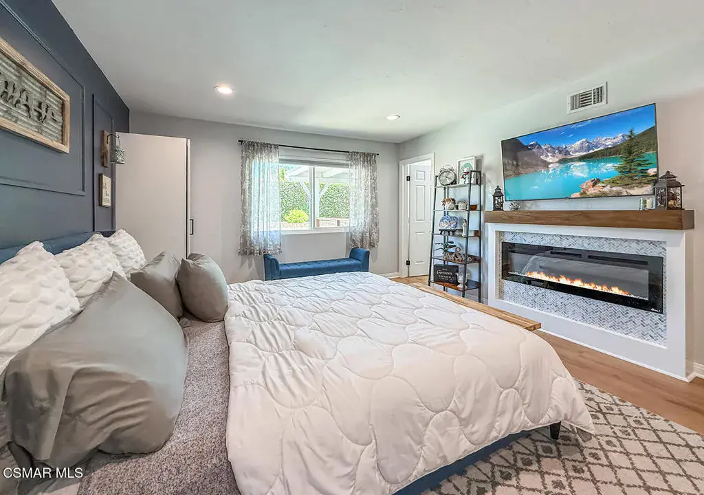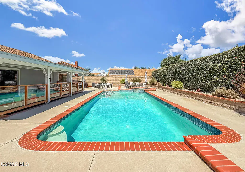 This stunning single-story residence truly has it all! From its remarkable curb appeal to an inviting landscape with newly installed turf, this home is ready for you to move in and bring your belongings. Step inside to discover elegant floors that enhance the open living spaces. The front living room features vaulted ceilings, a stylish custom wall, and a cozy gas fireplace–perfect for relaxation or entertaining. The dining room is ideal for gatherings, while a small office with double doors offers a tranquil space for work or study. With three spacious bedrooms, this home accommodates your needs seamlessly. The master suite is a true sanctuary, boasting a newly remodeled en suite bath with a sleek shower stall, a generous walk-in closet, and an electric fireplace that adds a touch of luxury to your personal retreat. The kitchen is a chef’s delight with stainless steel appliances, including a newer dishwasher and microwave, and a breakfast bar that invites casual dining. Natural light streams through the new windows, creating a warm ambiance. Step outside to your private backyard oasis, complete with a sparkling pool beneath a shaded patio cover–perfect for entertaining or relaxing. The patio features a beautiful tempered glass enclosure off the sliding door, providing security for kids while maintaining an open view. Plus, with gated RV access, you’ll have ample space for all your adventures! The home also includes a separate laundry area with direct access to the attached two-car garage. Recent enhancements, including fresh exterior and interior painting, add vibrancy to your new abode. With the entire home repiped in 2025, peace of mind comes standard. This East Simi gem combines modern comforts with functional design, just waiting for you to make it your own. Don’t miss your opportunity to own this beautiful home in a desirable neighborhood, close to parks, schools, and shopping. Schedule your private tour today and experience the charm of this incredible property firsthand!