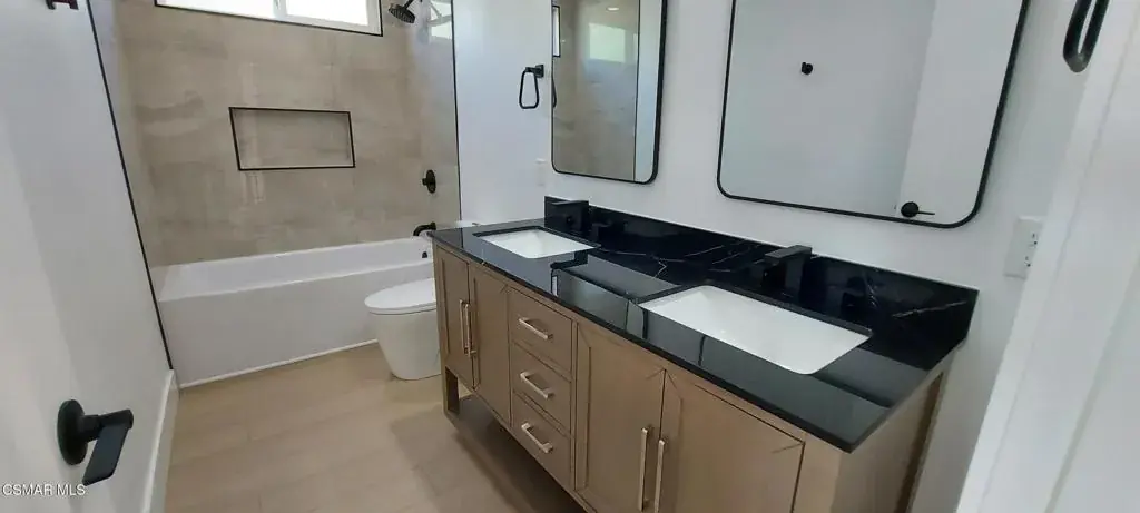 Welcome to 748 Azure Hills, a stunning 4 bed 3 bath remodeled and redesigned POOL home in the highly sought after Oakridge Estates of Simi Valley. The completely renovated home boasts great curb appeal and has been meticulously upgraded throughout epitomizing relaxed yet elegant living. You enter through the double doors and are greeted by a dramatic staircase with new modern iron railings. The large living room boasts 2 story ceilings and a giant picture window. Overhead recessed lighting has been added throughout. Enjoy hosting gatherings in the adjoining dining room with new slider and views to the backyard. The gourmet eat-in kitchen is equipped with new cabinets, quartz countertops, modern appliances and a breakfast bar/peninsula. The large family room is photo worthy with an electric fireplace flanked by custom cabinetry and shelving and is pre-wired for your big screen. There is a large bedroom downstairs which opens to it’s own patio and a full bath. New windows, doors and flooring, new plumbing and electric, new base and case moldings and so much more! The laundry room completes the first floor. The master retreat with soaring ceilings has been improved with gorgeous custom woodwork and includes 2 large closets, one walk-in, and a completely redesigned en suite with custom tile work. Two additional bedrooms and a third bathroom complete the second floor. Enjoy summer BBQ’s in your private pool oasis featuring a raised spa surrounded by custom rock river, and a built-in gas BBQ. The outdoor space is perfect for entertaining with multiple seating and lounging areas. The outside also features gated RV parking! You are also just steps away from a path to the community tennis and basketball courts. The 3-car garage has been professionally finished. This is a great place to call home!