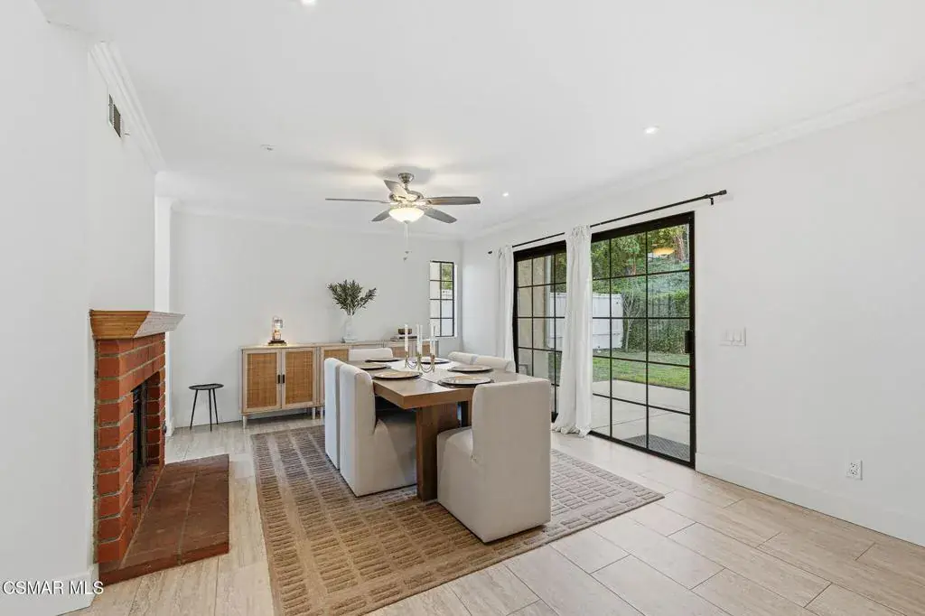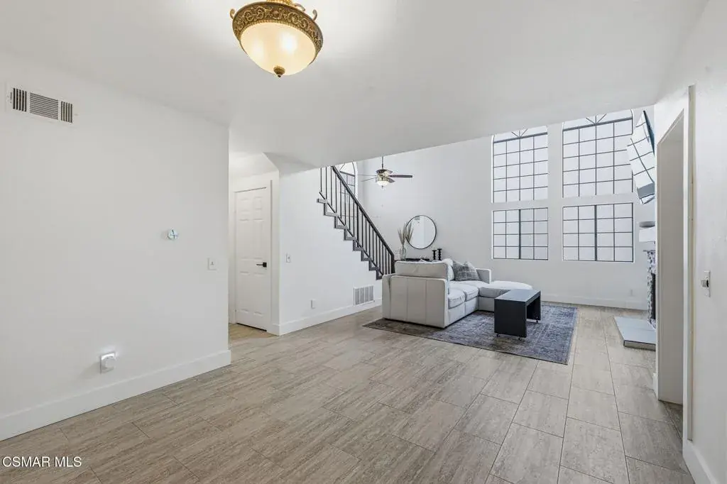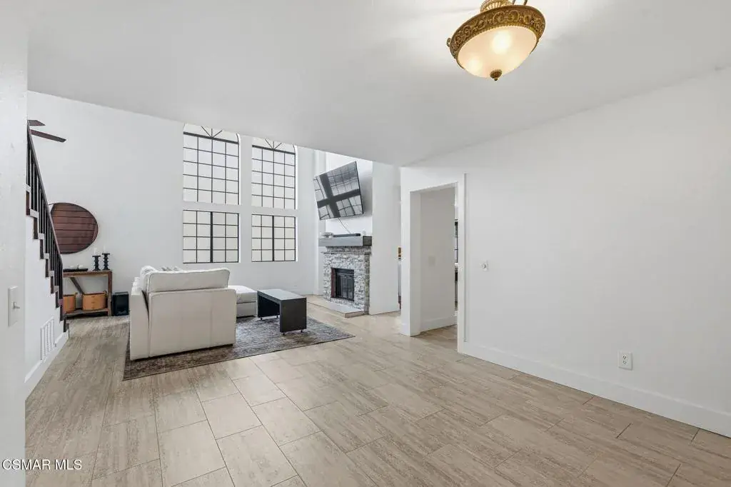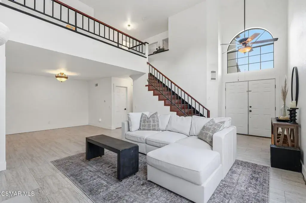 Nestled within the prestigious Fairways gated community of Wood Ranch, this beautifully updated residence offers privacy, comfort, and refined living complete with access to the community pool and spa.A charming private gated courtyard with stamped concrete patio welcomes you inside, where soaring ceilings and expansive windows fill the living room with natural light. The space is anchored by a striking custom dual-sided stacked-stone fireplace and elegant tile flooring, creating a warm yet sophisticated atmosphere. Just off the living room is a designated dining area, while the adjacent family room is currently configured as an additional dining space offering flexible living and entertaining options.The inviting family room features a brick fireplace and recessed lighting and flows seamlessly into the fully remodeled kitchen, thoughtfully designed for both everyday living and entertaining. Highlights include granite countertops, maple cabinetry, stainless steel appliances, a center island, and a sunny breakfast nook.Upstairs, wood staircases with wrought-iron banisters lead to all bedrooms. The tranquil primary suite boasts vaulted ceilings and a private balcony. Ideal for enjoying peaceful neighborhood and hillside views. The luxurious ensuite bath offers a soaking tub, separate shower, dual vanities, and a walk-in closet. Both secondary bedrooms are currently set up as office spaces and offer slight views of the Wood Ranch Golf Course.Additional features include a two-car attached garage with EV charging and a serene backyard complete with grass area, fruit trees,patio and seating area with white gravel. Perfect for outdoor dining or relaxing evenings.Situated in a quiet and private enclave, this home combines gated-community living with everyday convenience and charm.