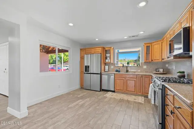 Nice Home in the Texas Tract. Simi Valley home in a Great Location. Open Floor Plan w/ an Upgraded Kitchen w/ Granite Counters, a Garden Window & a Dining Area w/ a Barn Door access to a Guest Bathroom. Large Living Room w/ a Wood Burning Fireplace & Recessed Lighting. Newer Bathroom w/ a Tub & Shower. Primary Bedroom w/ Recessed Lighting & 2 Closets. New Roof. Dual Pane Windows. 2 Car Garage w/ Newer Large Work Bench & Cabinets. Upgraded Central Air & Heating. Tankless Water Heater. Large Backyard w/ a Covered Patio & room to build a pool or possible ADU. Close to schools, shopping, entertainment & The Simi Hills Golf Course.