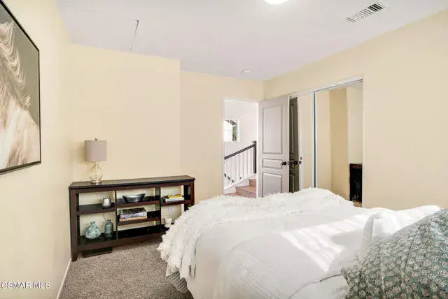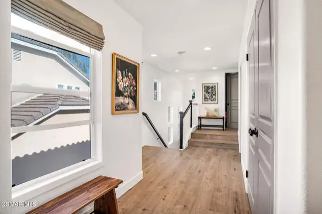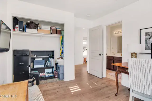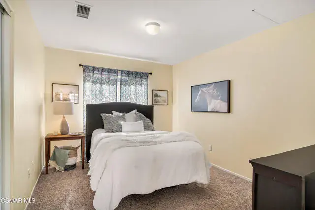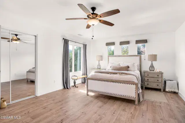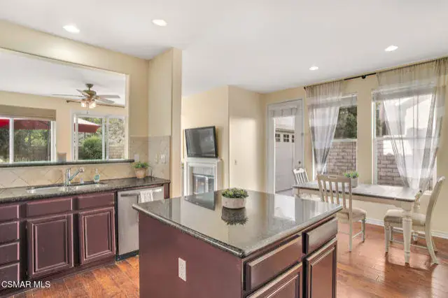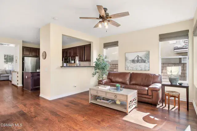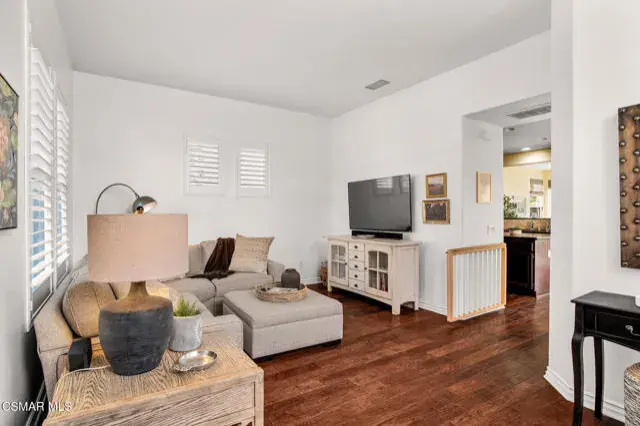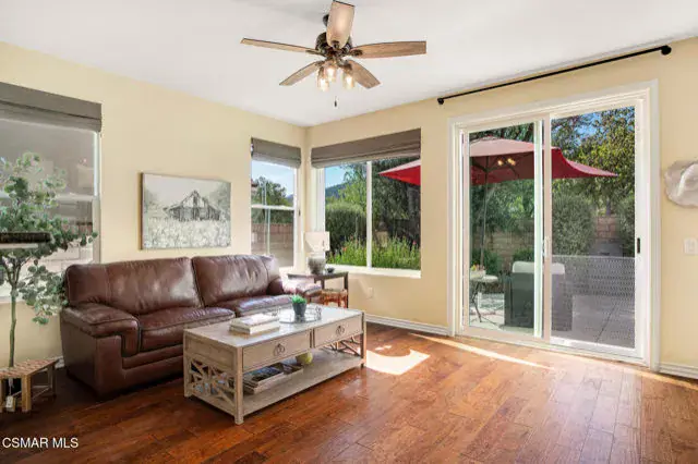 Here’s your chance to own a home in the highly sought-after guard-gated Long Canyon Windmill community at Wood Ranch–a neighborhood known for its tree-lined streets, resort-style amenities, and easy access to parks, trails, golf, shopping, and dining. Offering 4 bedrooms, 2.5 baths, and 2,069 sq. ft. of living space on a 3,484 sq. ft. lot, this home combines comfort, style, and convenience in one inviting package. Step inside to a light-filled living room with soaring ceilings and warm wood flooring that set the tone for the open, welcoming layout with a downstairs remodeled powder room. The granite kitchen features dark wood cabinetry, a tumbled travertine backsplash, a center island with storage, stainless steel appliances, and a roomy pantry–perfect for both everyday meals and entertaining. Just off the kitchen is a dining area with three large windows, creating a bright and comfortable space for enjoying meals. The kitchen flows seamlessly into the family room, where a tile fireplace adds a cozy touch, and sliding doors open to a backyard with a concrete patio for outdoor dining and block wall fencing for privacy. Upstairs, wood-like flooring extends through most of the space. The primary suite is a peaceful retreat with hilltop views, a large walk-in closet, and an ensuite bath with a soaking tub, separate shower, and dual-sink vanity. Three additional bedrooms and a full hall bath with dual sinks provide plenty of space for family, guests, or a home office, and the upstairs laundry room adds convenience. The front yard features lush landscaping with terracotta tile accents, and the property includes a direct-access two-car garage. As a Long Canyon resident, you’ll enjoy four sparkling pools and spas, three clubhouses, a fitness center, tennis courts, playgrounds, and scenic walking and biking trails–all within a secure, beautifully maintained setting.