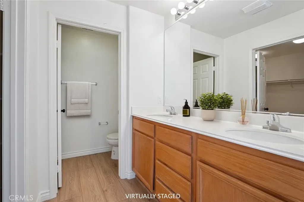 **THIS FOR 2026** CELEBRATE LIVING THE NEW YEAR IN CASA FLORES! A 55+ Gated Community! Move-in ready and Beautifully Maintained, this DETACHED 1,670 sq. ft. Home is Ideally Located on a Prime Interior Lot within the desirable Casa Flores community. Residents enjoy a Secure Gated Entrance, a Sparkling Pool and Spa, as well as Beautifully Landscaped Grounds with a Park and Picnic Area. Inside, the home offers a light-filled, Open Floor Plan with Soaring Ceilings, Plush Carpeting, and Tile Flooring. The Spacious Living and Dining Areas flow seamlessly into the Well-Equipped Kitchen, which features Recessed Lighting, ample cabinet space, and Quality Appliances – Perfect for everyday Cooking and Entertaining. The Main Level Primary Suite provides the ease of single level living and includes Vaulted Ceilings, a large walk-in closet, Sliding Glass Doors to the Backyard, and a Private Bathroom with dual sinks. Upstairs, a flexible Loft Area offers endless possibilities – Ideal for a Home Office, Media Room, or even a Potential Third Bedroom. Step outside to a peaceful, Private Backyard with mature fruit trees and a Spacious Patio Area, perfect for relaxing, dining al fresco, or hosting weekend BBQs. Additional features include Central Air and Heat, Dual Pane Windows, Indoor Laundry, and an attached, Direct Access Two-Car Garage. Conveniently located Near Shopping, Dining, and easy Freeway Access, this Rare Opportunity in Casa Flores won’t last long.