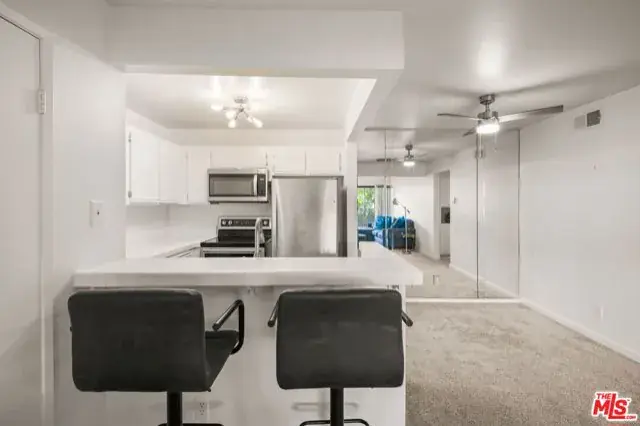 Welcome to this recently updated 1-bedroom, 1-bath condo in the desirable Le Parc community of Simi Valley. This lower level residence blends comfort, style and convenience. The inviting living room and bedroom both open to a private patio – perfect for morning coffee, reading or relaxing outdoors. The kitchen features newer appliances, generous cabinetry and an easy flow into the dining area, making it ideal for everyday living. For added convenience, the residence has a new LG stackable washer and dryer, plus a tastefully upgraded bathroom with modern vanity, countertop and sink. This residence includes a private 1-car garage, offering both parking and extra storage space. Enjoy resort-style living in a well-maintained community with multiple pools, soothing jacuzzis, and beautifully landscaped grounds. Just minutes from shopping, dining, parks and freeway access.