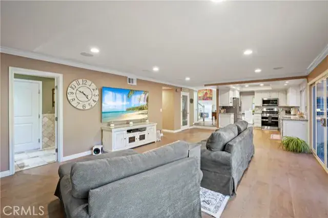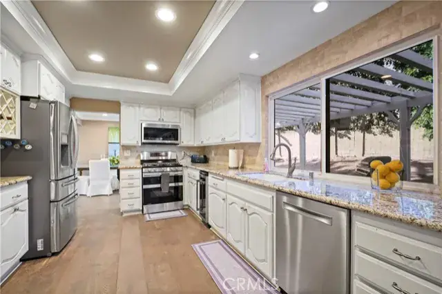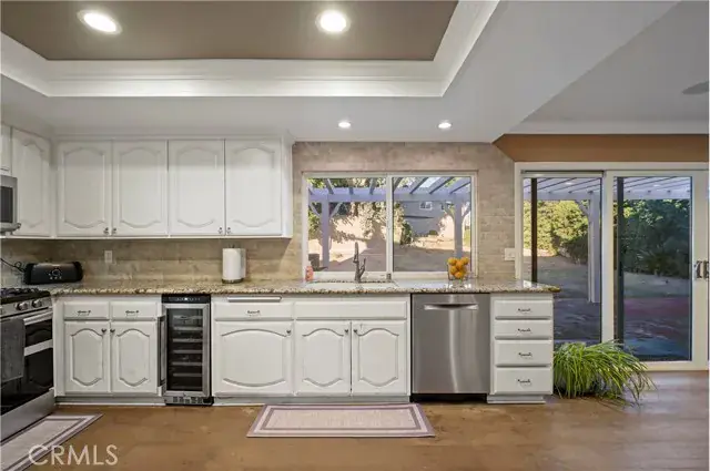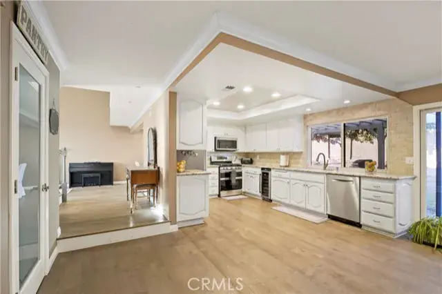 Welcome to 2229 Chesterton, a beautifully upgraded 5-bedroom, 3-bath home nestled in a peaceful cul-de-sac within one of Simi Valley’s most desirable neighborhoods. This remarkable residence is designed with comfort, style, and charm, seamlessly blending thoughtful updates with timeless charm. You are sure to love the spacious primary suite located upstairs, adorned with beautiful engineered wood flooring. The home features new insulation combined with new innovative COOL-ROOF Shingles, which reflect more heat, keeping the temperature down during the summer months, along with fresh exterior paint that provides a crisp, clean look. The inside is filled with natural light entering through the energy-efficient Dual-pane windows, recessed lighting, and elegant crown molding enhance the aesthetic throughout the entire home. The main level showcases a luxurious open concept, complemented by a custom staircase. The living room’s wood/gas burning fireplace is perfect for s’mores, and a mantle that eagerly awaits stockings with your young stars’ names on them, perfect for cozy gatherings. The gourmet kitchen and dining area are truly a chef’s delight. The remodeled kitchen features granite countertops and soft-close cabinets, equipped with high-end stainless-steel appliances, including a 5 Burner dual oven door, double oven range, and a dishwasher. An expansive pantry offers additional storage and preparation space, while the seamless flow into the pergola patio allows for ideal indoor-outdoor enjoyment. The huge backyard is a blank canvas ready for an artist to make it their own personal oasis. (BE ADVISED: 26′ ft of Block wall recently fell over due to neighbors’ trees and root system. Seller is willing to split the cost of the buyer’s choice replacement barrier of choice.) ADU potential for multigenerational separate living.MUST SEE! This won’t last.