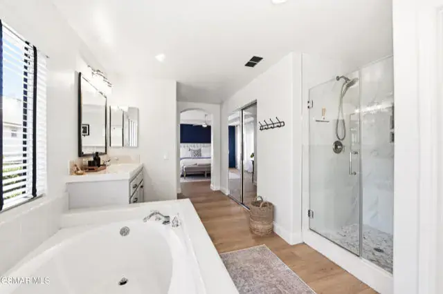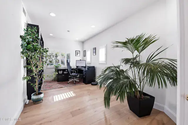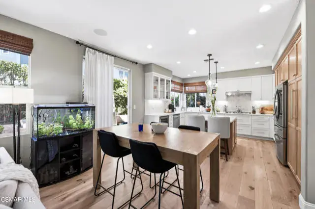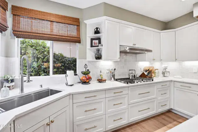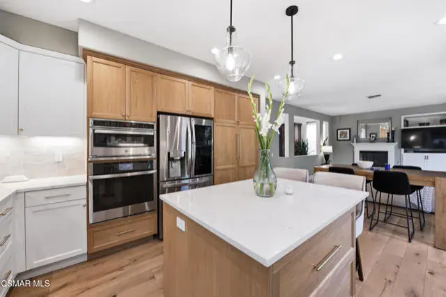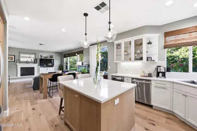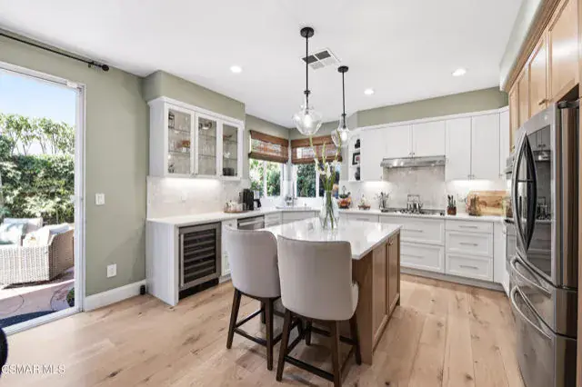 Immaculate 4-bedroom, 3-bath home offering over 2,800 sq. ft. of living space on a 3,920 sq. ft. lot, showcasing impeccable attention to detail in every update and refinement. In addition to the spacious rooms, this home features a private office ideal for remote work and a versatile loft that provides the perfect space for a media room, play area, or additional lounge. This stunning residence blends quality craftsmanship with modern design and comfort throughout. Enjoy fresh interior paint, engineered wood flooring on the first floor and stairs, durable newer beautiful flooring upstairs, and new 6 inch baseboards. Smart thermostats, upgraded lighting, and a newer water heater add convenience and efficiency. The custom kitchen is a true centerpiece, featuring solid wood soft-close cabinetry, quartz countertops with a waterfall edge, handcrafted Zellige tile backsplash, solid brass hardware, and an undermount workstation sink. Premium appliances include a smart oven with built-in air fryer, convection/microwave oven, upgraded range and hood, and a wine refrigerator. Elegant pendant and under-cabinet lighting on dimmers enhance the space. The family room offers a custom solid wood TV cabinet, in-ceiling Sonos speakers, and upgraded electrical in the kitchen and living areas. Upstairs, the primary suite provides a serene retreat with new flooring, paint, and ceiling fan. The remodeled primary bath features a frameless glass shower, updated tile, new mirrors, and designer lighting. Additional highlights include an updated first-floor guest bath, shutters in the office and laundry room, Roman shades in the family and kitchen areas, a new water heater, and solar panels. This immaculate home is move-in ready, combining luxury finishes, thoughtful upgrades, and timeless style — conveniently located near parks, schools, and shopping.