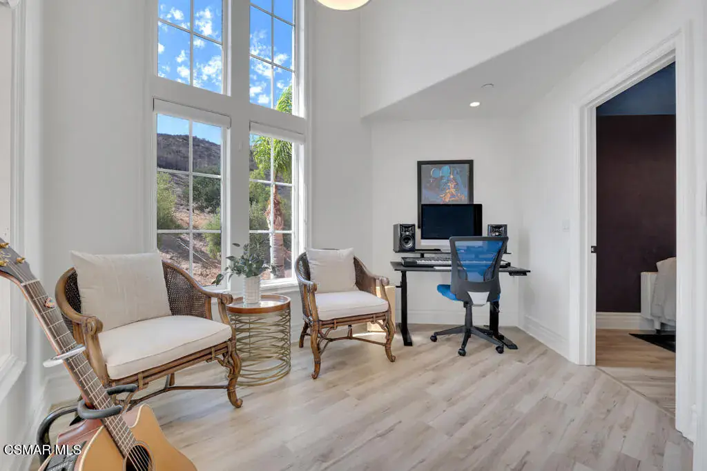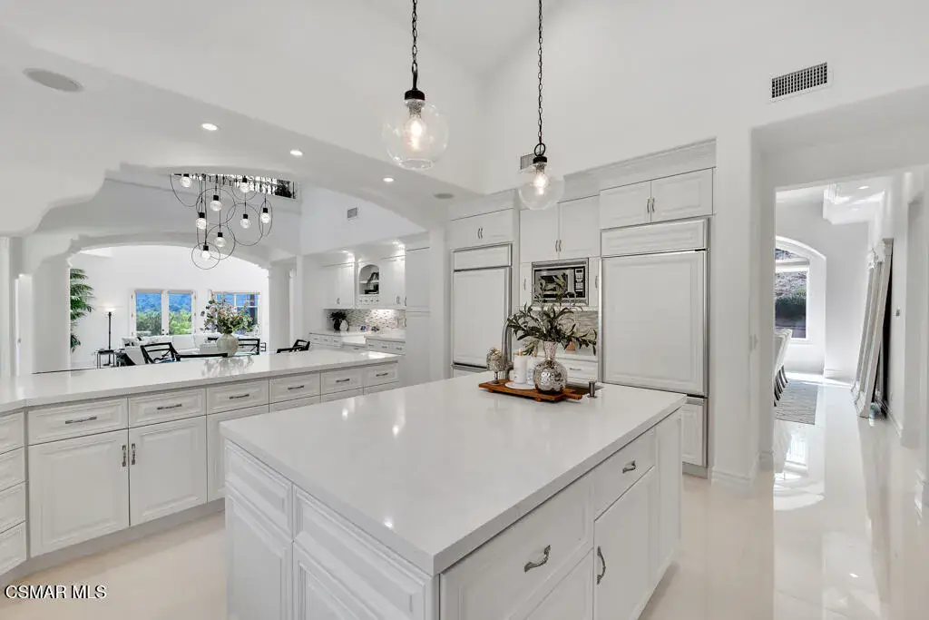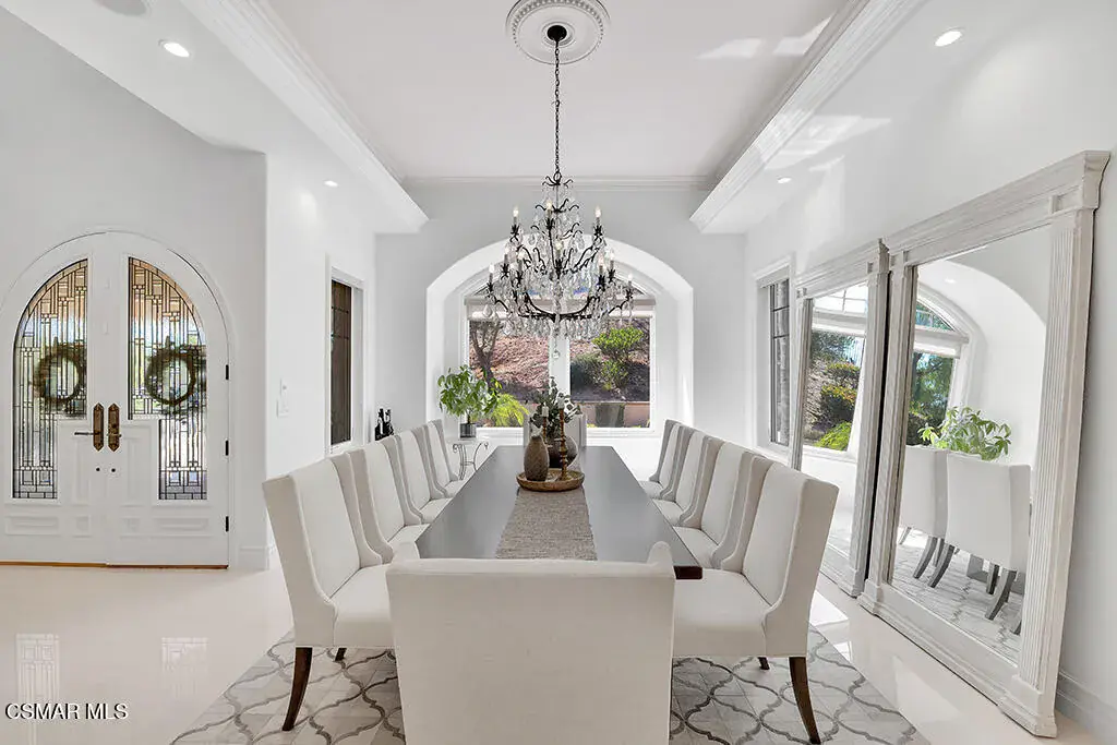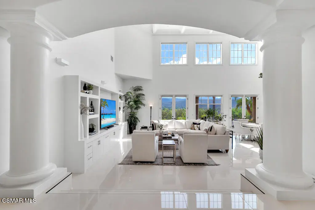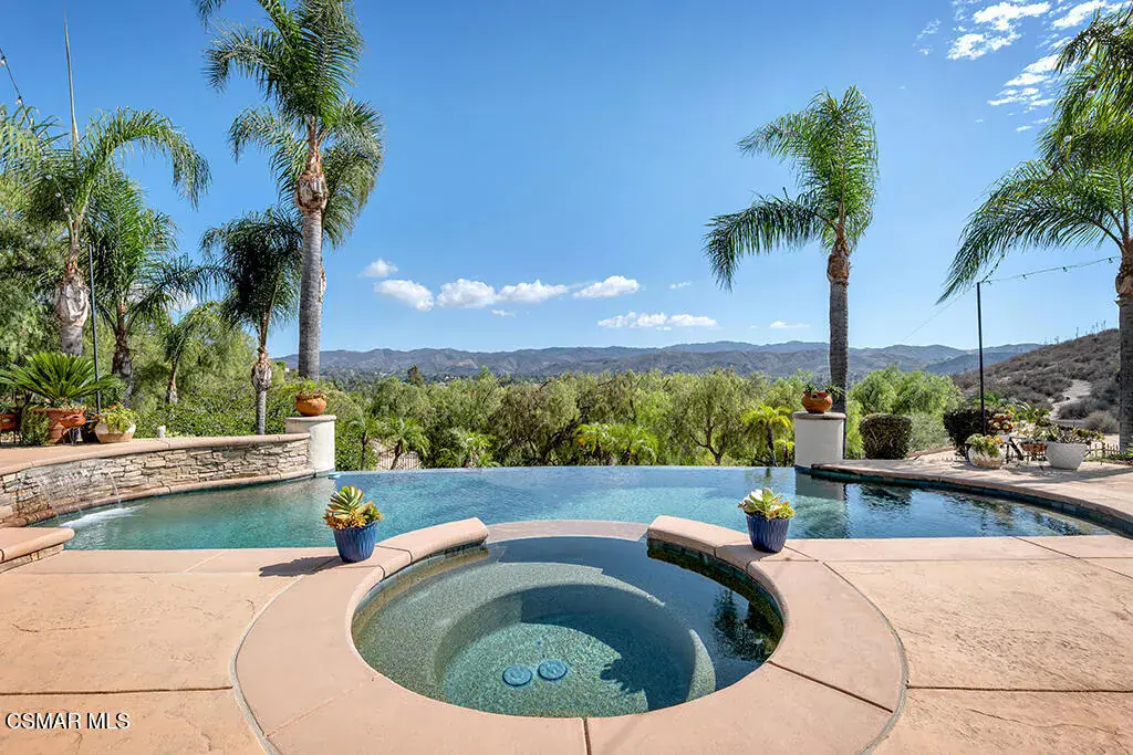 Introducing a Modern Mediterranean estate that redefines luxury living — a serene, gated oasis offering complete privacy, peace, and sophistication. Perfectly positioned in one of the area’s most desirable enclaves, this exceptional property is surrounded by rolling hills, scenic trails, and breathtaking natural beauty. It blends timeless Mediterranean architecture with the best of modern California design.A long private driveway leads through manicured grounds to a residence designed for seamless indoor-outdoor living. Expansive spaces open to covered patios and balconies, creating a natural flow between elegant interiors and the resort-style exterior.At the heart of the outdoor experience is a spectacular infinity pool overlooking panoramic mountain and treetop views. The pool area is complimented by a fully equipped outdoor bar/kitchen with bar seating, refrigerator, bathroom, and generous lounge space — ideal for entertaining or relaxing under the sunset sky.Spanning nearly 6,300 square feet, this five-bedroom, seven-bath estate also features 1,100 square feet of balcony space and a 900-square-foot finished garage. Italian porcelain flooring anchors the main level, enhanced by soaring ceilings, architectural detailing, and fine designer finishes throughout.The chef’s kitchen is a dream come true — featuring a six-burner range with grill, warming drawer, dual sinks, sleek cabinetry, and a large island for gathering. Smart home technology, surround sound, Cat-5 wiring, and a full security camera system provide modern comfort and peace of mind.Completely remodeled in 2020, the home showcases a harmonious blend of sophistication, efficiency, and style. All-new insulation, energy-efficient windows and appliances, and a new HVAC system ensure year-round comfort. The roof was serviced in 2025, and the freshly painted exterior mirrors the home’s pristine interior. Designer lighting inspired by Art Nouveau adds subtle elegance, while custom closets offer organization with flair.The downstairs primary suite is a peaceful retreat with a fireplace and direct access to the backyard for a true indoor-outdoor escape. Upstairs, a junior primary suite with loft and balcony provides flexible living for family or guests. Entertainment lovers will appreciate the soundproof home theater, offering a cinematic experience in total comfort.A beautifully appointed guest house adds to the property’s versatility, featuring a spacious living room, full kitchen, large bedroom, and bath — perfect for extended stays, in-laws, or private retreats.Additional highlights include a tankless water heater, custom iron staircase, lush landscaping, and extensive energy-efficient upgrades. Whether hosting a grand event or enjoying a quiet evening surrounded by nature, this estate embodies effortless luxury and modern California living.Located near the prestigious Wood Ranch Golf Club and three nearby parks with tennis, basketball, and volleyball courts, playgrounds, sports fields, and community events, this home offers both recreation and relaxation. Residents also enjoy proximity to the iconic Ronald Reagan Presidential Library, known for air shows and local gatherings.Set in one of the nation’s safest cities and free from HOA restrictions, this modern Mediterranean masterpiece offers a rare combination of privacy, innovation, and timeless elegance — a true resort-style sanctuary that captures the very best of California living.