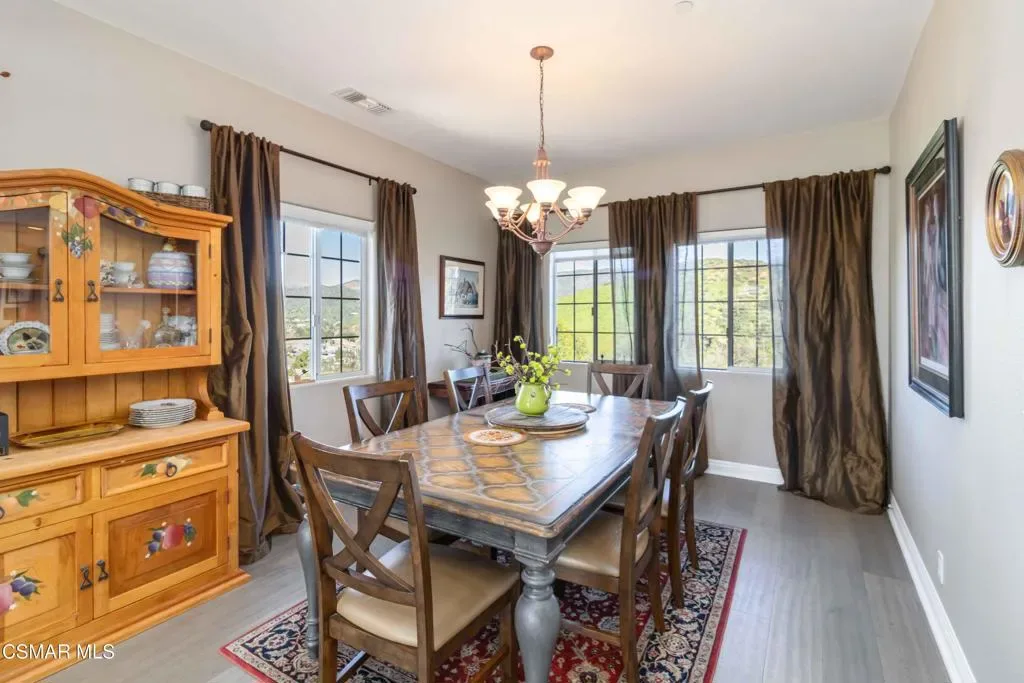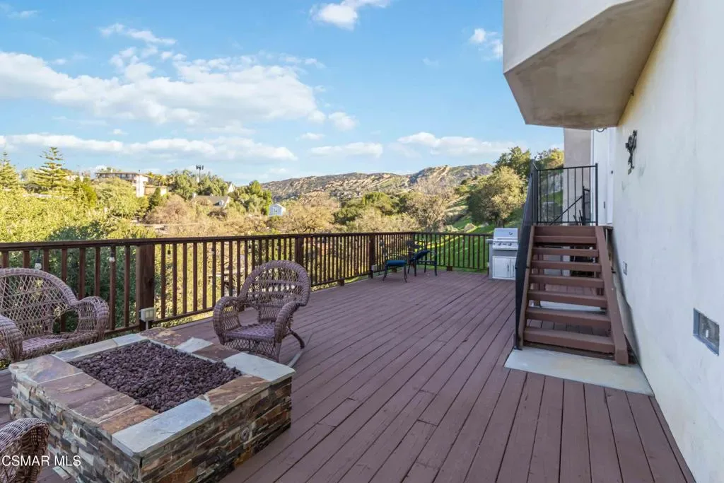 Discover this stunning hillside VIEW home in the Santa Susanna Knolls. Boasting over 3000 sqft, this property features four bedrooms, including a main-level bedroom perfect for guest or an office and 3 full baths all on a 10,000 sqft lot. The expansive kitchen is a chef’s dream, with granite counters, stainless steel appliances, travertine tile floors and a cozy breakfast nook offering breathtaking views. The spacious family room , complete with fireplace and hardwood floors, opens up to panoramic city and mountain views. The inviting living room also features a fireplace, hardwood floors and more gorgeous vistas. The master suite is a true retreat, featuring a sitting area, luxurious master bath, and a large walk-in closet, all with those incredible views. Additional features include dual pane windows throughout, dual central air and heat system, three car garage, possible RV access, private deck overlooking the peaceful mountains. Designed with comfort and style for this area, this custom home was built with all concrete siding and an internal sprinkler system. Don’t miss out on this exceptional property with BREATHTAKING VIEWS!