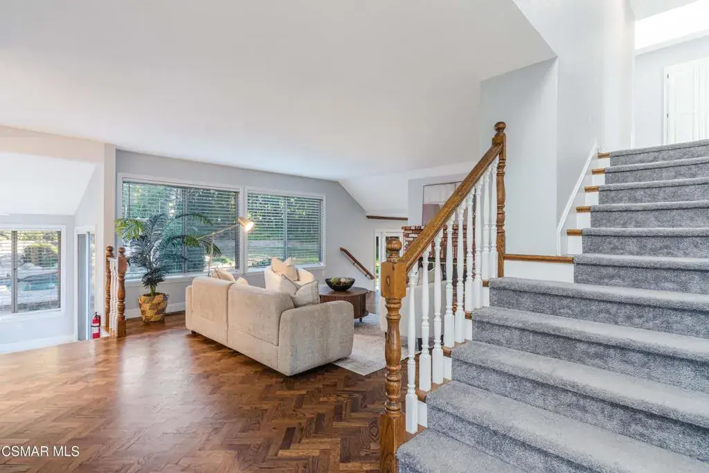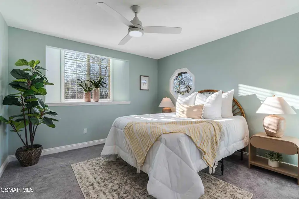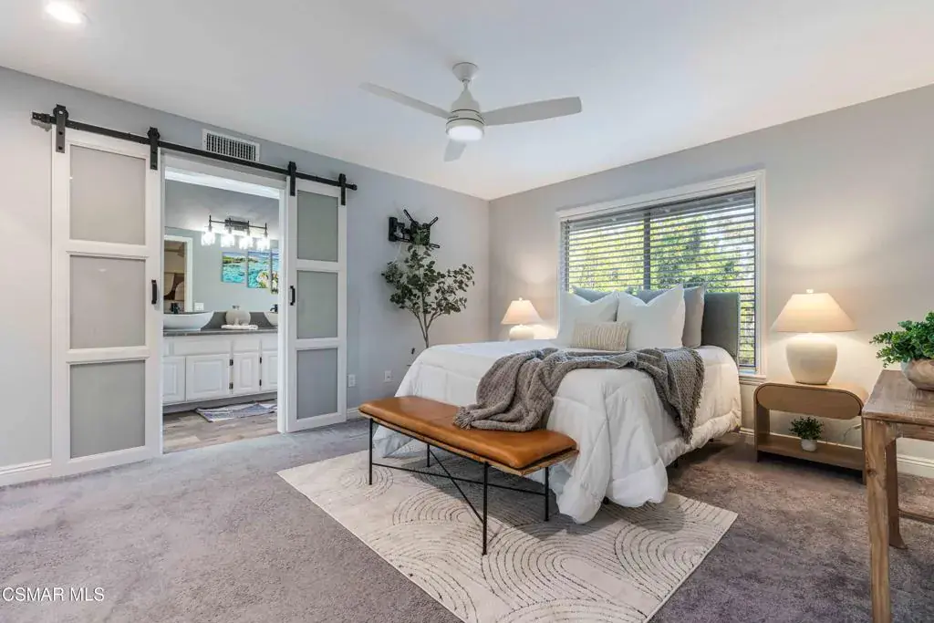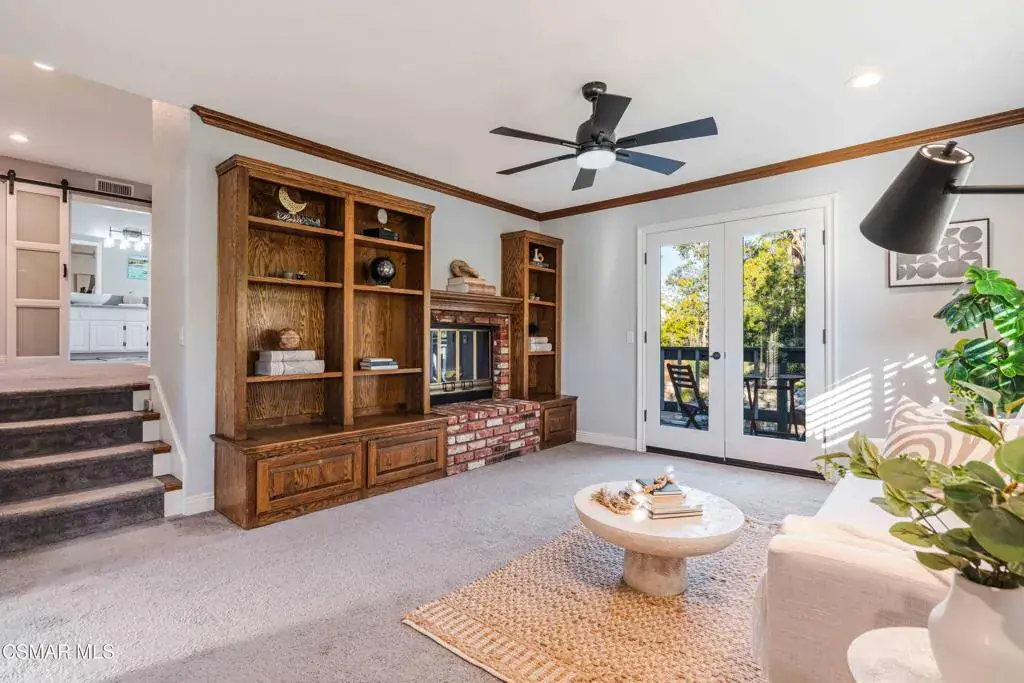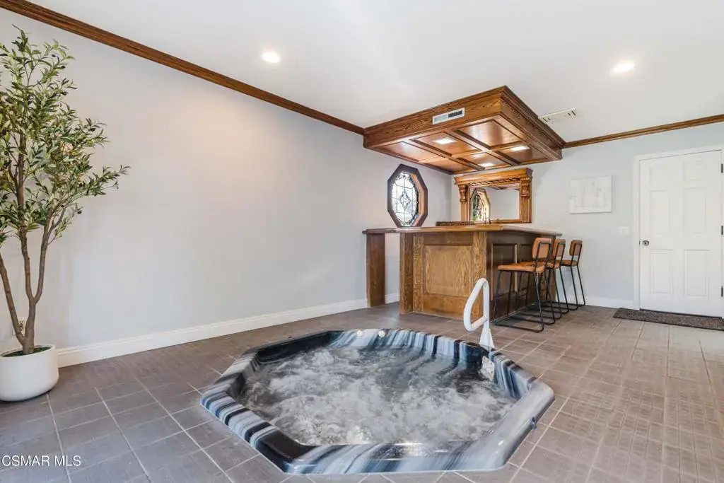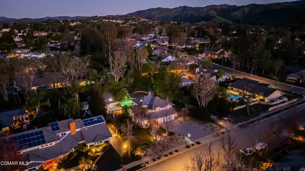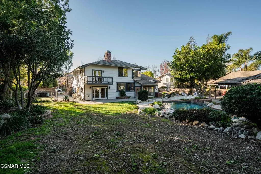 Beautiful CUSTOM ESTATE located on a flat half acre lot, with a HUGE APPROX 800 SQFT DETACHED GUEST HOUSE, pool/spa, cascading waterfall feature, and RV ACCESS! All located in the most sought-after horse-zoned neighborhood in West Simi Valley! You truly cannot miss your chance to own one of the most recognizable homes in the area! This home has been recently installed with a NEW TILE ROOF, PAID SOLAR system, and ALL MAJOR SYSTEMS NEW WITHIN THE LAST 4 years! Enter the home to find a cozy living room with fireplace, vaulted beamed ceilings, and lovely views of the backyard oasis! Step into the family room where chevron print oak hardwood floors fill the space, with a fireplace to enjoy entertaining friends and family. The country kitchen is open to the family room and is light and bright with white cabinetry and stainless steel appliances. There is a bonus room with indoor jacuzzi, powder bath, and a wet bar perfect for gatherings! Upstairs you will find two guest rooms that share an oversized bathroom with dual vanities and lovely views of the surrounding mountains. The primary retreat is something you cannot miss! It features a separate sitting area on its own level and a balcony to enjoy the sun rise. The primary suite is situated perfectly on its own ‘wing’ of the home. The primary bath has been completely remodeled with a Zen like feel with barn doors, luxury vinyl flooring, soaking tub, marble counters, and dual vanities, along with a beautiful walk-in tile shower. The lush and private backyard offers a sparkling pool/spa and cascading water feature. Something you truly can’t miss! The DETACHED GUEST HOUSE is it’s OWN PRIVATE RETREAT WITH KITCHEN, LARGE FULL BATHROOM, VAULTED WOOD BEAM CEILINGS, WALK-IN CLOSET, and is located to the rear of the yard. Other features include: 3 car garage, 2 laundry rooms (one up, one down), indoor jacuzzi and bar, RV access, and more!! Close to Coyote Hills Park, horse trails, and much more!