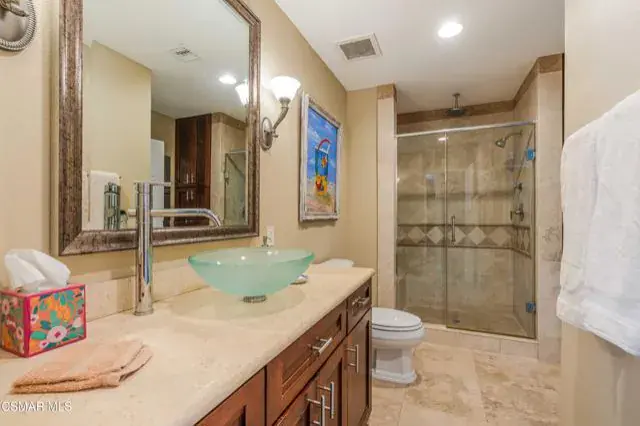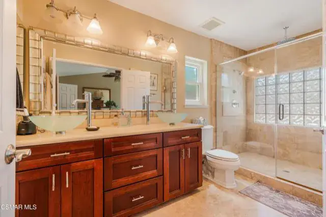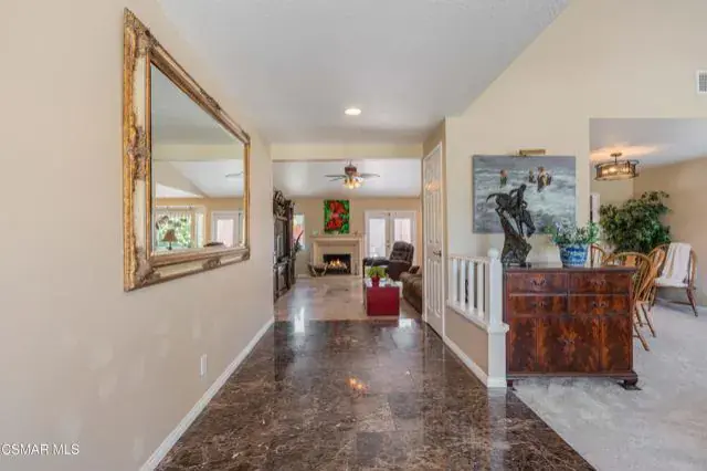 Welcome home to this lovely single story gem. This home has been well maintained and upgraded. The beautifully etched French door entrance leads to a marble foyer and an open floor plan with vaulted ceilings. The chefs kitchen has granite countertops with island, travertine floors and stainless steel appliances. The home features two grand bedrooms with upgraded en suite bathrooms. Make this house your home.