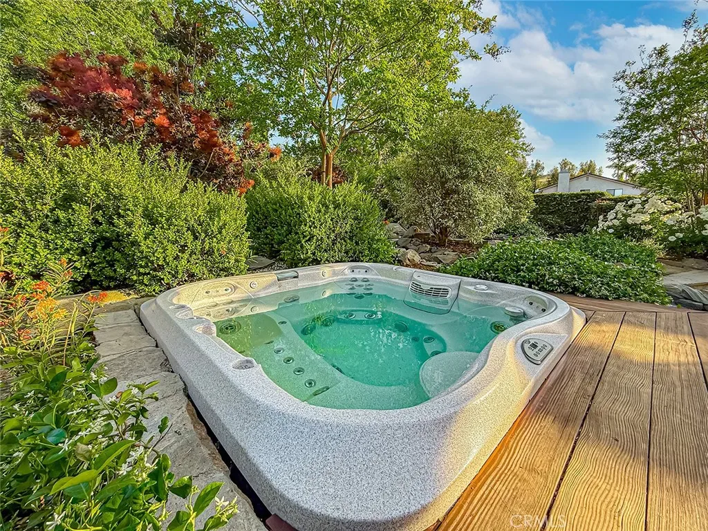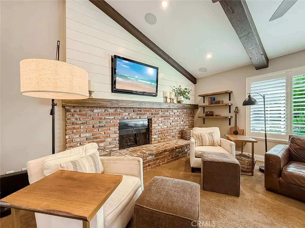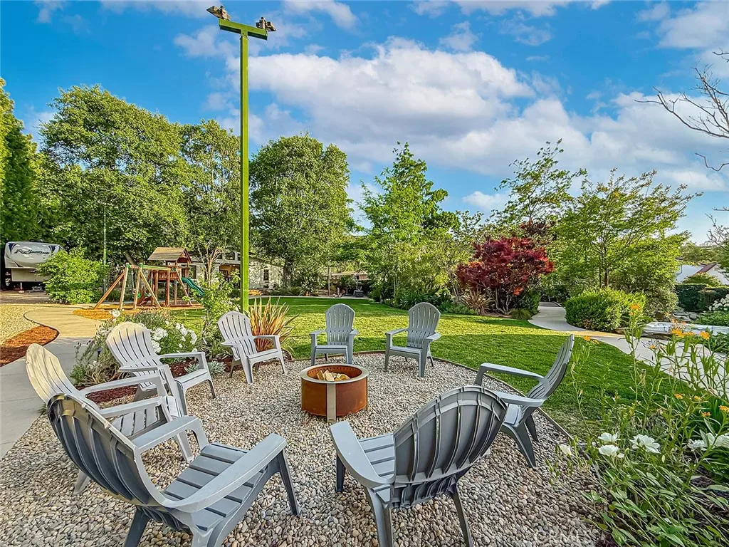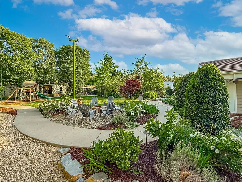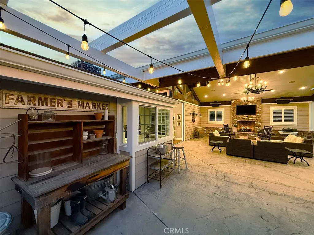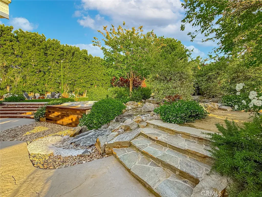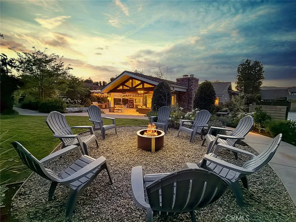 From the moment you arrive, the front yard makes a lasting impression with dry river rock, blooming roses, and mature trees. Inside, vaulted ceilings, natural light, and a striking red brick fireplace define the main living space. Expansive folding glass doors open fully, creating a seamless indoor outdoor connection. The kitchen offers stunning upgrades, a butcher block island, and a farmhouse sink beneath a window overlooking the yard. Adjacent library with built-in cabinetry and side yard access. Solid core doors, recessed LED lighting, and numerous upgrades run throughout. Both bathrooms have been fully renovated, most recently in 2025. The backyard is designed for year-round enjoyment with an incredible sense of space, lush green grass, and room to truly spread out. A spectacular covered patio of approximately 780 sq ft features a hardwood tongue and groove ceiling, chandeliers, recessed LED lighting, an industrial fan, and four gas heaters, along with an outdoor fireplace and TV, with the vaulted ceiling continuing from inside to out. Additional outdoor features include a lattice patio cover off the kitchen, built in BBQs, above ground jacuzzi spa, pondless water feature, DG and concrete pathways, master bedroom courtyard, and extensive landscape lighting.