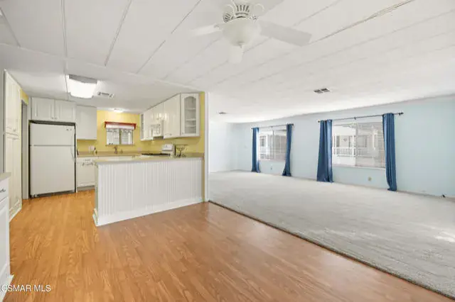 Don’t miss the opportunity to own this immaculate two bedroom two bath home with indoor laundry! This home is a very spacious feeling and beautifully updated/remodeled 2 bedroom 2 bath manufactured home in the highly desirable Friendly Village community.Step inside to an open concept floorplan featuring a bright living room, dining area with built-in cabinetry , and a remodeled kitchen – perfect for entertaining. Enjoy the convenience of an indoor laundry room and an enclosed patio off the dining area. Outside, the spacious lot has garden beds, a large covered carport and a storage shed. Friendly Village is a beautiful park offering resort style amenities including a club house, dog park, pool area, potential RV parking for residents. This home will not disappoint.