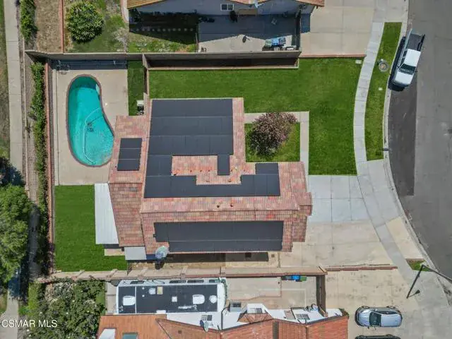 Welcome home to this upgraded East Simi Valley home with Pool, Views and large RV parking.This spacious and well-maintained 4-bedroom, 3-bathroom home offers 2,037 sq. ft. of living space on a 7,405 sq. ft. lot in a quiet, highly desirable East Simi Valley neighborhood. A downstairs bedroom and bath bathroom provide ideal flexibility for guests, extended family, or a home office.The remodeled kitchen features granite countertops, a double oven, and quality cabinetry. High ceilings and ceiling fans in most rooms enhance comfort, while upgraded electrical, dual-pane windows, solar, and a new roof offer peace of mind and energy efficiency.All bathrooms have been tastefully upgraded, and the home includes custom closet built-ins for smart, efficient storage. The backyard is built for entertaining, with a sparkling pool, porch misters, grapevines, herb gardens, and a spacious covered patio. Storage is outstanding–with a large shed, ample closet space, and RV parking complete with power hookup, sewer cleanout, and a new sewer line. The seller previously parked a 34′ fifth wheel travel trailer with a 12.5′ side-by-side behind it.Enjoy convenient access to local hiking trails, stunning views of the Santa Susana Mountains, top-rated schools, and quick freeway connections. This home is move-in ready and checks every box–location, upgrades, space, and flexibility. Some photos have been virtually staged.