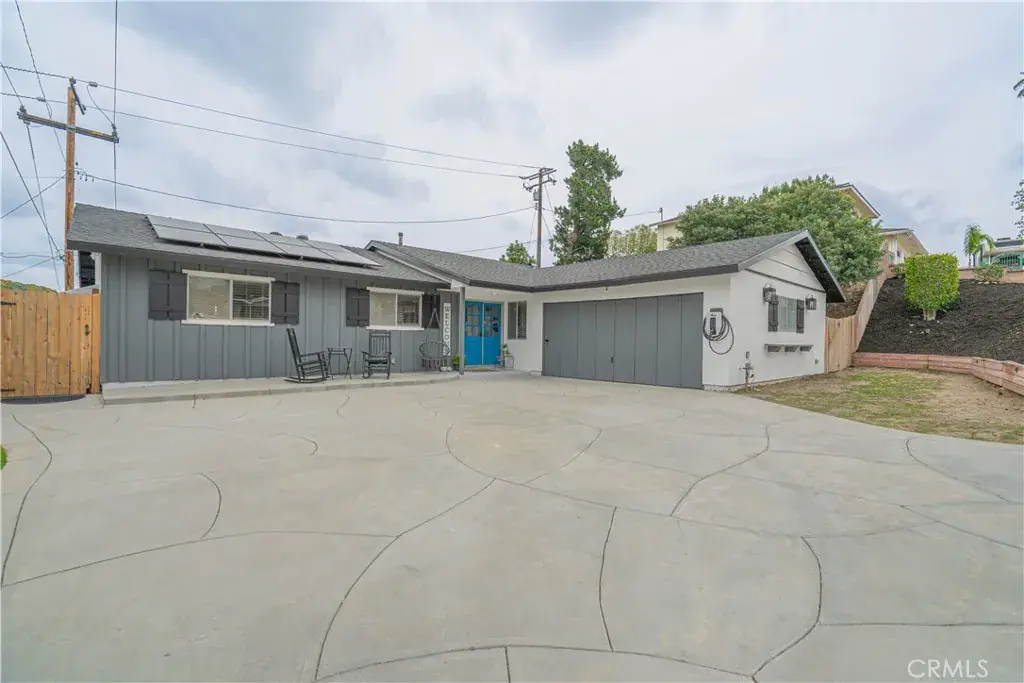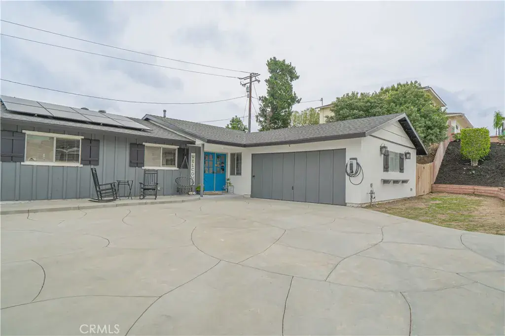 Inside offers 3 bedrooms, 2 full bathrooms, a separate office, and a dedicated laundry room. The oversized driveway fits four vehicles with potential RV parking. Major upgrades include a 200-amp panel, tankless water heater, energy-efficient HVAC (2018), new ducting, roof shingles and paper, and blown-in insulation. The home includes a 36-panel solar system (12 owned), two Tesla Powerwalls, 100-amp EV charger, permanent exterior lighting, hardwired Ring cameras, and smart features including Nest and Govee. Exterior updates include freshly painted eaves, trim, and façade.