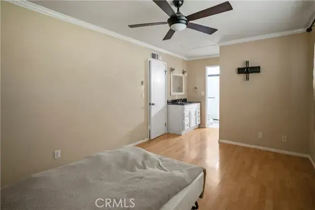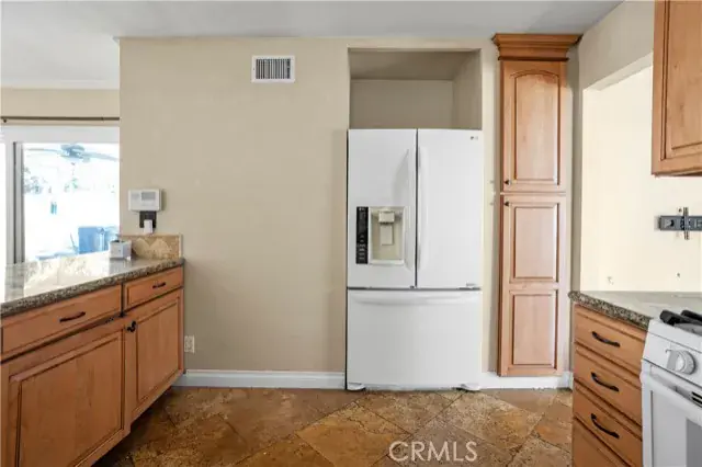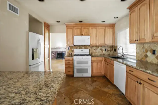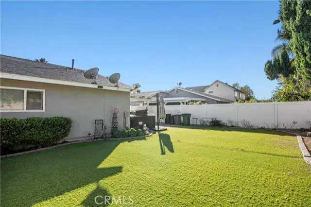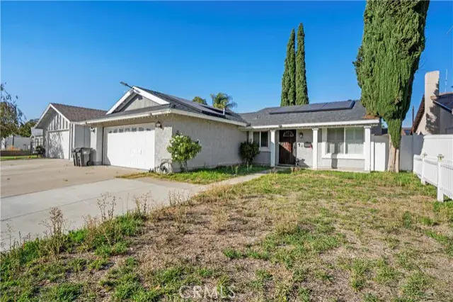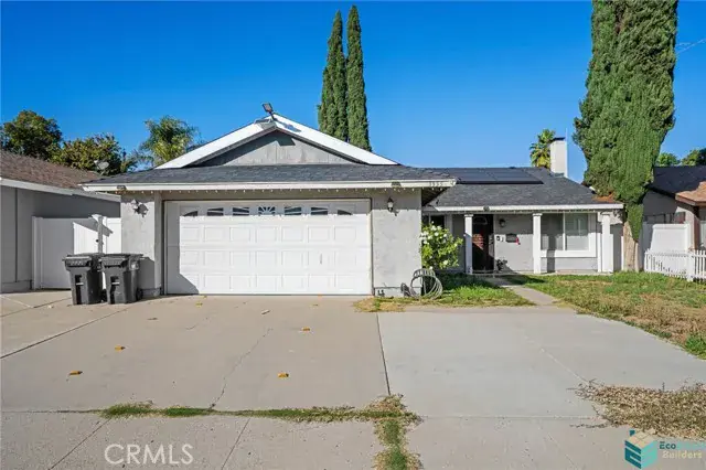 Welcome to this delightful 3-bedroom, 2-bath home offering 1,310 sq. ft. of comfortable living space on a nearly 6,000 sq. ft. lot. Thoughtfully upgraded in 2016, this charming home just needs a fresh coat of paint and a little tender loving care outside to make it truly shine. The spacious living room features vaulted ceilings and a cozy fireplace, creating an inviting atmosphere for friends and family. The kitchen offers granite countertops, stylish cabinetry, and quality appliances. The primary ensuite includes a large walk-in closet, while the home’s travertine and Pergo flooring, crown molding, and upgraded baseboards add an elegant touch throughout. Additional highlights include a spacious garage with pull-down attic access for added storage. The backyard is designed for relaxation and easy maintenance, featuring artificial turf, vinyl fencing, a spa, and a covered patio with a ceiling fan perfect for enjoying the outdoors. Two large storage sheds provide plenty of extra space, one ideal for tools and the other perfect as a small workshop or playroom.