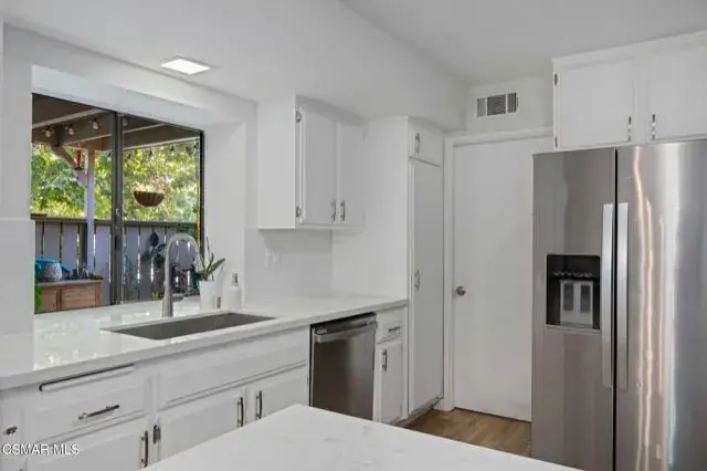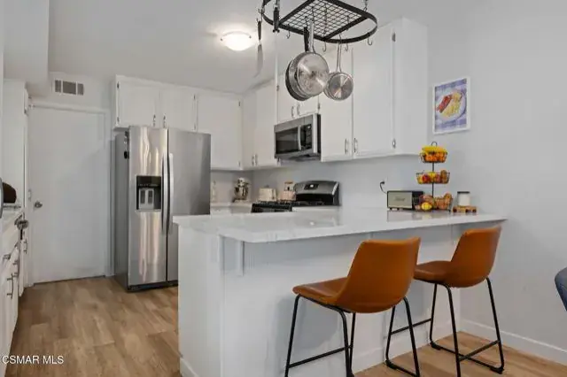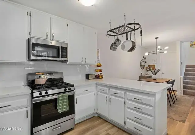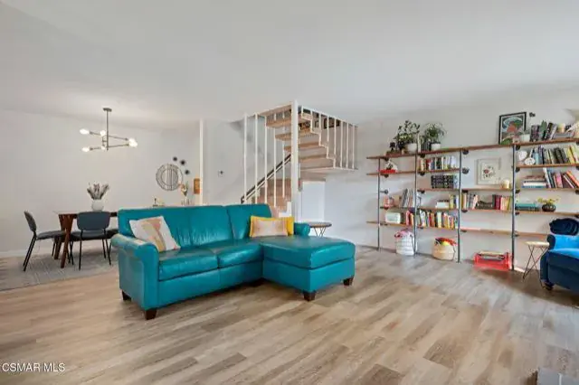 Welcome to this beautifully remodeled townhome in the sought-after Park Lane community of Simi Valley. Perfectly located near neighborhood parks, boutique shops, dining, and entertainment, this residence combines modern upgrades with everyday convenience.The bright and open floorplan features three bedrooms and one and a half bathrooms across two levels. The spacious living room, enhanced with newer wood laminate flooring and a cozy fireplace, flows seamlessly into the upgraded chef’s kitchen – complete with stainless steel appliances, quartz countertops, decorative tile backsplash, and a generous breakfast bar. The powder room is located right off the dining room conveniently for all guests.Upstairs, the primary suite offers a private balcony with scenic views and an elegantly updated bath. Two additional bedrooms provide comfort and flexibility, each complemented by plush carpeting. The upstairs full bathroom has been fully remodeled with stylish designer finishes.Additional highlights include fresh interior paint, smooth ceilings, updated lighting and hardware, central A/C, and a dedicated laundry room. A large private covered patio provides the perfect setting for relaxing or entertaining outdoors.Residents of Park Lane enjoy access to community amenities including a sparkling pool, grassy pathways, and play areas. With its prime location and turnkey upgrades, this home presents a remarkable opportunity in Simi Valley.