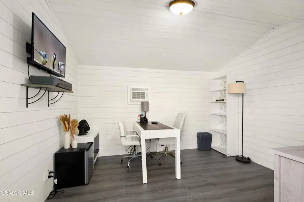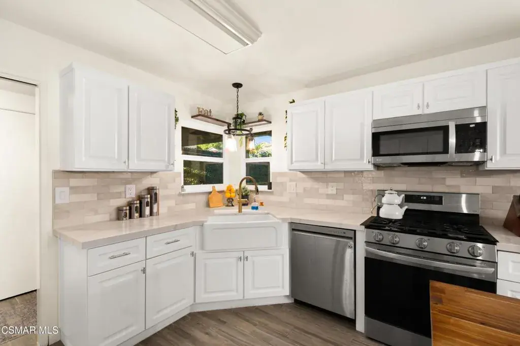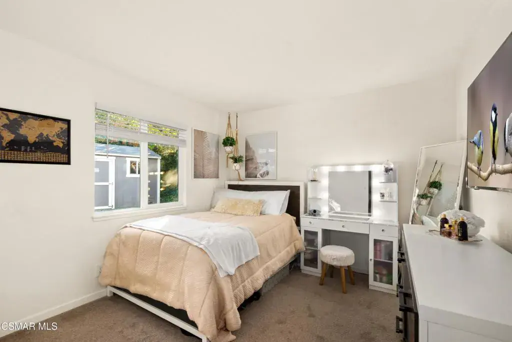 Welcome to this Newly Renovated 3-Bedroom 2 Bathroom, Single Story Residence located in the desirable Madera Heights neighborhood of West Simi Valley. The expansive 1/4-acre lot backs directly to open space and the popular Mt. McCoy hiking trail with convenient backyard access–perfect for outdoor enthusiasts.Spanning 1,475 sq ft of living space plus a versatile 12′ x 10′ converted shed/office with electricity and air conditioning, this home offers modern comfort and functionality.The home features a completely renovated kitchen and bathrooms boasting marble tile, quartz counters, new vanities, stainless steel appliances, contemporary cabinets, and sleek fixtures. Enjoy new tile flooring throughout main areas, fresh carpet in bedrooms, all-new dual-pane windows and slider, and fresh interior/exterior paint for a move-in ready feel. Other Recent Upgrades include a 3-year-old roof, new backyard fencing, fully insulated exterior walls, and epoxy-coated garage flooring.Step outside to a private retreat featuring a covered patio with fan and electrical hookups for TV, a relaxing spa, new built-in BBQ, additional 6′ x 4′ storage/tool shed, and a convenient brick staircase. This turnkey home combines modern renovations with prime location. Don’t miss this exceptional opportunity!