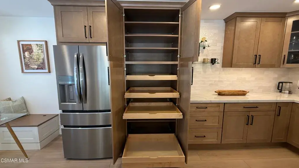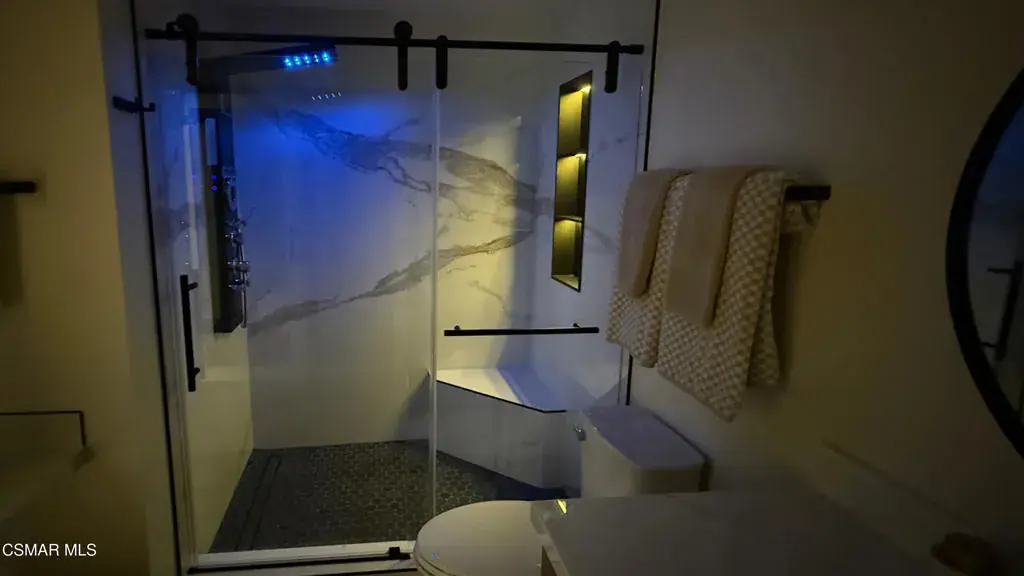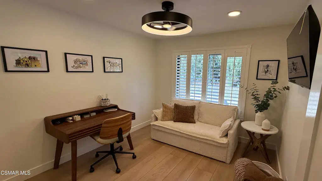 Welcome to this fully furnished Executive Rental. This 2-bedroom, 2-bathroom condo, spanning approximately 1050 Sq.Ft., nestled in the heart of Simi Valley. It’s ready for its first-time tenant and comes equipped with everything you need for luxurious living–all brand new!The condo boasts high-end, wide-plank luxury vinyl flooring throughout, complemented by large area rugs. Extra-large plantation shutters flood the space with natural light. The main living area features a custom-built entertainment center with a 70” smart TV. An electric fireplace adds warmth and ambiance. Each ceiling light throughout the condo offers a ”halo mode” for an instant, romantic, nighttime setting. A sound bar and subwoofer enhance the entertainment experience. A reclining couch and a cozy sitting area provide comfort in this incredible open-concept space.The primary bedroom is spacious and features a queen-size bed and a 65” wall-mounted smart TV. End tables with built-in power outlets and USB ports make charging your smart devices a breeze. The bedroom also boasts a large en-suite bathroom with a stunning shower, a sit-down makeup area, and a sliding barn door with a full-length wardrobe mirror that opens to a spacious walk-in closet. The closet is equipped with built-in lighted shelves, glass doors, and wicker baskets for that added touch!The second bedroom is designed as an office, providing a separate space for work or virtual meetings. It also includes a 40” wall-mounted smart TV and a queen-size pull-out couch for overnight guests. Double sliding closet mirror doors open to a well-organized closet system with drawers and shelves.Both bathrooms are elegantly appointed with imported Italian slate tile flooring, beautiful porcelain shower walls, and modern shower towers with rainfall and body jet modes. LED shower niches add a touch of mood and are adjustable to any color. In-ceiling Bluetooth speakers provide music while getting ready. The kitchen is equipped with brand-new appliances, including a refrigerator, dishwasher, oven, and microwave. It also features table settings for eight people, wine glasses, coffee mugs, glasses, utensils, pots, pans, mixers, and a spacious pull-out pantry. All cabinets and drawers are equipped with a soft-close feature, and the large farmhouse sink includes a garbage disposal.The condo also boasts its own ”in-unit” smart washer and dryer. Each room is equipped with CAT 6 Ethernet hook-ups, providing high-speed internet and high-speed Wi-Fi throughout the entire living area. Additionally, there’s a two-car garage with ample storage shelves. Every detail in this condo has been meticulously thought out, ensuring a luxurious living experience. So, come and enjoy some exceptional living in this truly one-of-a-kind condo.