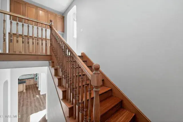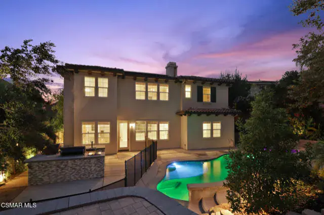 Welcome to this gorgeous home in highly sought after Big Sky Community. This home has a spacious and well-appointed floor plan. The Foyer lends to a seamless flow into the updated family room with a fireplace. There is an open kitchen with granite counter tops, a large center island, with sink and dishwasher. Kitchen is ideally located adjacent to the family room. Also, a Butler’s pantry connecting to the formal dining area. Plenty of large windows allowing natural light and a view of the backyard. The home features a private courtyard with a fireplace. The main floor has one bedroom with a walk-in closet and ensuite bathroom. Second level is beautifully designed with a large primary bedroom with a fireplace, walk-in closet. Luxurious primary bathroom, featuring his & her vanity, stand-alone tub, spacious shower and sit in coiffeuse area. Large upstairs laundry room. Two of the bedrooms are Jack and Jill style, sharing one bathroom. The remaining bedroom also has an ensuite bathroom. Home has a beautiful entertainer’s backyard! Nicely designed spa and pool, with water features and safety fencing which can be removed. Also Built in BBQ bar, features a pizza oven, kegerator, refrigerator, outdoor sink, with space for lots of seating. There is a dog run, and several fruit producing trees. Professionally landscaped with a firepit and an additional large patio deck area. Home also features solar with two Tesla power walls and a tankless water heater. Big Sky community offers a wealth of outdoor amenities, including walking and hiking trails, a dog park and breath-taking mountain views. Conveniently located near shopping, dining, and the 118 freeway. Don’t miss this rare opportunity to own in one of Simi Valley’s most desirable neighborhoods.
