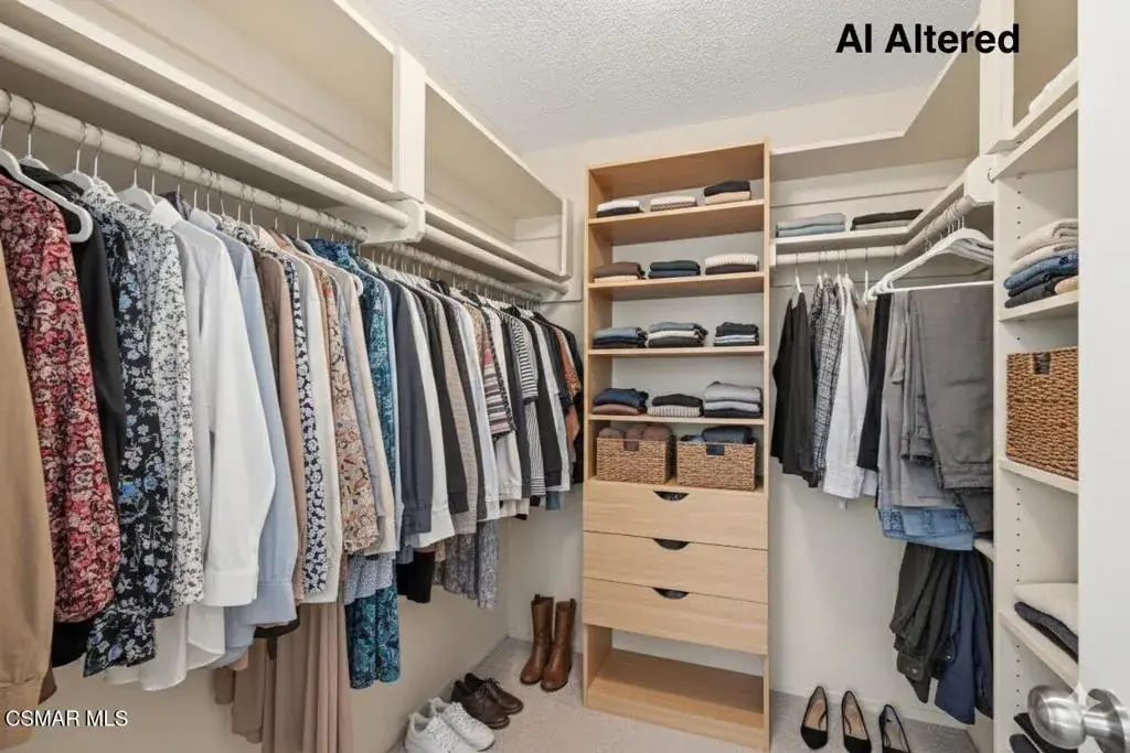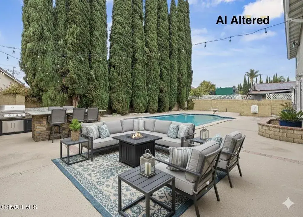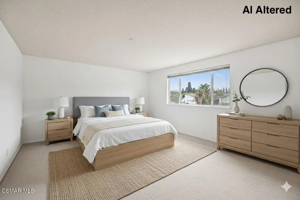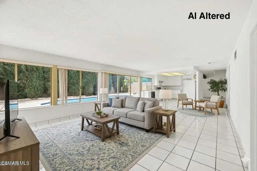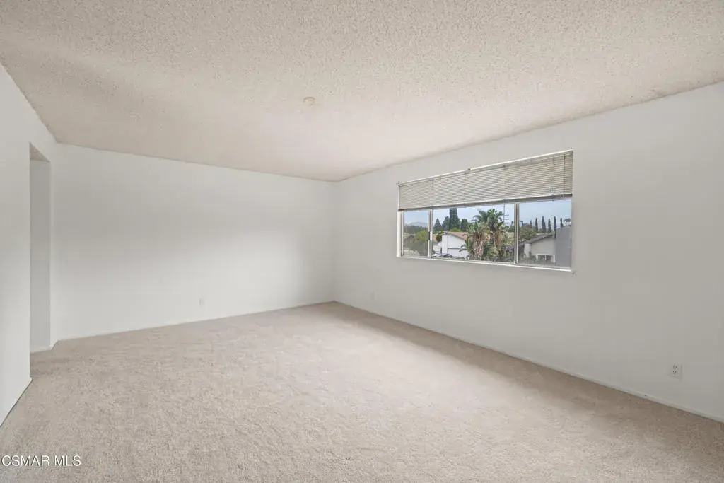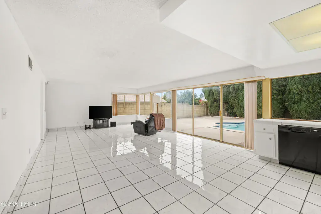 Welcome to 2385 Justin Ave, located in the prestigious Mountain Valley Racquet Club Tract. This builder Larwin’s expansive 2-story, 5-bedroom, 3-bathroom mid-century modern Bel Aire model floor plan spanning 2,696 sq. ft., seamlessly blending timeless elegance with modern comforts.Enter through double doors into a dramatic step-down living room with 18-foot ceilings, a large picture window, and a striking whitewashed wood-burning gas fireplace. The adjacent formal dining room, highlighted by an exposed wood beam, flows into an open kitchen and family room. The kitchen features a pass-through patio window, perfect for summer pool parties.The spacious family room, with signature garden window walls, is light-filled and inviting. Sliding glass doors lead to a newly renovated pool, ideal for relaxation or gatherings.Downstairs, a versatile bedroom doubles as an office, guest room, or maid’s quarters, complete with a 3/4 bathroom featuring a walk-in shower. An interior laundry room connects to the 2-car garage with direct access. Upstairs, the large primary suite offers a vanity, walk-in closet, and abundant natural light. Three additional bedrooms, one with a walk-in closet, and a second bathroom with a tub-shower combo provide ample space.The Mountain Valley Swim & Racquet Club community enjoys a low HOA fee providing exclusive access to community pools, tennis courts, basketball and volleyball courts, a playground, picnic area, and a reservable clubhouse with a full indoor kitchen. Located near top-rated schools, parks, and shopping, 2385 Justin is a rare gem in the heart of Simi Valley. Don’t miss this opportunity to own in a coveted neighborhood.