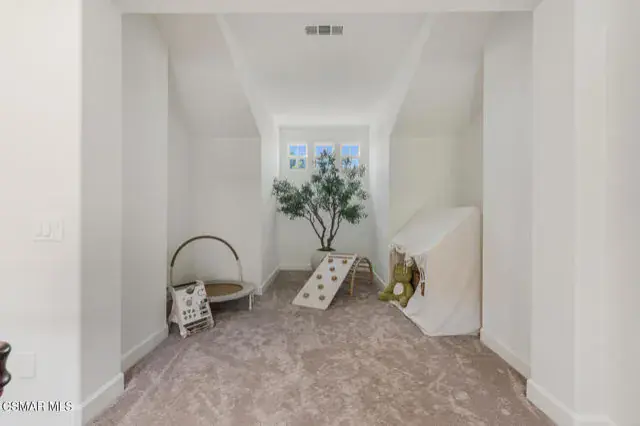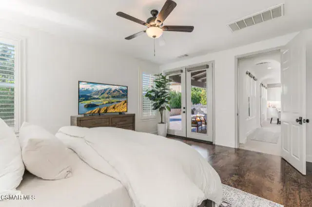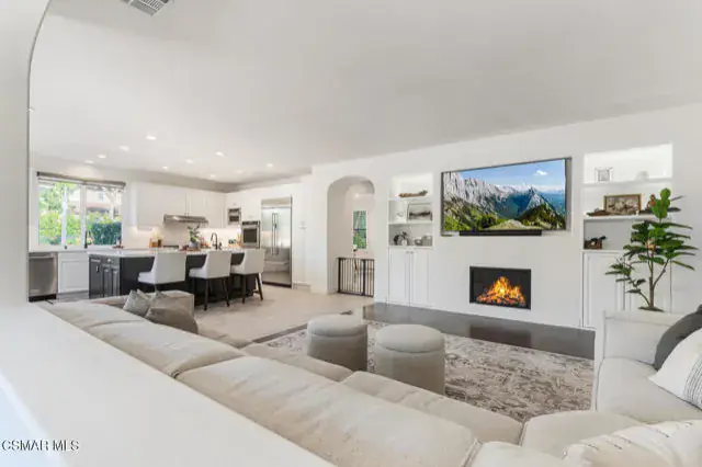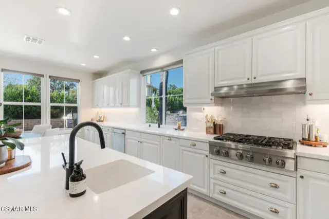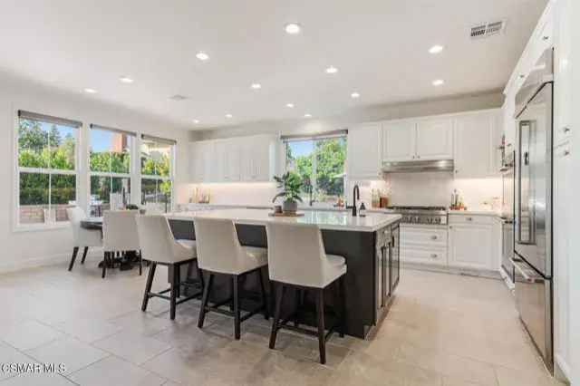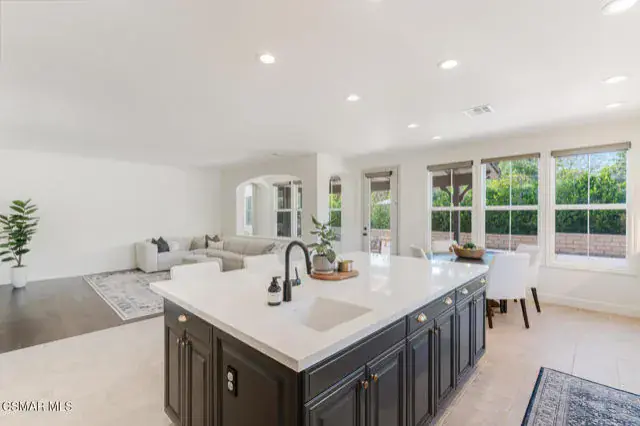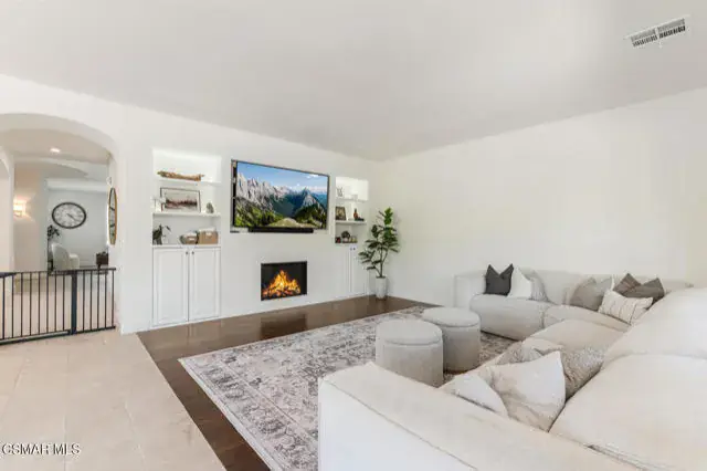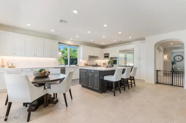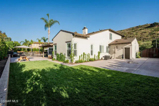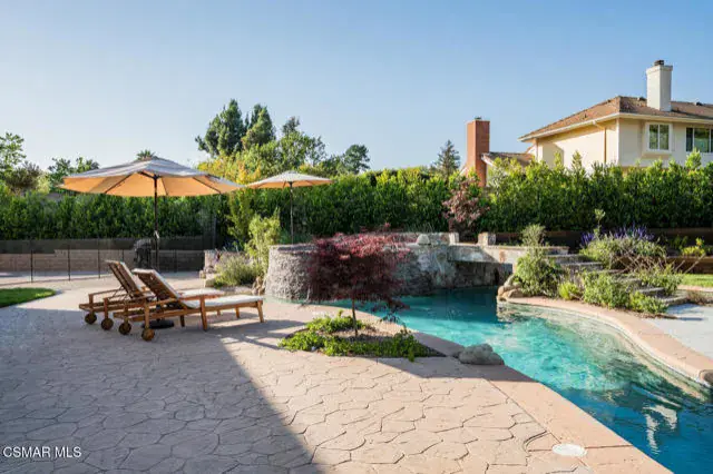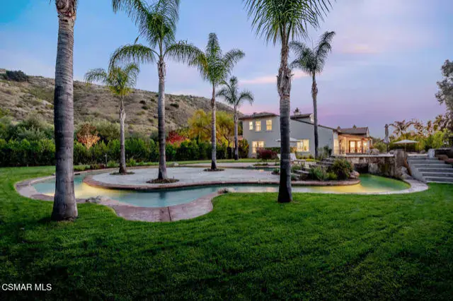 Welcome to this beautifully designed 4-bedroom, 3.5-bath estate located in the prestigious North Gate neighborhood–SET ON ONE OF THE MOST DESIRABLE AND MOST PICTURESQUE STREETS IN SIMI VALEY, ON OVER 1/2 ACRE WITH A ONE-OF-A-KIND LAZY RIVER! Once you arrive, you will notice stunning curb appeal with fresh exterior paint and all new landscaping. COMPLETELY REMODELED with high-end finishes, the home showcases imported porcelain stone tile flooring, giving it a refined, timeless appeal. The spacious PRIMARY SUITE is thoughtfully situated on the MAIN LEVEL, featuring French doors that open to a private patio and an entertainer’s dream backyard. The suite includes an addition into the garage that can serve as an oversized walk-in closet, home gym, yoga studio, or private office. The luxurious primary bath offers dual granite vanities, a deep soaking tub, a walk-in tile shower, and walk-in closet. The gourmet kitchen is a chef’s dream–boasting quartz countertops, newly painted cabinetry with stylish hardware, a custom tile backsplash, and top-of-the-line KitchenAid stainless steel appliance package. The oversized center island is ideal for casual dining and entertaining alike. The family room features a stunning, reimagined fireplace that blends classic charm with modern elegance. Additional designer touches include crown moldings, upgraded electrical, plumbing, custom window coverings, 5” baseboards, upgraded lighting, fresh interior paint, new interior door hardware and custom treatments throughout. Elegant but comfortable dining room that is open to the formal living area with fireplace. Down the hall is a remodeled powder bath and large laundry room with sink, Quartz counters and storage. On your way upstairs, a sweeping spiral staircase with new wood and wrought iron banisters leads you to three bedrooms, a bright open loft, perfect for kids, homework space, or library. The front guest bedroom includes its’ own private balcony OVERLOOKING OPEN SPACE AND SCENIC VIEWS. This bedroom shares a ”Jack and Jill” bathroom with the other adjoining guest room. There is a unique guest room with a circular sitting area and an en-suite bath. Step outside to your private backyard oasis–complete with a ONE- OF-A-KIND LAZY RIVER-STYLE POOL, elevated spa, lush grassy areas, and newly installed landscaping, irrigation and lighting, with stamped concrete patio. New beautifully thought out RV access with brand new double gates that can be electric and a spacious oversized three-car garage complete this exceptional property. Just across the way, there are miles of hiking and biking trails on the Coyote Hills Canyon View Trail Head, take the family for picnics and sunset walks at Coyote Hills Park and watch the horses go by. This is the perfect home waiting for its’ new proud owners to enjoy the perfect blend of luxury, comfort, and outdoor living.