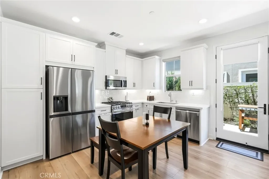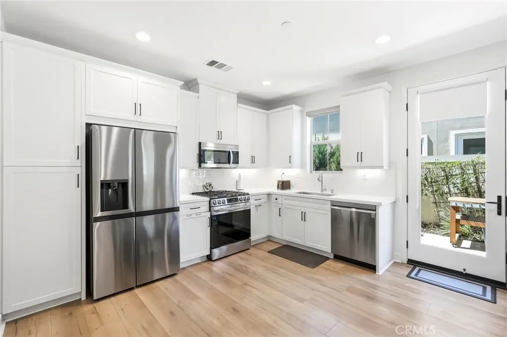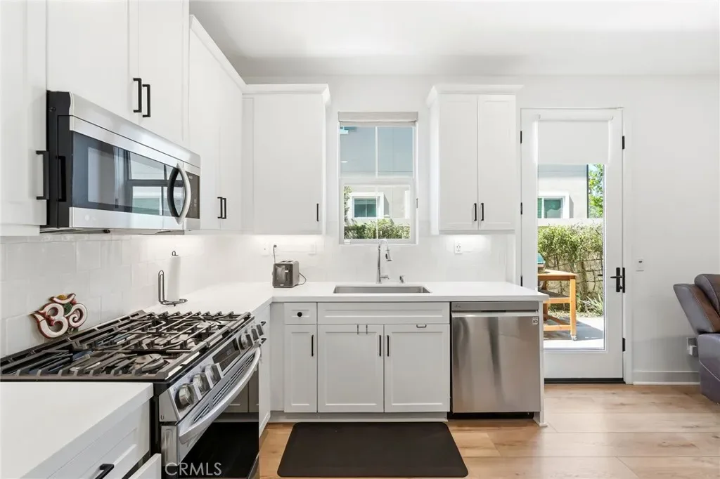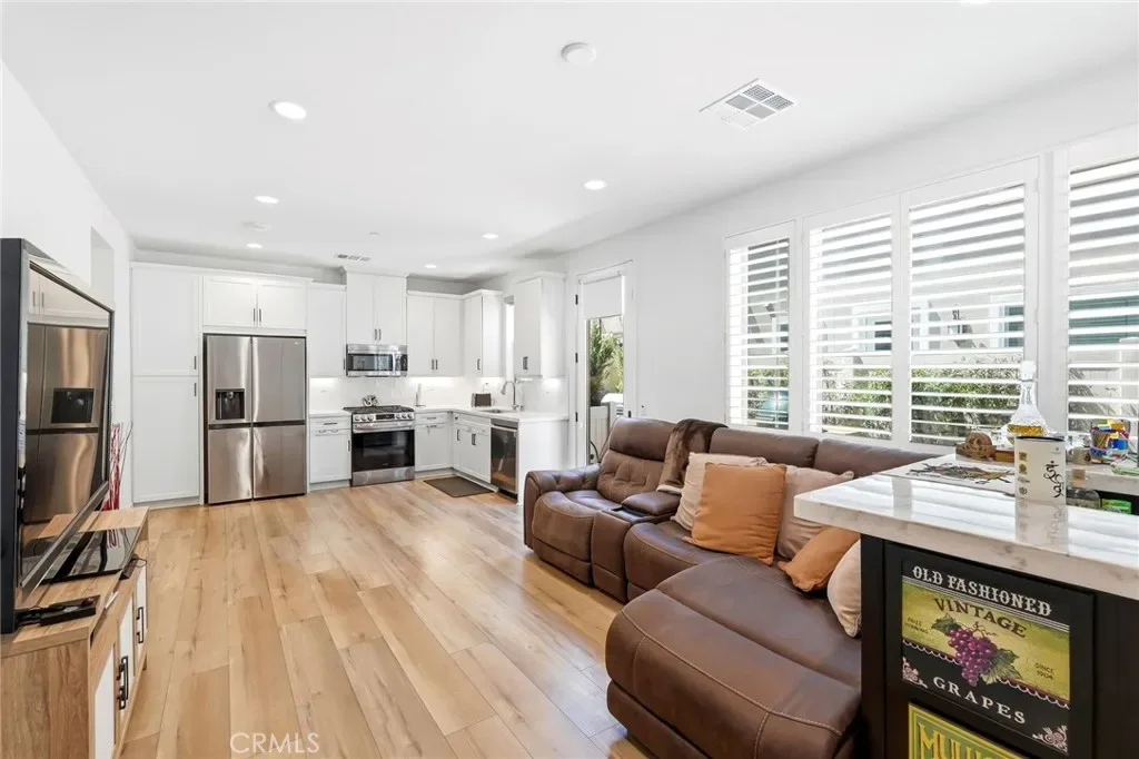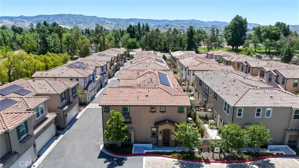 Built in 2023 with PAID OFF solar panels, this luxurious and move-in ready townhome offers 1,315 sq ft of modern living with an attached 2-car direct access garage. This 3 bedroom, 3 bathroom home includes wide vinyl flooring that complements a bright white kitchen with a custom builder upgraded backsplash. The space is finished with white quartz countertops, white cabinetry, pantry section, and stainless steel appliances for a clean, upscale look. Downstairs includes a convenient powder room. Plantation shutters are thoughtfully installed throughout, and a panel door opens to a private outdoor entertaining area with premium vinyl fencing. Upstairs, you’ll find all three bedrooms along with a dedicated laundry room featuring builder upgraded custom tile flooring. The secondary bathroom includes a quartz vanity with a shower/tub combo located in the hallway of the second floor. Two additonal bedrooms plus the primary suite offers a spacious layout with a walk-in closet and an en-suite bathroom featuring dual quartz vanity sinks, custom tile flooring, and a walk-in shower. Additional highlights include a tankless water heater, HVAC system, and furnace — all just 3 years old. Don’t miss this opportunity to own an upscale, newer townhome in Simi Valley.