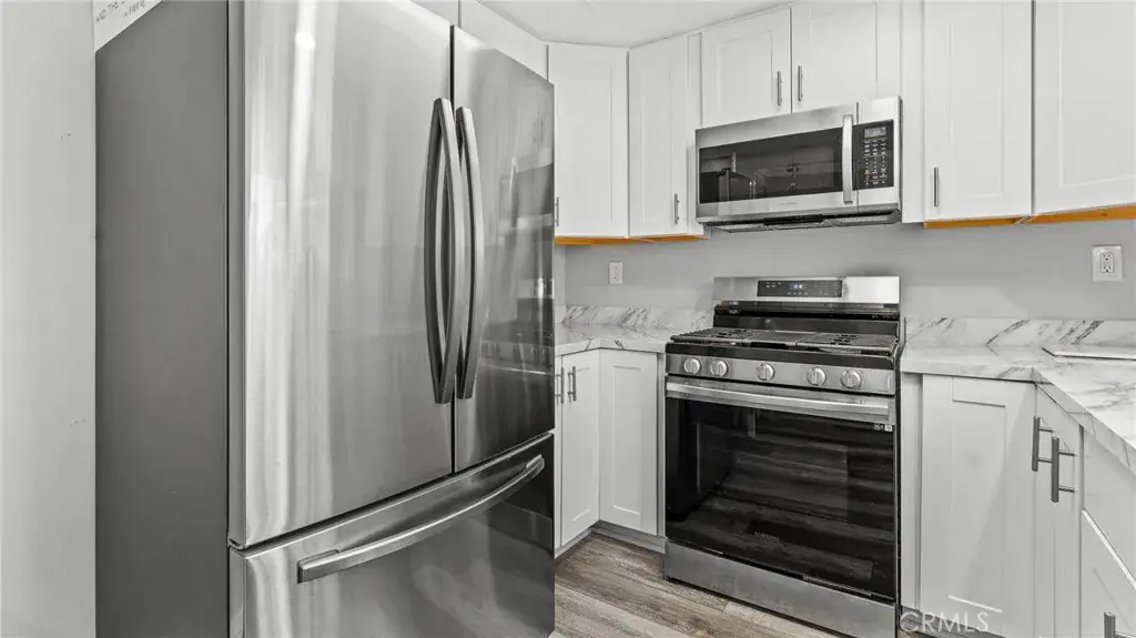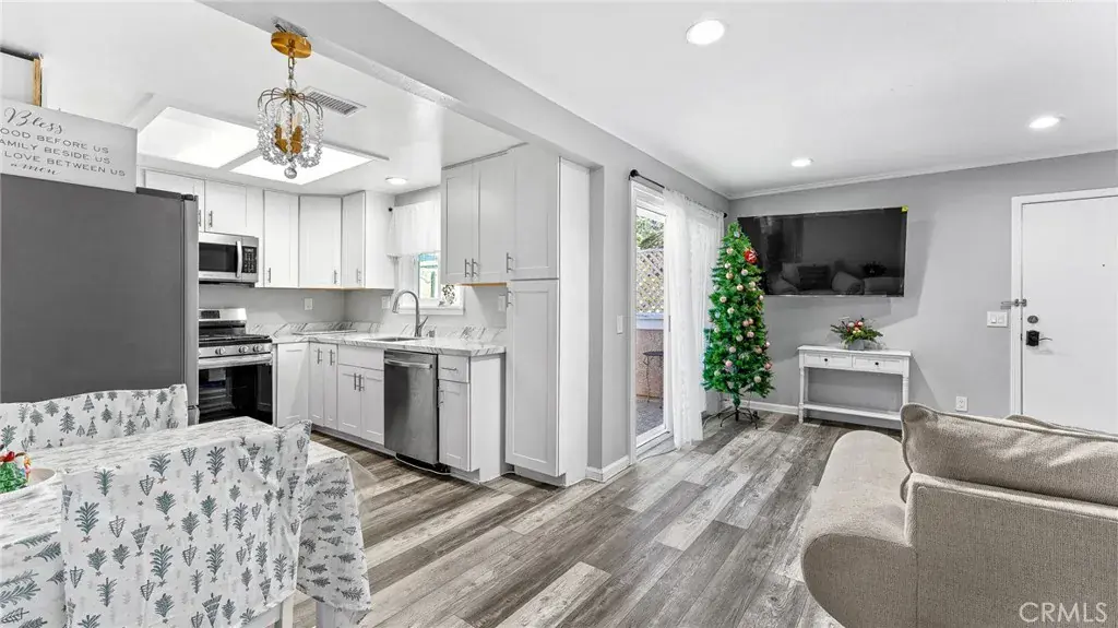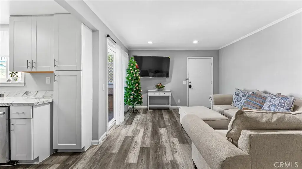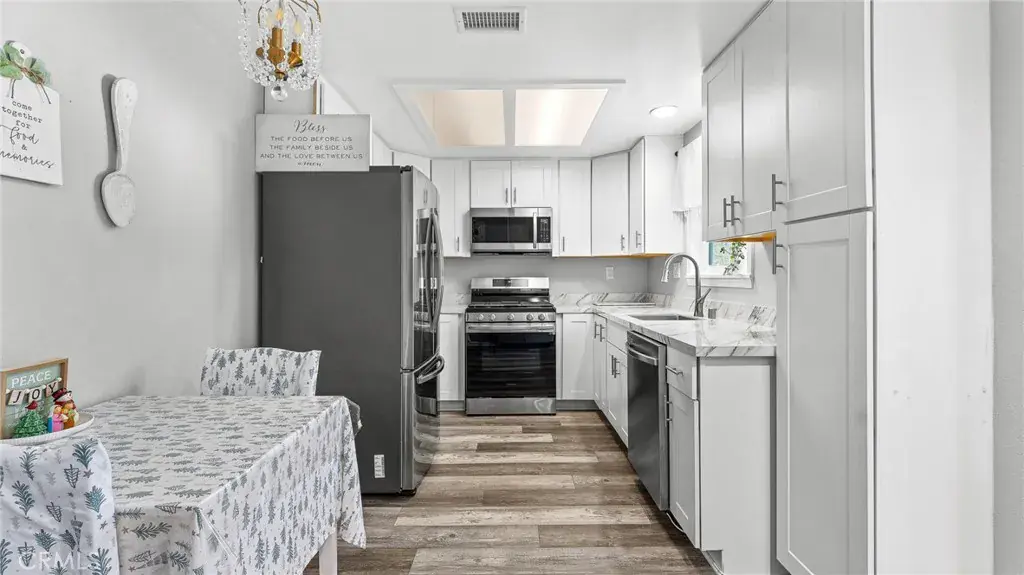 Beautiful move in ready condo in the heart of Simi Valley, this unit has been remodeled and offers open concept layout. It is an upstairs unit all on one level with two bedrooms and two full bathrooms. The Kitchen is remodeled with white cabinets, upgraded Quartz countertops and stainless steel appliances. There is also a large pantry for additional storage. The primary ensuite has dual pane windows and plantation shutters with walking closet, Bath has a vanity, with upgraded mirror, lighting and updated hardware. The second spacious bedroom also has dual pane window with plantation shutters and mirrored wardrobe doors. The second bathroom has vanity, mirror, lighting and hardware. Floors have been upgraded with luxury wood like vinyl. Recessed Lights throughout, large balcony off of the living room for outdoor living, and a separate two car garage. HOA Amenities include a large pool and spa and grass areas around the community. This property is adjacent to the Arroyo Simi Greenway and Bike Path for outdoor recreation. In addition to the modern farmhouse design, this property also offers central HVAC system and updated Water Heater
