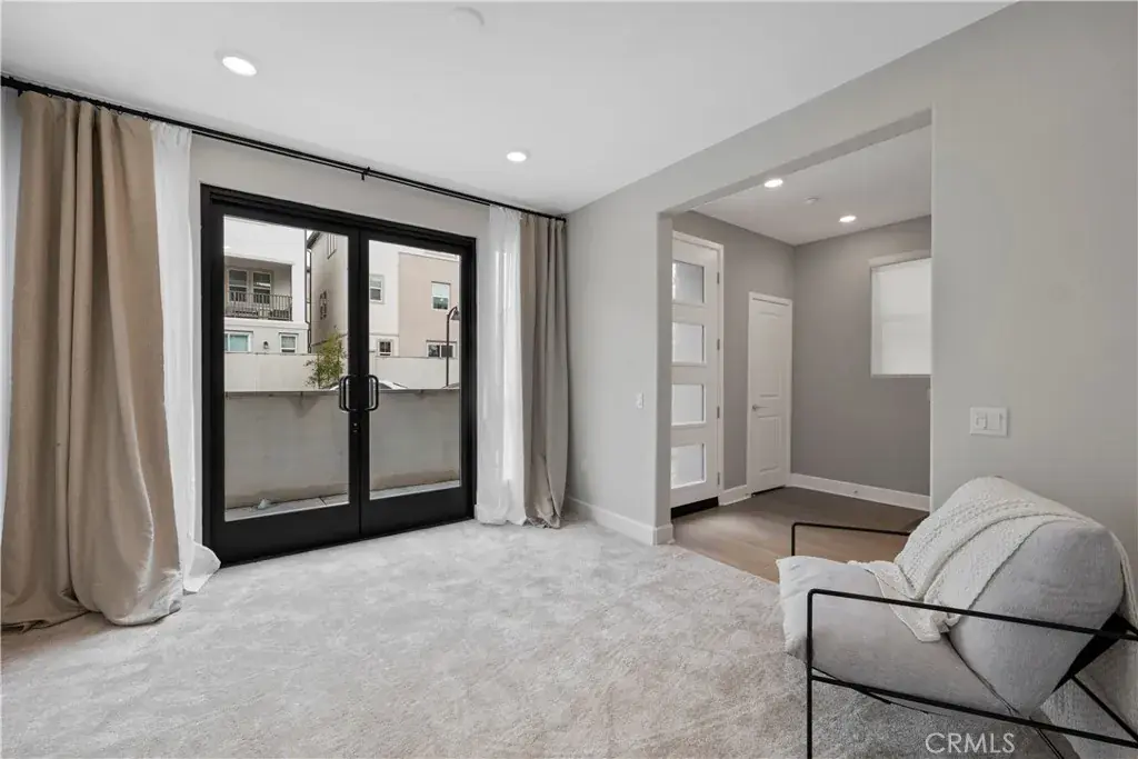 The upper level includes a spacious primary suite with a walk-in closet and en-suite bath, plus secondary bedrooms ideal for guests or home offices. Additional highlights include direct-access garage parking, energy-efficient solar, and upgraded finishes throughout.