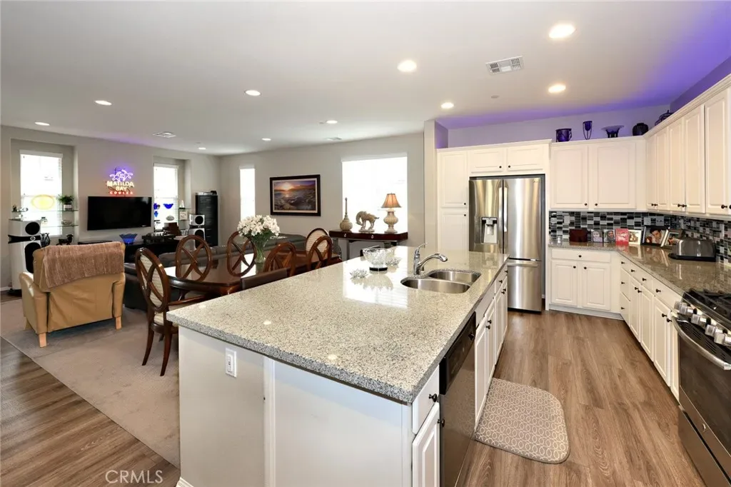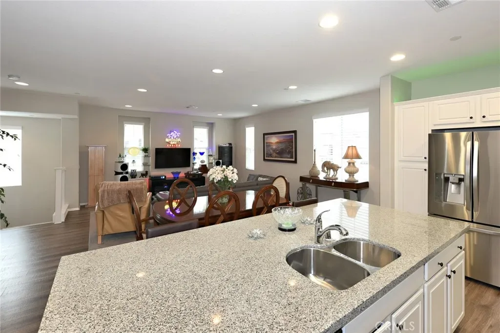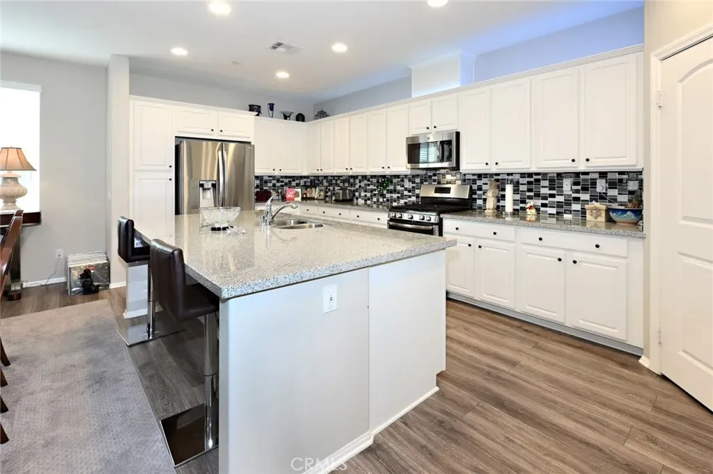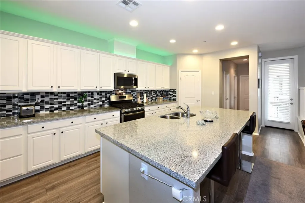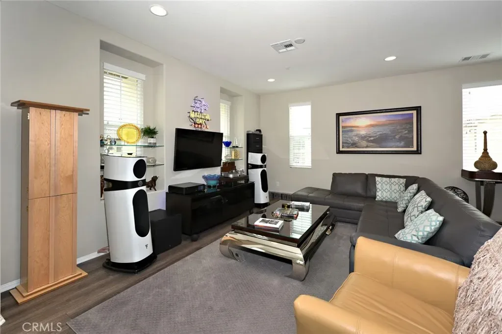 You’ll adore this gorgeous 3-story Mediterranean-style condominium with a “loft-like great room” on the second floor in west Simi Valley. This 3-bedroom, 3.5-bathroom home includes a 2-car garage, giving you 2093 square feet of magnificent luxury. The modern kitchen, with its plenty of storage, expansive granite countertops, massive island, stainless steel appliances, and a large pantry, is every cook’s dream. There is also a private patio and balcony, as well as laminate floors and carpeting throughout the well-lit end-unit with 24 windows. The separate laundry room is conveniently placed on the main floor. Both upper bedrooms feature an ensuite bathroom with a tub and shower. The top-floor master suite has its own private bath and a large walk-in closet with shelving. This is an exceptional property in move-in condition that will not last long.