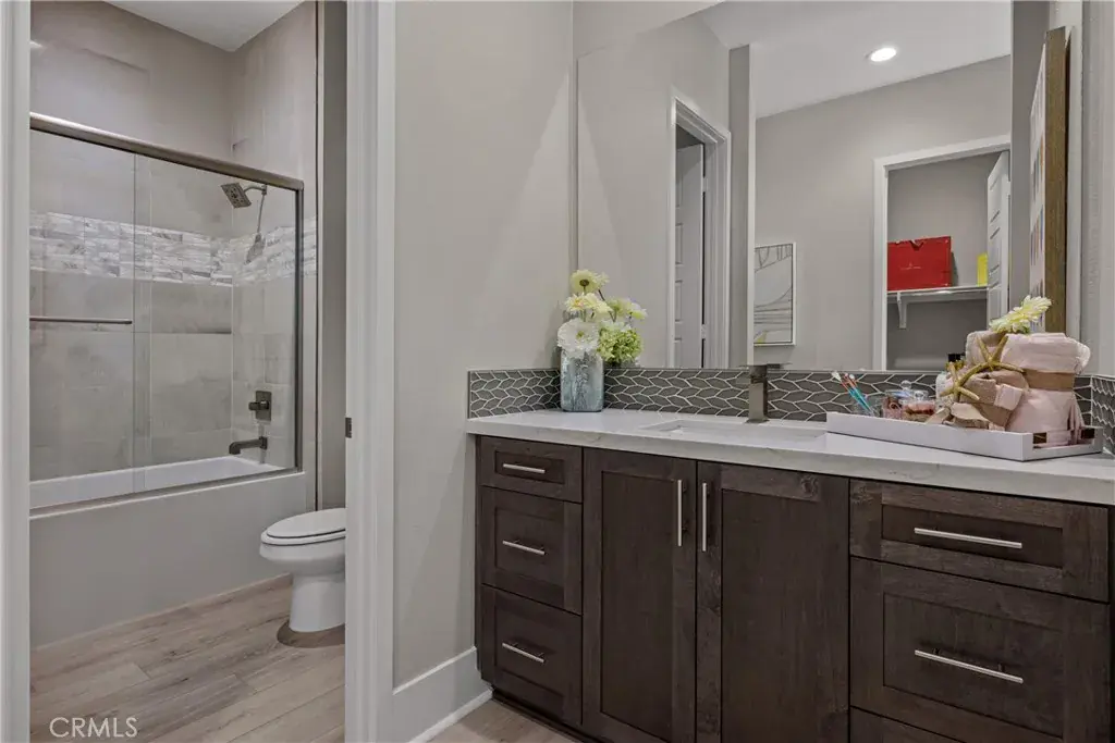 Get ready to host gatherings everyone talks about. Anchored by a statement fireplace, the open-concept living area connects seamlessly to the dining space for that quintessential California lifestyle. The kitchen is a total standout. It features an extended center island, a massive walk-in pantry, and custom lighting that makes the whole room sparkle. When the day is done, retreat to your primary suite sanctuary. It is tucked away for privacy and features dual walk-in closets plus a spa-inspired bath with a soaking tub and separate shower.