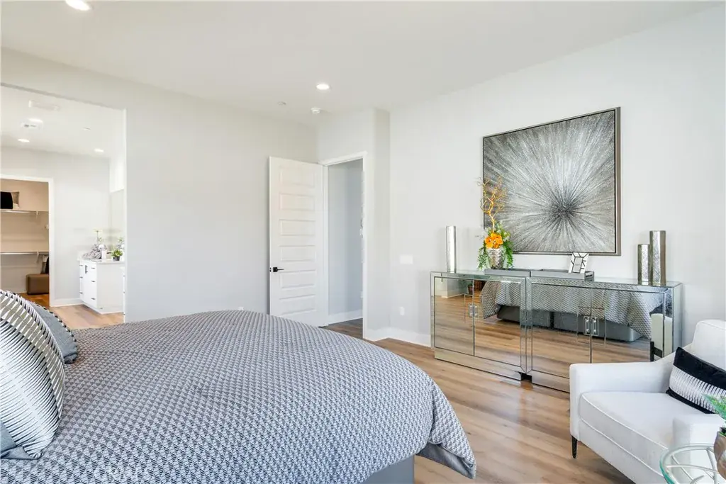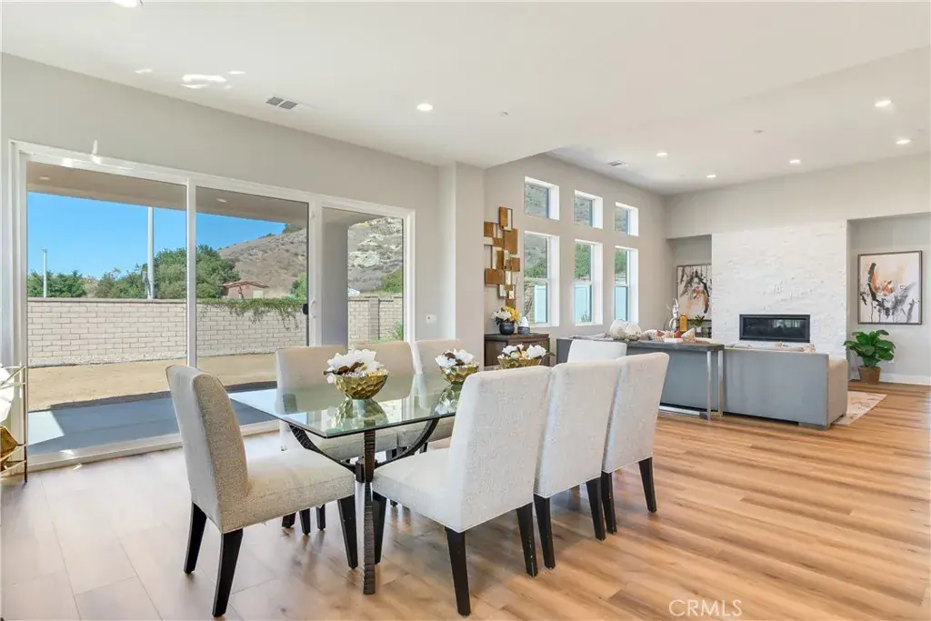 The open great room is anchored by a sleek linear fireplace, while the California Room with extended slider creates a seamless transition to the outdoors. A French door at Bedroom 4 adds flexibility for guests or a private office. Additional enhancements include an upgraded LED lighting package, designer finishes, upgraded flooring, an enhanced laundry room, and a 2-car tandem garage.