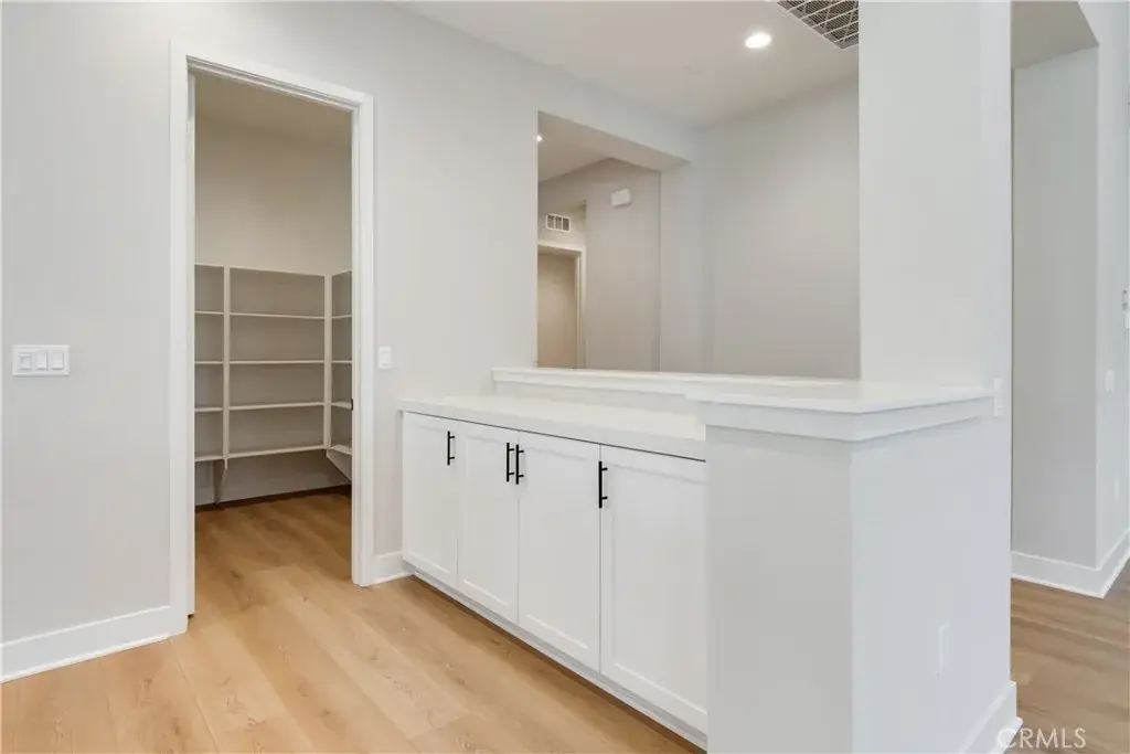 The chef-inspired kitchen is designed to impress with an extended kitchen island, upgraded Dacor appliance package with built-in refrigerator, an undercounter wine and beverage chiller, and white thermofoil cabinets with uppers. Enhanced with a designer LED lighting package and premium finishes throughout, this home blends elegance with everyday functionality.