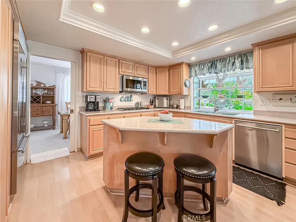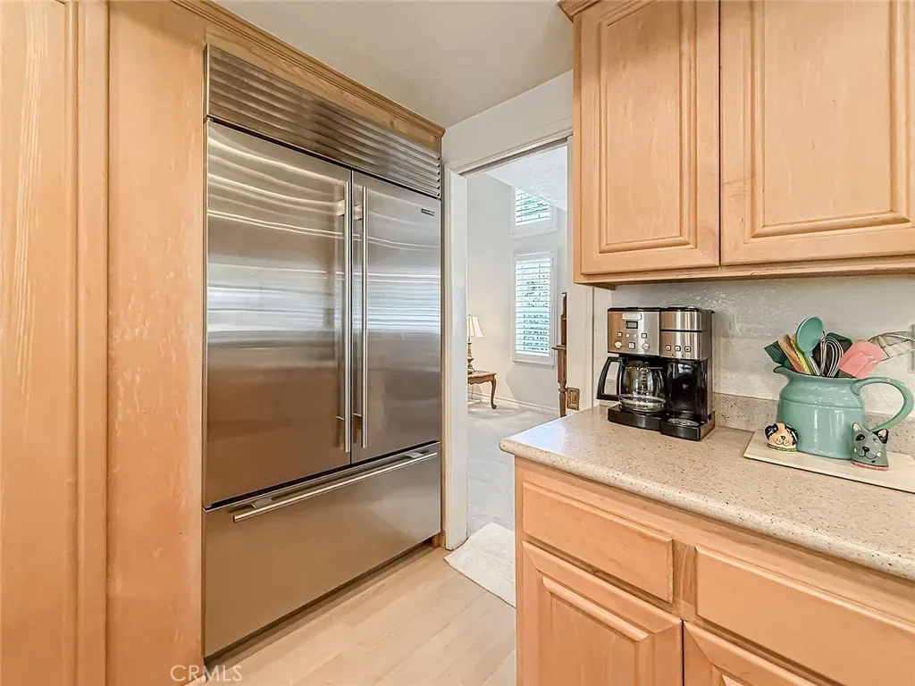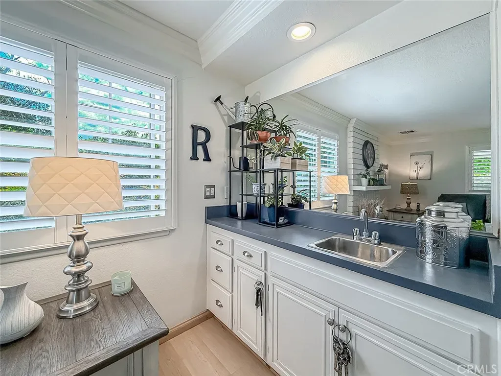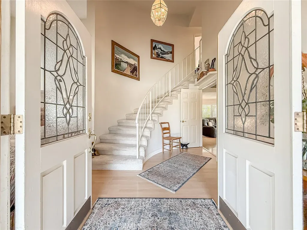 As you walk through the front door, you’re welcomed by vaulted ceilings that create an open and airy feel, along with wood shutters that add warmth and character throughout. The spacious living room opens to the dining room making it great for entertaining your guests. The kitchen has been thoughtfully designed with everyday living in mind, featuring a large walk-in pantry, a Sub-Zero refrigerator, garden window, and an abundance of smart storage with convenient drawers, including pull-out drawers in all lower cabinets and toe-kick drawers for extra space. It opens seamlessly to the family room with a fireplace and a wet bar, creating a comfortable and functional gathering space. The downstairs bathroom has been beautifully remodeled with wainscoting, and the large laundry room offers direct access to the outside.