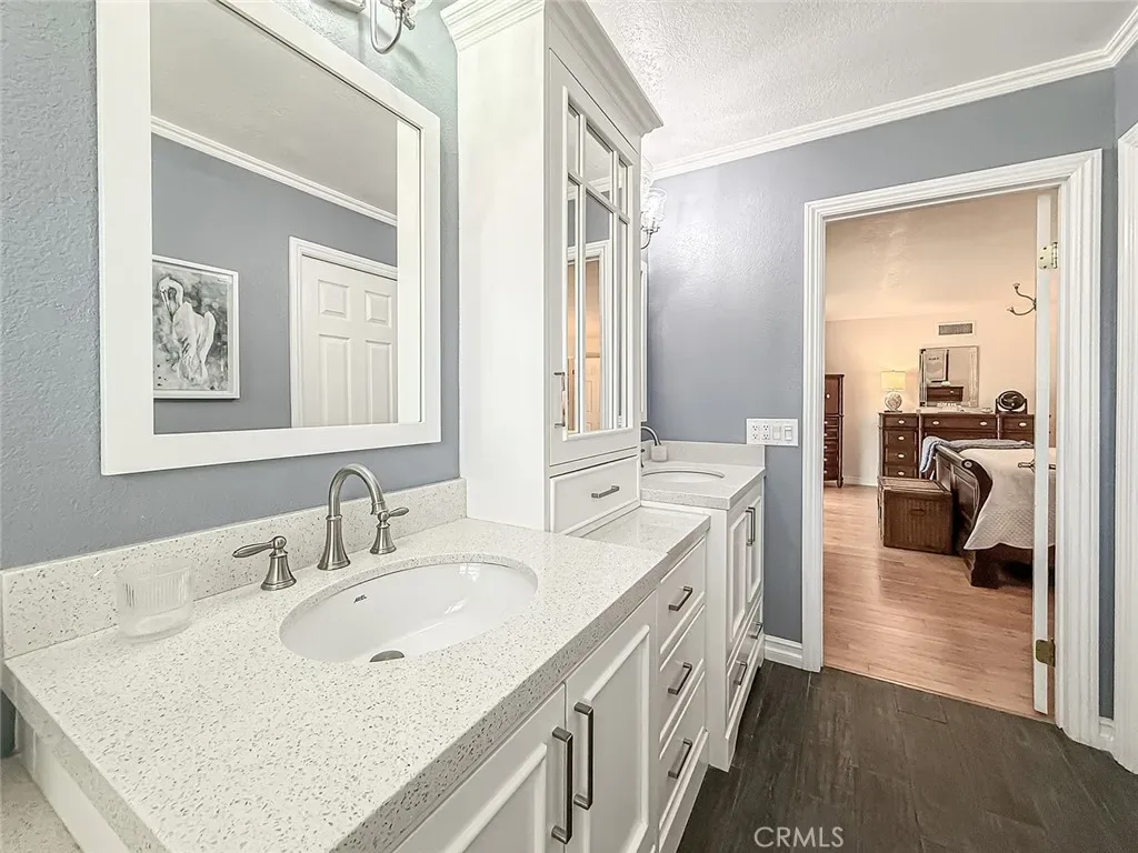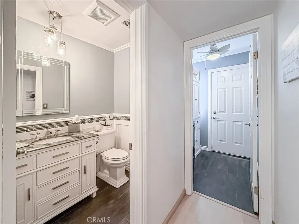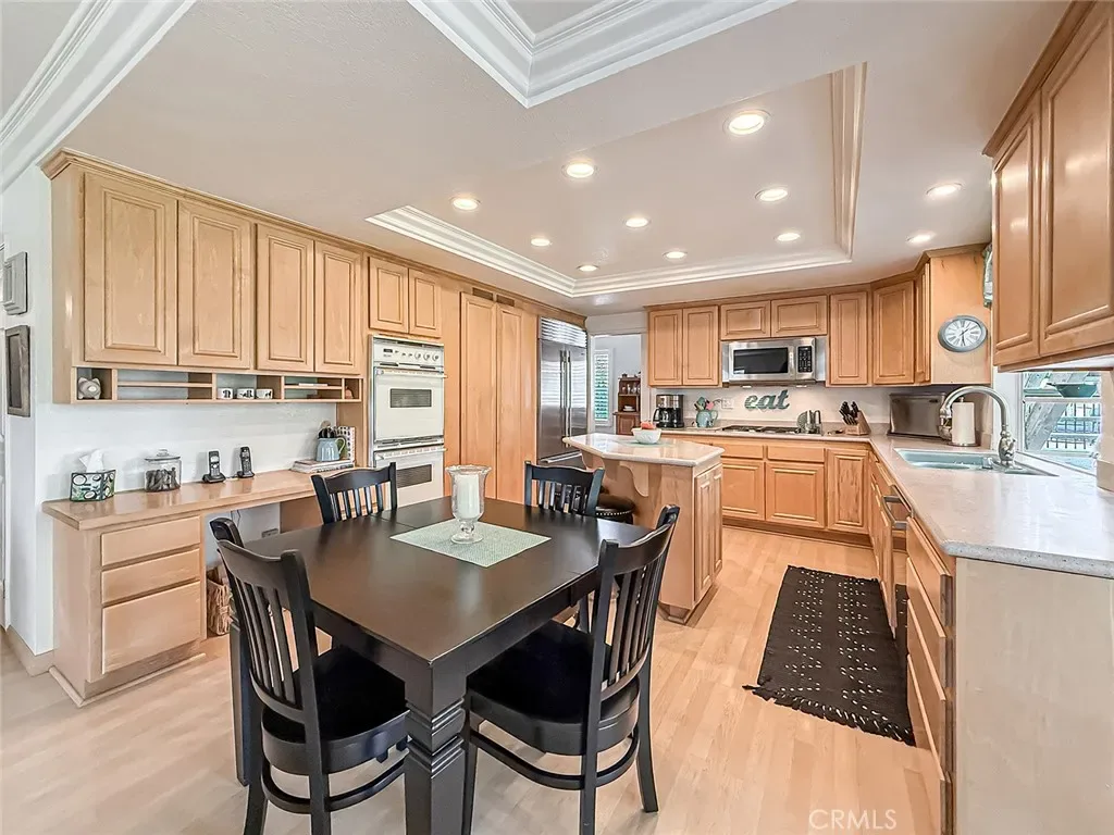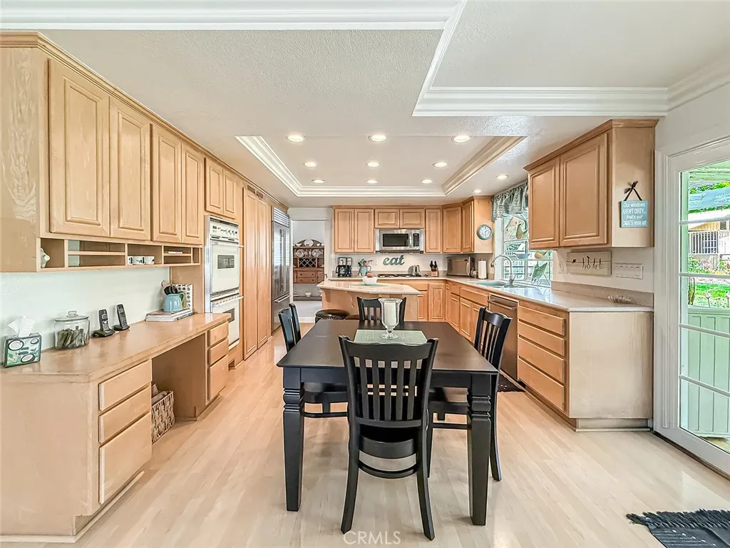 As you walk through the front door, you’re welcomed by vaulted ceilings that create an open and airy feel, along with wood shutters that add warmth and character throughout. The spacious living room opens to the dining room making it great for entertaining your guests. The kitchen has been thoughtfully designed with everyday living in mind, featuring a large walk-in pantry, a Sub-Zero refrigerator, garden window, and an abundance of smart storage with convenient drawers, including pull-out drawers in all lower cabinets and toe-kick drawers for extra space. It opens seamlessly to the family room with a fireplace and a wet bar, creating a comfortable and functional gathering space. The downstairs bathroom has been beautifully remodeled with wainscoting, and the large laundry room offers direct access to the outside.