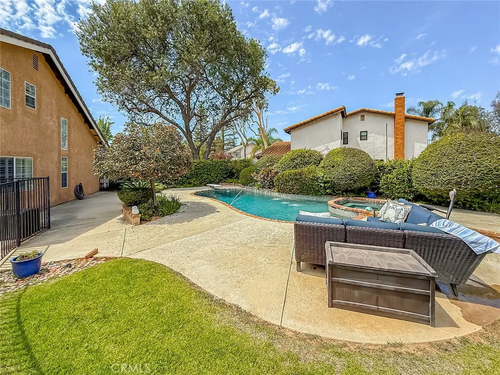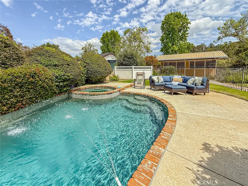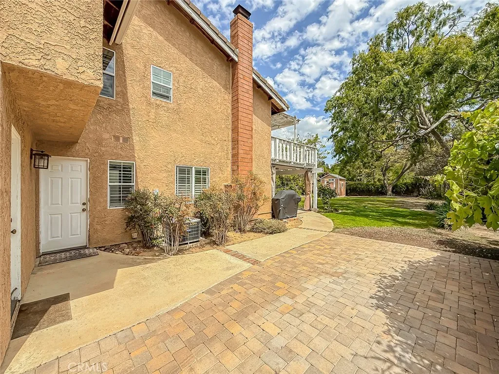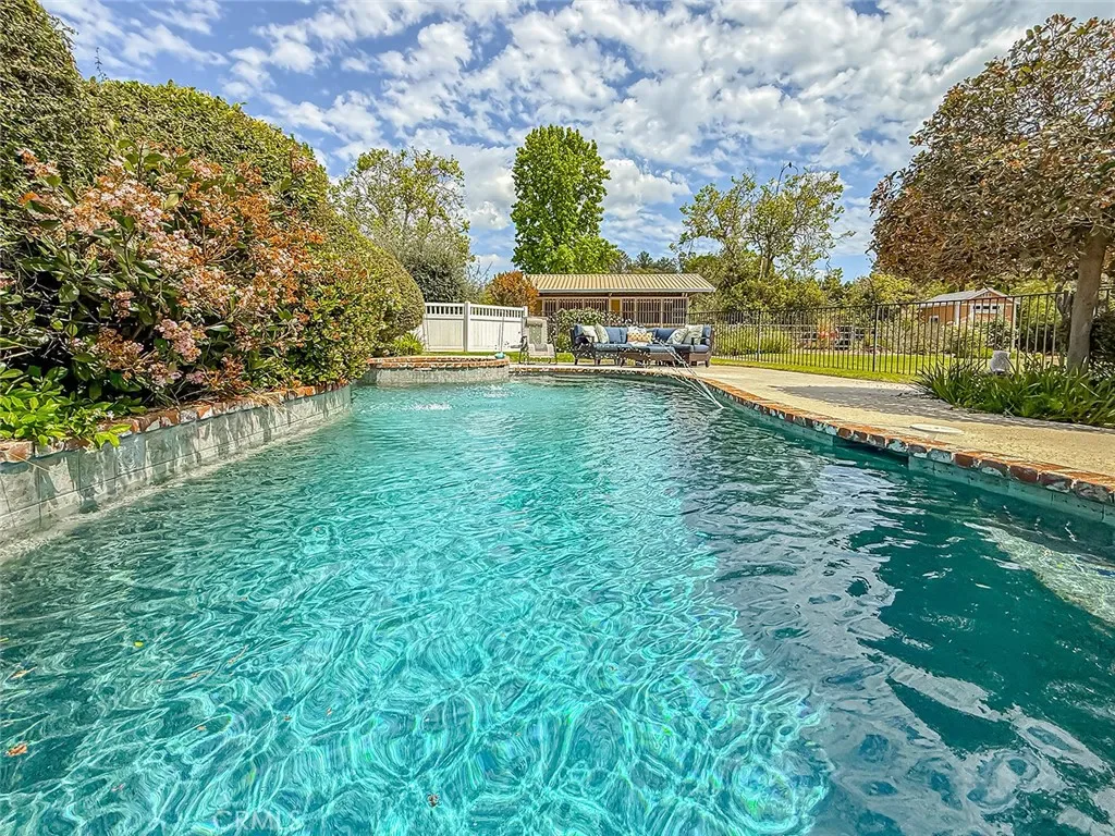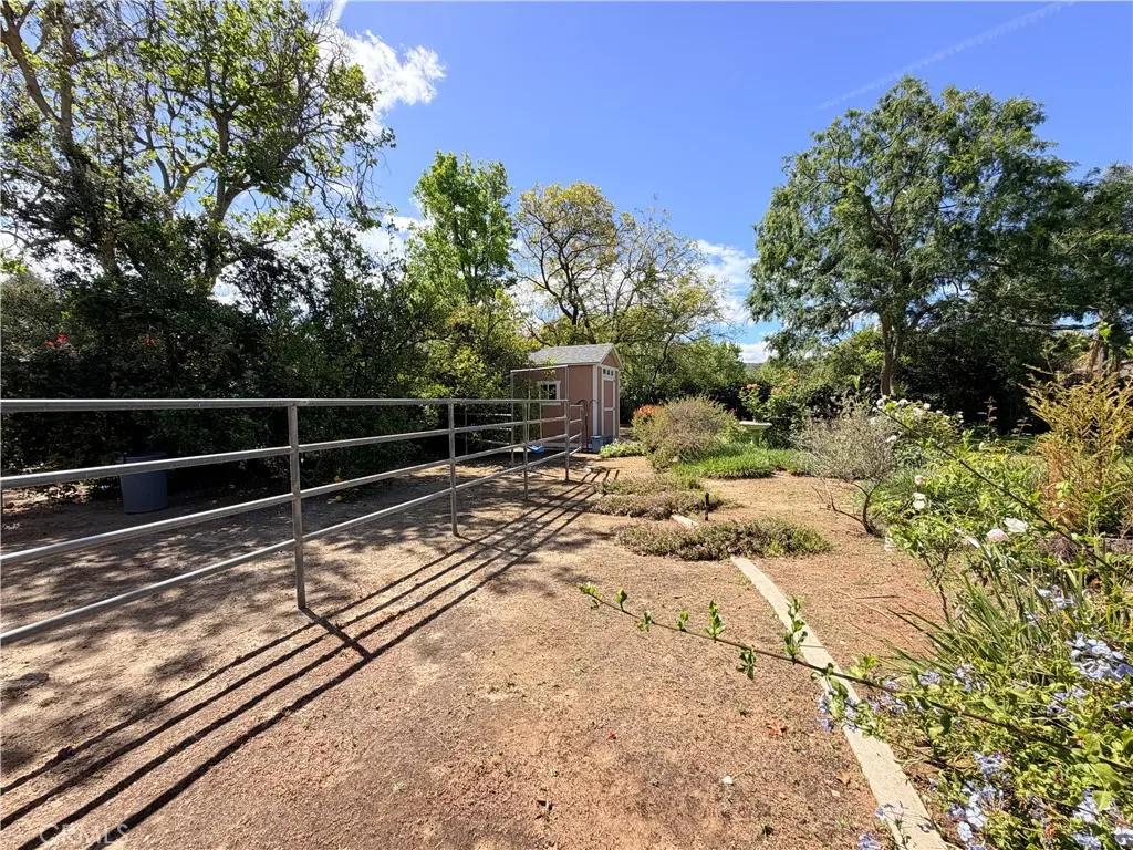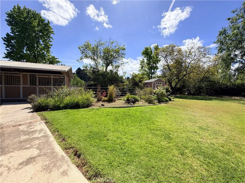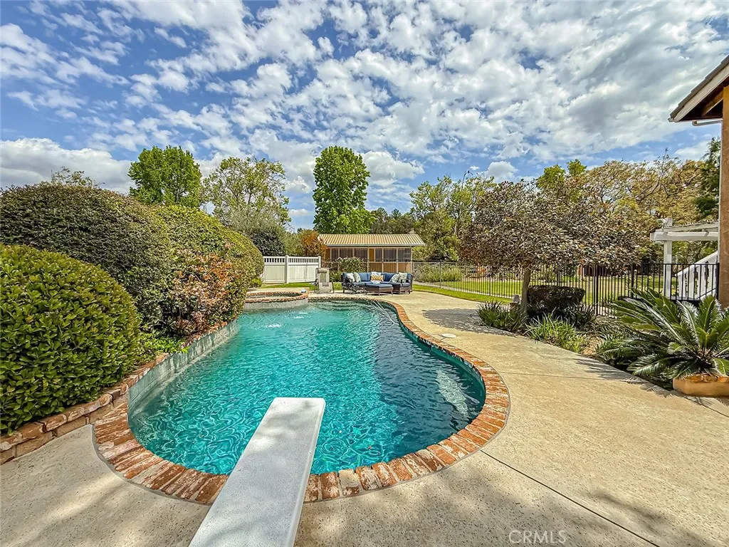 Step outside and you’ll see what truly sets this property apart. The home sits on a large, flat pie-shaped lot just under half an acre, offering space that’s hard to find. The backyard features lush grass, a built-in BBQ, fruit trees, and a refinished pool and spa with a water jet feature that adds a beautiful sense of movement to the space. There’s also a 2-stall barn, horse corral and turnout area, Tuff Shed for storage, and a wide driveway with long RV access finished with upgraded pavers, perfect for a horse trailer, RV, or additional vehicles, along with a three-car garage. You’ll also enjoy direct access to nearby horse trails.