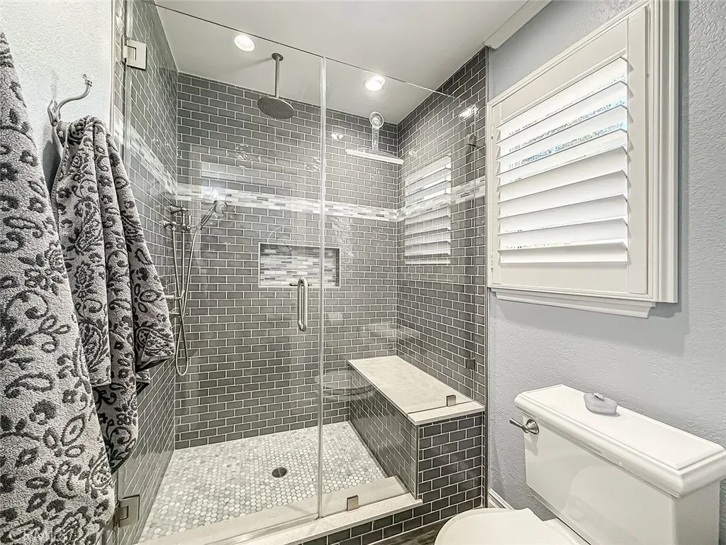 Upstairs, you’ll find all four bedrooms, including a spacious primary suite with a walk-in closet and a highly upgraded bathroom featuring double sinks with a tall center cabinet offering ample storage, a walk-in shower with seamless glass, and tile carried all the way to the ceiling. The hallway bathroom has also been updated with clean white tile and a deep soaking tub, along with three additional well-sized bedrooms.