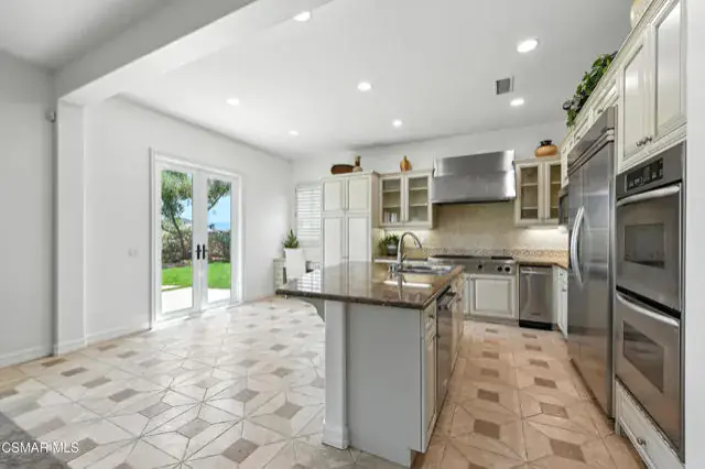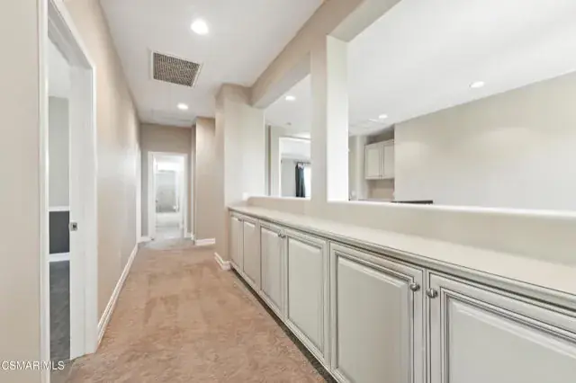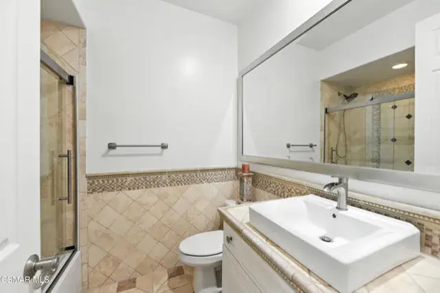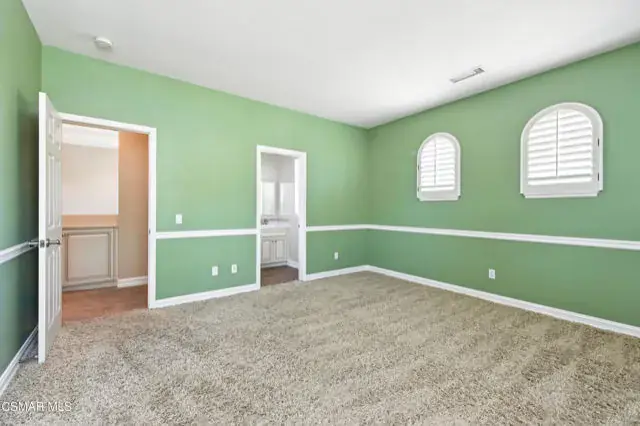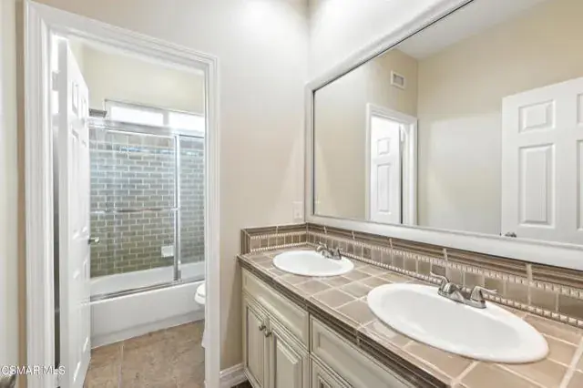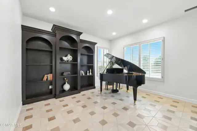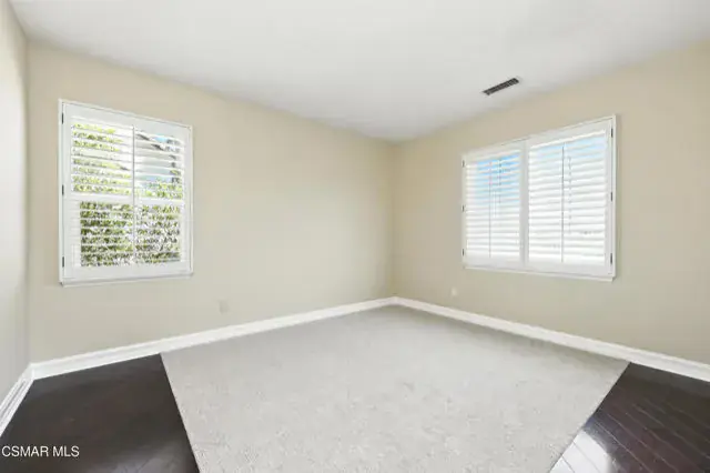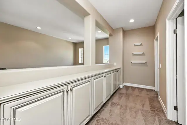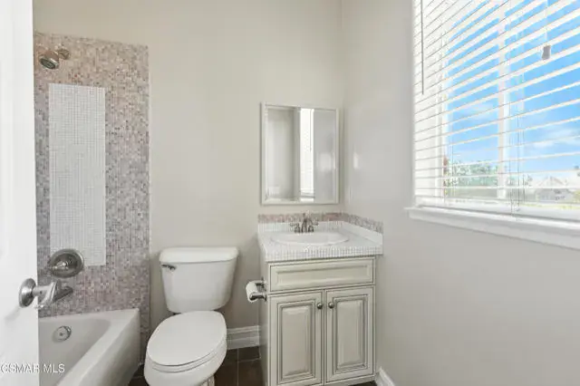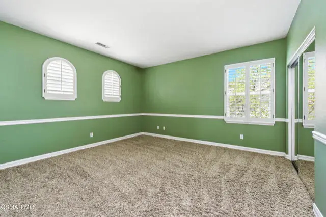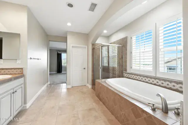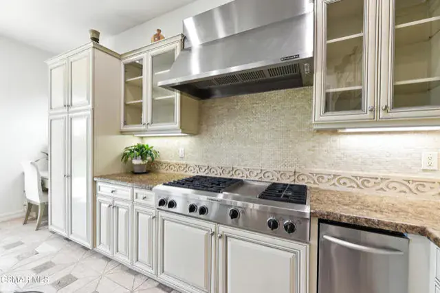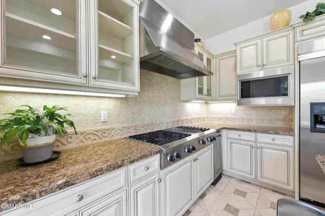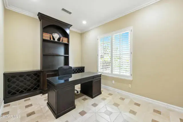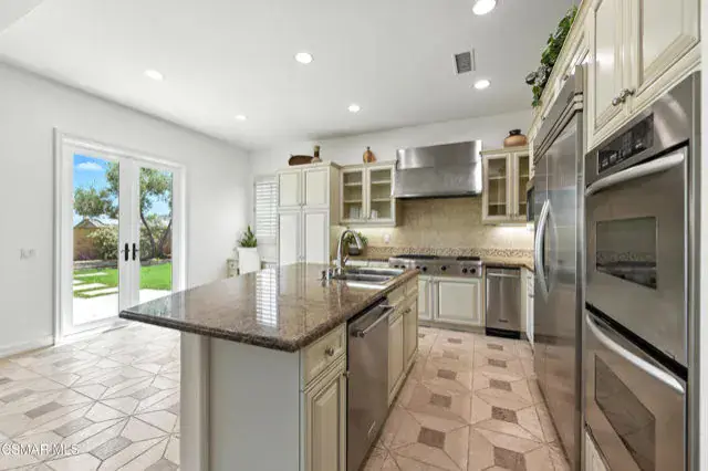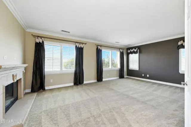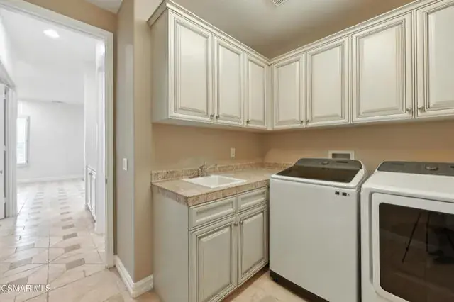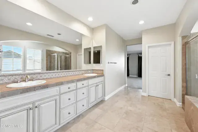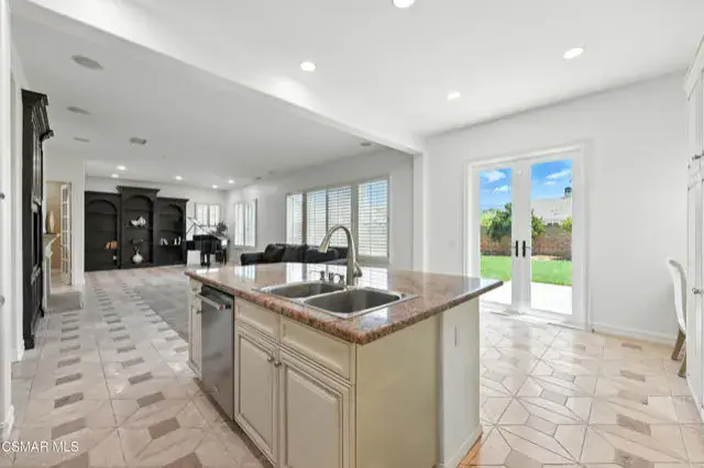 HOME HAS VA ASSUMABLE LOAN AT LESS THAN 3%! Step into this extensively upgraded former model home, offering over 3,200 square feet of thoughtfully designed living space and located on a spacious 10,454 square foot lot in one of Simi Valley’s most desirable neighborhoods.As you enter, soaring ceilings, crisp crown molding, and plantation shutters set an elegant tone. Travertine and marble flooring guide you through the main level, where you’ll find a formal living space that transitions seamlessly into a refined dining area with inset display shelving and downlighting–perfect for entertaining.The heart of the home is the chef’s kitchen, featuring granite countertops, custom cabinetry, a large center island with a sink, and high-end KitchenAid stainless steel appliances, including a 6-burner gas range and a new microwave. There’s both a breakfast bar and a cozy nook for casual dining. The kitchen flows into the spacious family room, where recessed lighting, built-in bookcases, a custom entertainment center, surround sound, and a warm fireplace create a welcoming atmosphere.Tucked just off the main living area is a sophisticated home office that can double as a downstairs bedroom, with French glass doors, built-in cabinetry, and a custom wine rack. Nearby, a full bathroom features marble counters and flooring, offering both style and function for guests. Also on the main level, the well-appointed laundry room includes travertine counters, built-in cabinetry, and a sink, combining convenience with elegant finishes.Upstairs, the luxurious primary suite offers double door entry, sweeping views, and a tranquil retreat complete with custom draperies, plantation shutters, and an electric fireplace. The primary bath includes a stall shower, oversized garden tub, and an expansive double-sided walk-in closet with natural light. Three additional bedrooms complete the upper level, each designed with comfort, style, and generous closet space.This home also boasts exceptional accessory features designed for comfort and efficiency. A fully owned 12,210-watt solar system significantly reduces energy costs. Dual-zone A/C units were replaced in 2021 for optimal climate control. The beautifully manicured front and rear yards feature fresh sod and brand-new drip and sprinkler lines, and the oversized two-car garage is fully finished for additional functionality.With timeless finishes, thoughtful upgrades, and energy-saving amenities throughout, this residence offers the perfect blend of elegance, practicality, and California living.