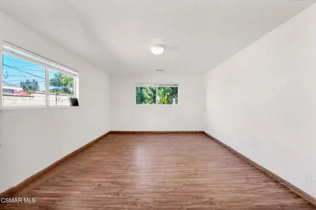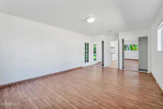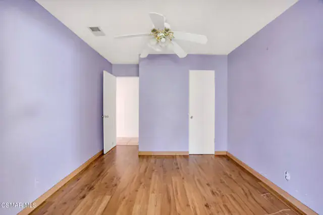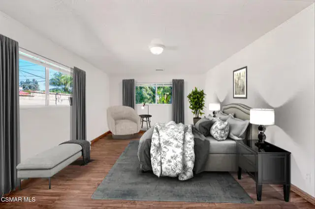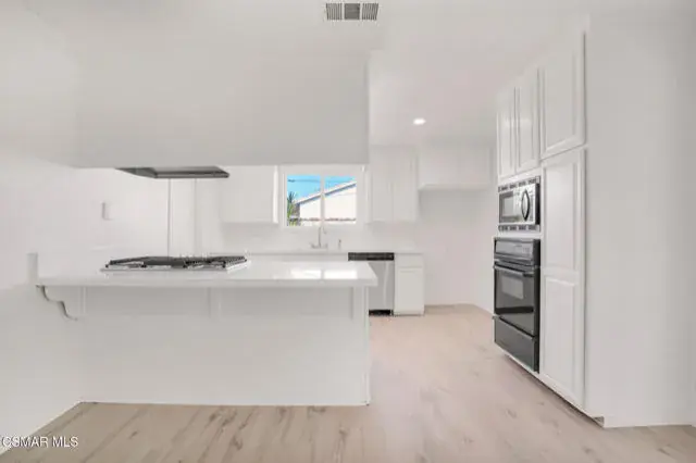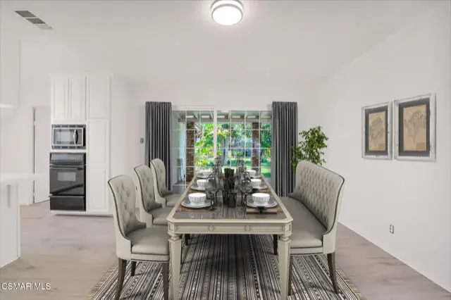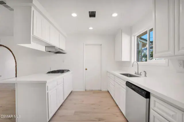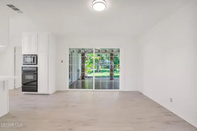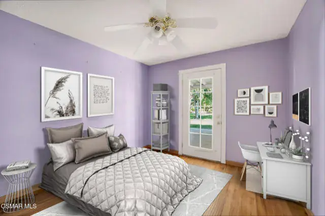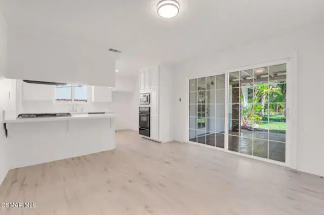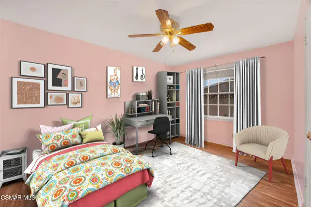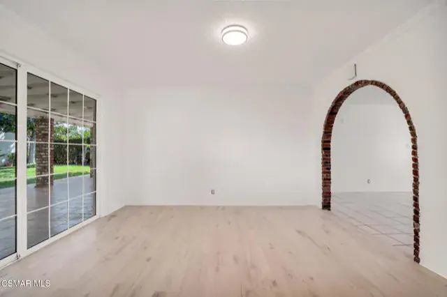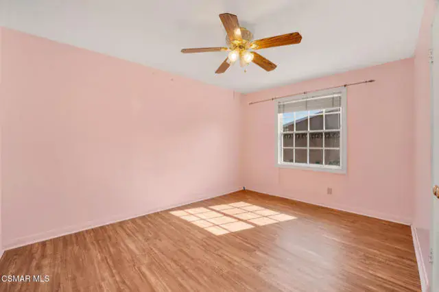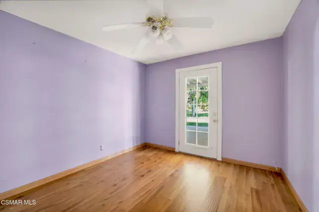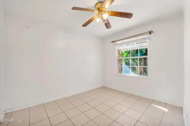 Welcome to this charming single-story home located in an established Western Simi Valley neighborhood. Offering 3 or 4 bedrooms and 2 bathrooms across 1,399 sq. ft. of living space on a large 10,018 sq. ft. lot with gated RV parking, this home is clean, fresh, and move-in ready. A lushly landscaped front yard with brick accents and a large covered porch creates a welcoming first impression. Inside, the light-filled living room features tile flooring, a bay window overlooking the front yard, and a radius brick-accented throughway leading to the living room. The light and bright kitchen is open to the dining room and features white cabinets, quartz countertops, recessed lighting, a farmhouse-style sink, a breakfast bar, and direct access to the garage. Kitchen appliances include a newly installed Frigidaire dishwasher, a 5-burner gas range, and a built-in microwave and wall oven. The dining room opens to a full-width covered patio with brick pillars, an ideal spot for outdoor dining or relaxation overlooking the private backyard with fruit trees including persimmon, orange, lemon and avocado, a large grassy area, and a detached workshop–perfect for hobbies or extra storage (no electricity). All bedrooms include ceiling fans for added comfort, with the fourth family room/bedroom addition offering dual closets and a glass-paned French door providing direct access to the backyard. Both bathrooms feature a shower-over-tub and updated fixtures. Additional highlights include dual-paned windows and slider throughout, updated HVAC, copper plumbing, and a 2-car garage with storage cabinets and laundry hookups. Thoughtfully maintained and move-in ready, this home offers a comfortable blend of charm, function, and outdoor enjoyment–a wonderful place to call home.