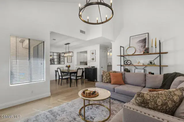 Welcome Home! This stunning three bedroom two-and-a-half-bathroom gem is the home you have been waiting for! Situated in the tranquil Summer Place neighborhood in Simi Valley, you are first greeted by a private front patio perfect for grilling, entertaining, and spending the evenings relaxing. Through the front door you have a totally remodeled living room with upgraded hardwood flooring, a striking stone fireplace, a beautiful chandelier, vaulted ceilings, crown moldings, and recessed lighting. Next to the living room is a perfectly sized dining room which opens to the nicely upgraded kitchen with granite-like counters, stainless steel appliances, and plenty of storage room for all of your cooking desires. Next to the kitchen is a family room which opens to the center atrium, bringing in wonderful nature light and perfect atmosphere. Upstairs there are three immaculate bedrooms, each with their own ceiling fan and light. The master suite has dual closets and a totally remodeled bathroom with marble tile floors, a beautiful dual sink vanity, new light fixtures and mirrors. Not to be forgotten is the large two car garage perfect for all automobile and storage needs. The modestly priced HOA covers all exterior maintenance as well as upkeep of the community area, and access to multiple community pools/spas. Run don’t walk! This one won’t last!