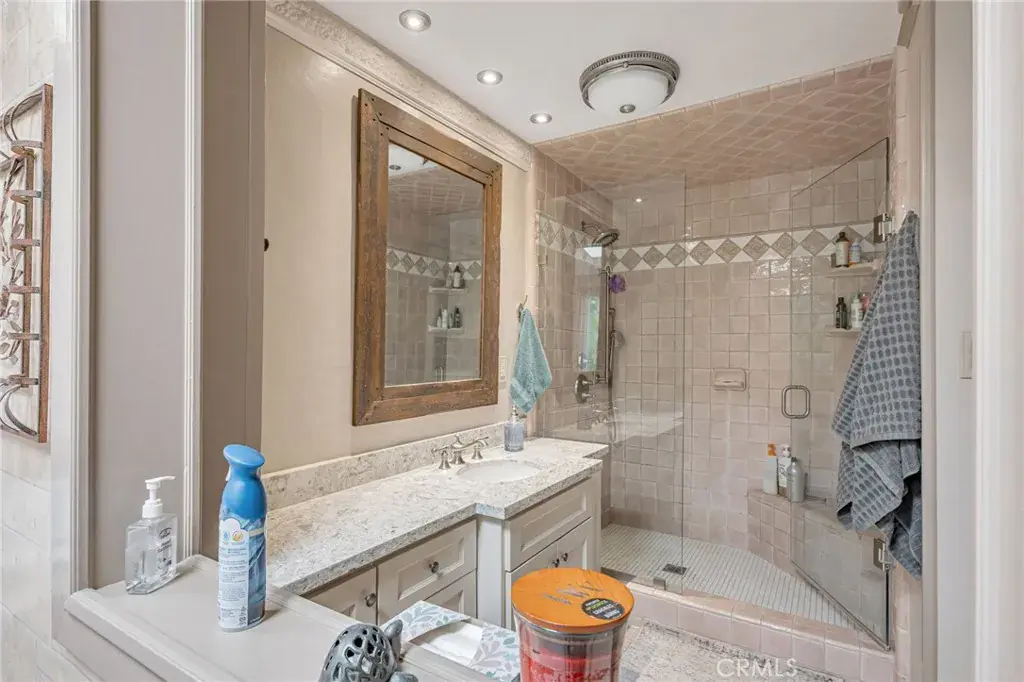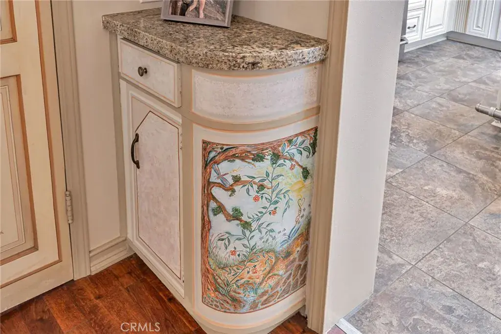 You’re looking for a home and you need to stay in the city but you don’t want to feel like you’re in the city. Well, nestled in the serene Simi Valley Knolls is a beautiful custom built home that you have to see. Words can’t express the amazingness of this home so, you’ll have to take a look but, let me spark your interest. Artisan painter Gene Young, once an owner, has left the gift of several amazing murals and spectacular hand painted touches throughout. How lucky are you. In the living room, there’s a vaulted beamed ceiling. On those chilly evenings, why not cozy up to the romantic brick fireplace. The kitchen has been tastefully remodeled with a sunny skylight, granite counters, center island, soft close cabinets and drawers, stainless steel appliances and the best… pull out drawers in the pantry “Huzzah”! Bet you can’t wait to get cookin’. The formal dining room will house several hungry guests so put on your chef’s hat. They won’t want to leave so as luck will have it, there’s 2 perfect bedrooms with their own bathrooms. The primary has an amazing jetted tub to soak away all the day’s stresses. WAIT! SoCal doesn’t have many basements but we have a sizable one for you. Imagine a wine cellar, gym, office, play room for the kiddos, storage, music or artist studio etc. More: RV access, work shop, 3 car garage, 2 storage sheds, carports, BBQ, gazabo, deck, paved driveway, auto on/off generator, seasonal creek, parks, hiking, shopping, eating & FWY close. WELCOME HOME!