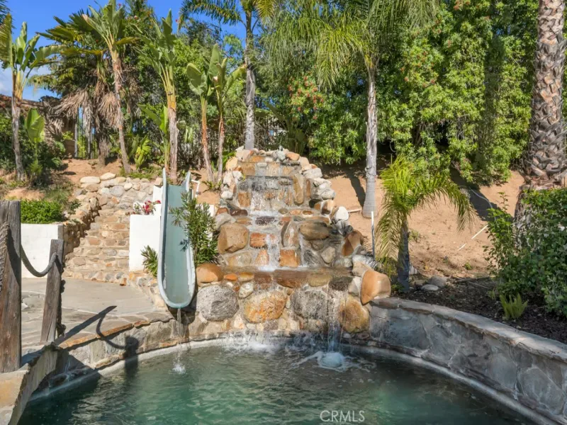 Outside, your private oasis awaits, enjoy a Pebble Tec beach entry pool with rock waterfall, spa, slide, fire pit, custom planters, fruit trees, and space to entertain or expand (ADU potential). Bonus: paid solar, gated RV parking, and exclusive easement access unique to this home.