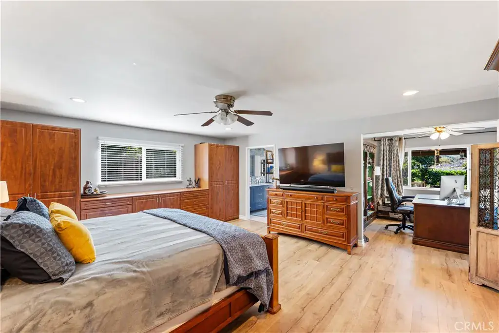 Absolutely gorgeous Sinaloa Highlands home situated on a massive 15,000+ sq lot with fully paid solar panels. As you enter this 5 bed/4 bath home with over 2,500 sq ft, you are greeted by an exquisite kitchen with granite counters and breakfast bar, custom cabinets, recessed lighting, tile backsplash and stainless steel appliances. Follow the open floor plan from the kitchen through the dining area and into the living room with a tile fireplace and access to the patio through the sliding door. The primary suite is absolutely gigantic with built-ins, a separate office area and a completely remodeled bathroom featuring dual sinks, LED lighted mirrors, frameless glass shower, rain head with blue-tooth speakers, jets and a linear drain. One wing includes three bedrooms and two bathrooms and the fifth bedroom with attached bath is located off of a side hallway. There is also a separate family room which also has access to the patio in addition to views of the fabulous backyard. Other features include newer wood floors throughout the home and a new hot water heater. The outdoor spaces of this home are perfect for those who like to entertain as there is a pizza oven with built-in counters on the patio, a gazebo that is ideal for al fresco dining located down a private walkway, a huge artificial grass area and plenty of space for a pool, sport court or ADU. The backyard also has an abundance of fruit trees which include pineapple guava, meyer lemon, key lime, pomegranate, persimmon, fig, traditional lemon, rosa plum, Washington naval, apricot, peach, avocado, olive and a passionfruit vine. Located within close proximity to schools, parks, hiking and shopping.