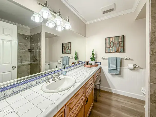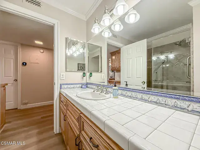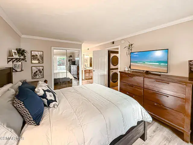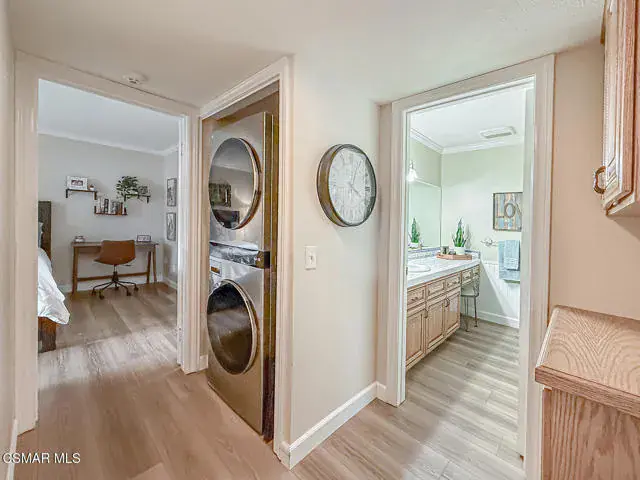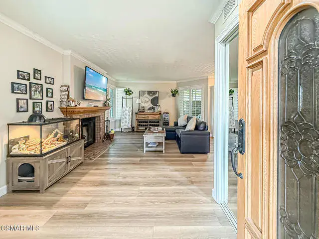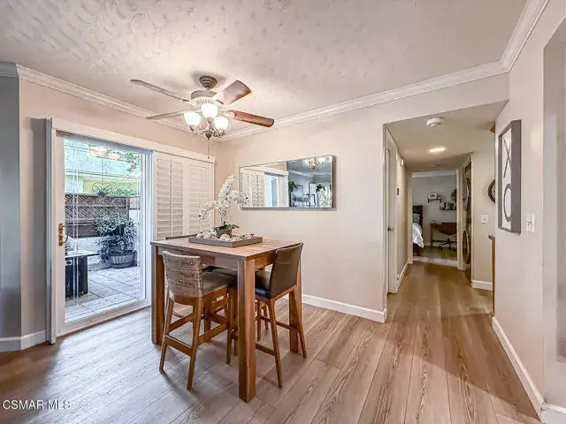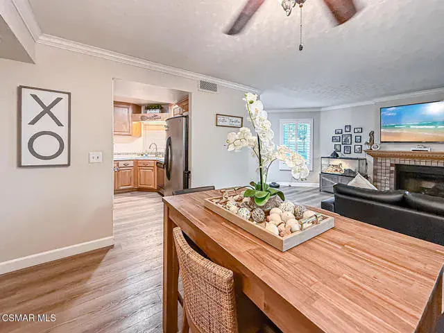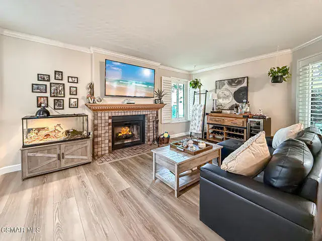 Welcome to this beautifully upgraded 2-bedroom, 2-bath lower-level condo in the desirable Sinaloa Villas community. Offering 1,074 sq. ft. of living space, this turnkey home features private patios off the living room and primary suite for indoor/outdoor enjoyment.Upgrades include wide-plank vinyl flooring throughout, dual-paned windows and sliders, smooth ceilings, crown molding, plantation shutters, and updated light fixtures. The living room boasts an oak wood-mantled fireplace, while the dining area is highlighted by a ceiling fan with lighting.The remodeled kitchen is appointed with custom cabinetry and stainless appliances: dishwasher, 4-burner gas range/oven, and microwave. A convenient indoor stackable laundry closet sits in the hallway near extra linen storage.Both bathrooms have been tastefully updated–one with a frameless glass shower and designer tile accents, the other with a shower-over-tub in the inviting primary suite.The community offers a pool, spa, clubhouse, tennis courts, ample guest parking, and HOA coverage for water, trash, and earthquake insurance. Conveniently located near shopping, dining, and schools.Hurry over!