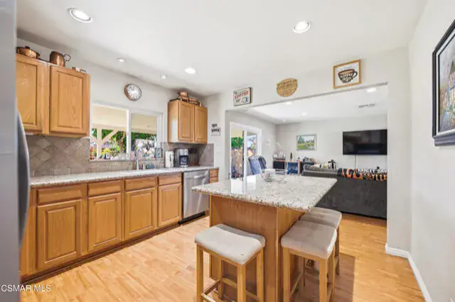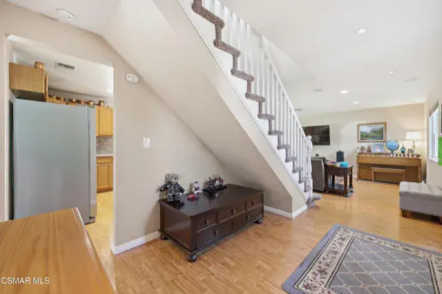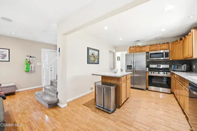Welcome to this wonderful, move-in-ready home featuring a spacious layout and an expansive backyard perfect for entertaining. Step inside to a bright living room with recessed lighting and a remodeled kitchen featuring brand-new stainless steel appliances, an island with seating, and plenty of storage. The adjacent dining room includes a sliding door to the backyard and can easily be used as an additional bedroom. You’ll also find a convenient laundry room with outdoor access, a bonus room, and a beautifully updated bathroom. Upstairs offers even more space with a cozy loft, a fully remodeled bathroom with a custom tile shower, a generous primary bedroom with a walk-in closet, two secondary bedrooms, and a versatile smaller room–ideal for an office or hobby area. This home features many upgrades throughout, including copper plumbing, dual-pane windows and sliders, custom blinds and shades, raised panel interior doors, recessed lighting in every room, and blown-in wall insulation new attic insulation and foil barriers for energy efficiency. Outside, enjoy a large yard with mountain views, trailer or boat parking, and a custom patio with lighting and ceiling fans–perfect for relaxing or entertaining. Located in the desirable Simi Valley foothills, this home is close to top-rated schools, parks, shopping, and dining. Don’t miss this opportunity–schedule your showing today!