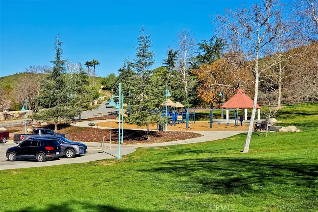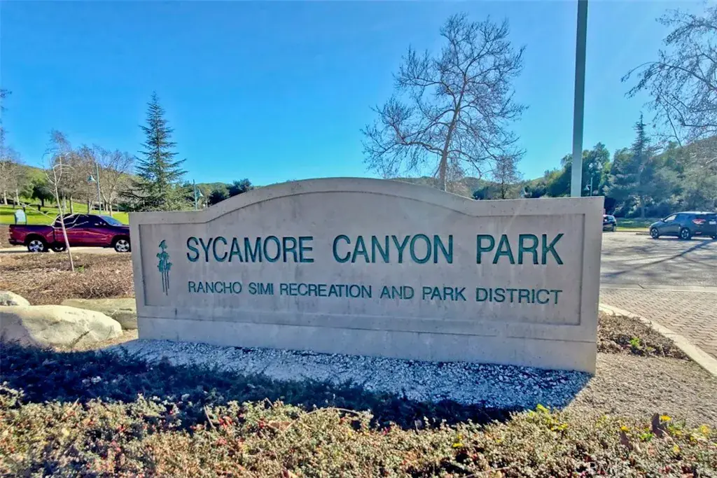Wonderful Sycamore Hills opportunity in exclusive Wood Ranch of Simi Valley. 4 bedroom and 2.5 bath single-family home with 2088 square feet of living area. Foyer with double door entry. Breath-taking living room with 17-foot ceiling, walls of windows adorned with beautiful shutters, and marble tile fireplace with wood mantle. Spacious and bright kitchen with garden window, breakfast bar, gas oven range, and built-in microwave. Charming formal dining room with wainscotting and ceiling fan. Roomy family room with sliding door to patio area. Large primary suite bedroom features vaulted ceiling, 14-foot wide closet with mirrored wardrobe doors, ceiling fan, and a view of the greenbelt and hills. The primary bathroom features dual sinks, soaking tub, separate walk-in glass shower stall, closet with mirrored wardrobe doors, and private toilet area. The middle bedroom features a vaulted ceiling and mirrored wardrobe doors. The home also enjoys newer carpet, smooth textured ceilings, dual-paned windows with shutter blinds, and recessed lighting. The rear yard features an inviting concrete patio area, mature lemon tree, and the private greenbelt area with no neighbors directly behind the home. A good-sized concrete driveway leads to the finished 2-car garage with direct access into the home, with washer and dryer, and abundant cabinetry storage. The HOA offers a swimming pool, spa and greenbelt areas. Conveniently located near Wood Ranch Elementary, hiking trails, shopping, and two very nice neighborhood parks.