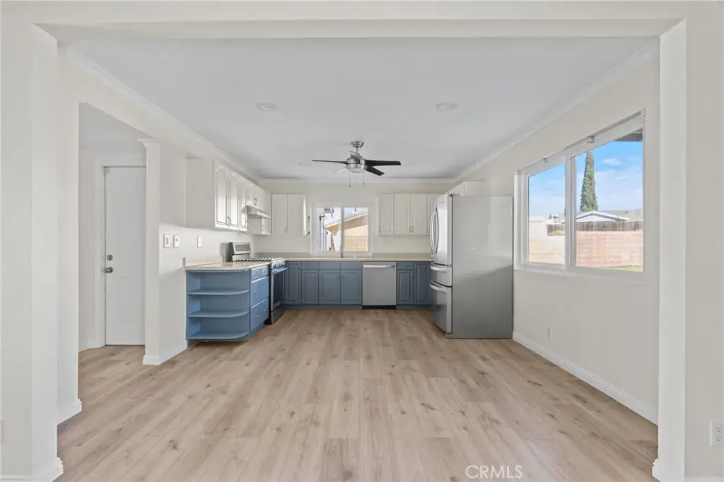 Welcome to 2165 Malcolm Street — a beautifully upgraded two-story home where thoughtful updates, inviting curb appeal, and a rare oversized fan-shaped lot come together. Offering approximately 1,600 square feet of comfortable and versatile living space, this home features an expansive front yard anchored by a mature birch tree. Inside, new luxury laminate wood flooring spans the main level, complemented by an upgraded kitchen featuring stainless steel appliances. The open-concept layout is ideal for seamless indoor-outdoor living and entertaining. Upstairs features three bedrooms, including the primary, while a convenient downstairs bedroom and full bathroom provide flexibility for guests or multi-generational living. Step out to your standout of a backyard. The home is situated on a rare and oversized 7,800+ square foot fan-shaped lot that widens at the rear, resulting in an expansive yard that is rarely available and offers endless potential. A covered patio with ceiling fans provides a comfortable space for relaxing or hosting gatherings. Raised garden beds are also already in place for growing herbs, fruit, and vegetables alongside mature lemon, pomegranate, and plum trees. Additional highlights include recessed lighting throughout, direct garage access with built-ins, an oversized storage closet, laundry in the garage, RV/boat parking beside the home, and a roof completed within the past three years. Don’t miss out on this incredible opportunity!