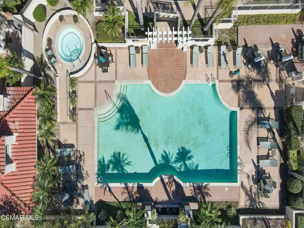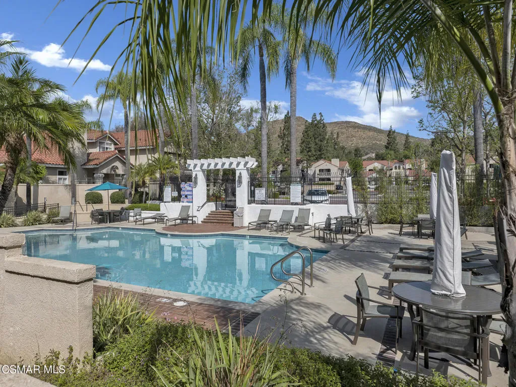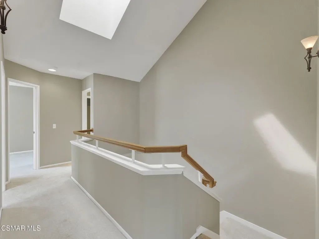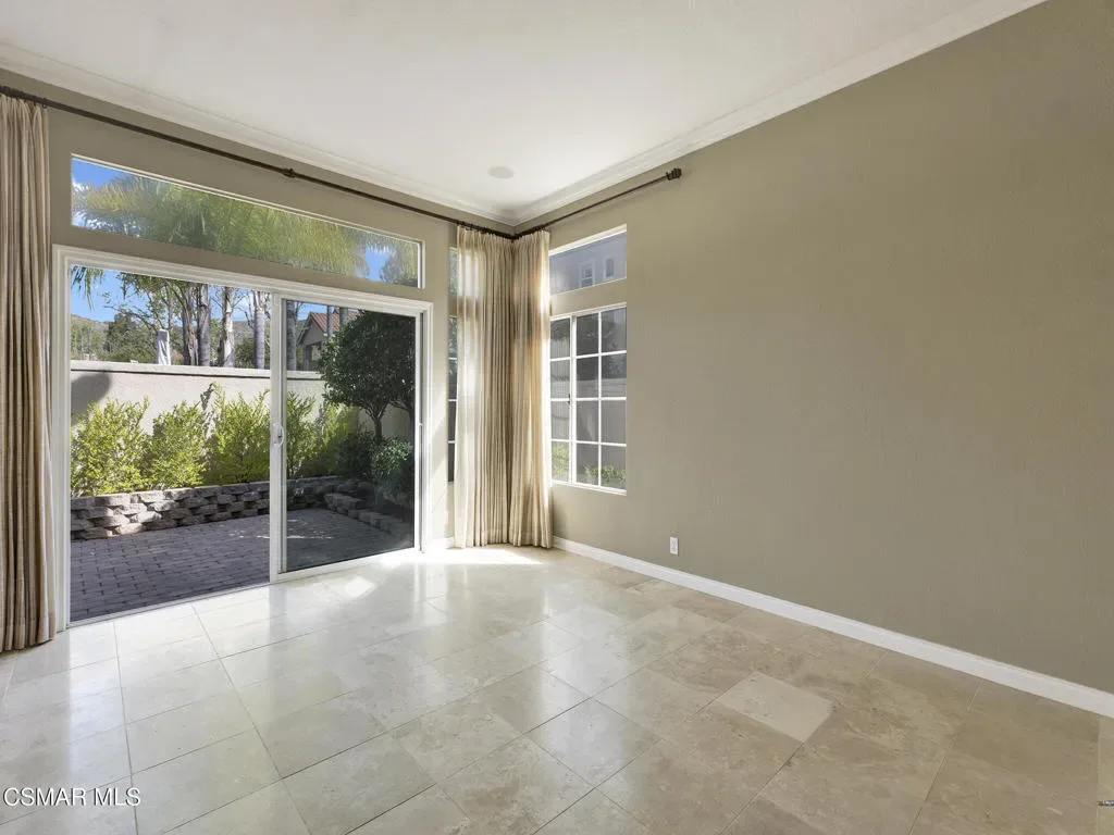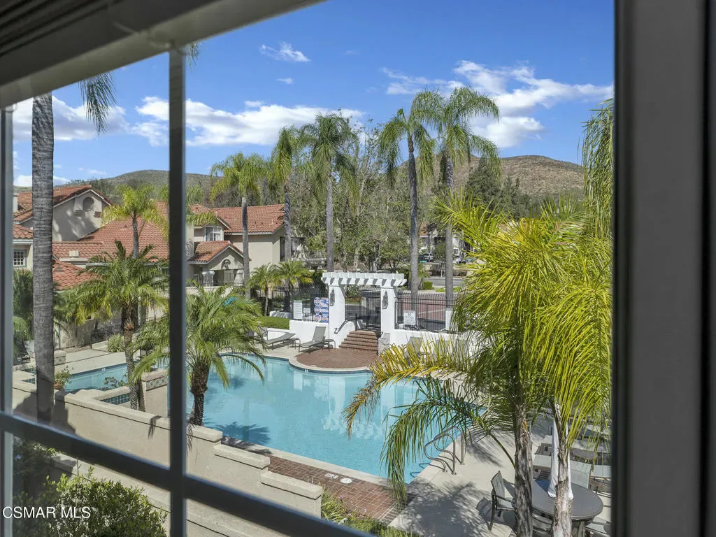 Located in the desirable Village on the Green community, this spacious end-unit home offers the largest floorplan in the neighborhood and a prime location just steps from the pool. With over 1,800 square feet of interior living space, the home feels bright and expansive, enhanced by an abundance of windows throughout.The inviting living room features vaulted ceilings, a cozy fireplace, and flows seamlessly into a separate formal dining area–perfect for entertaining. The well-appointed kitchen offers granite countertops, abundant cabinetry, a walk-in pantry, and a breakfast bar that opens to a generous nook area for casual dining or a family room. A private patio with pavers provides an easy-to-maintain outdoor space, ideal for relaxing or entertaining.The home also includes direct access to a large two-car garage, with washer and dryer hookups.Upstairs, a skylight in the hallway fills the space with natural light. All bedrooms are thoughtfully situated, including a spacious primary suite with mirrored doors at the walk-in closet, dual sinks, and a tub/shower combination. Two additional bedrooms feature mirrored wardrobe doors and share a full bathroom with dual sinks and a tub/shower combo. A convenient guest bath is located downstairs.The community offers a pool, spa, shower area, and plentiful guest parking. Located within the beautifully maintained Wood Ranch master-planned community, residents enjoy close proximity to scenic trails, shopping, and a golf course -making this an exceptional place to call home.