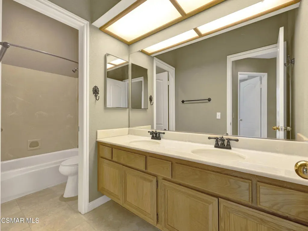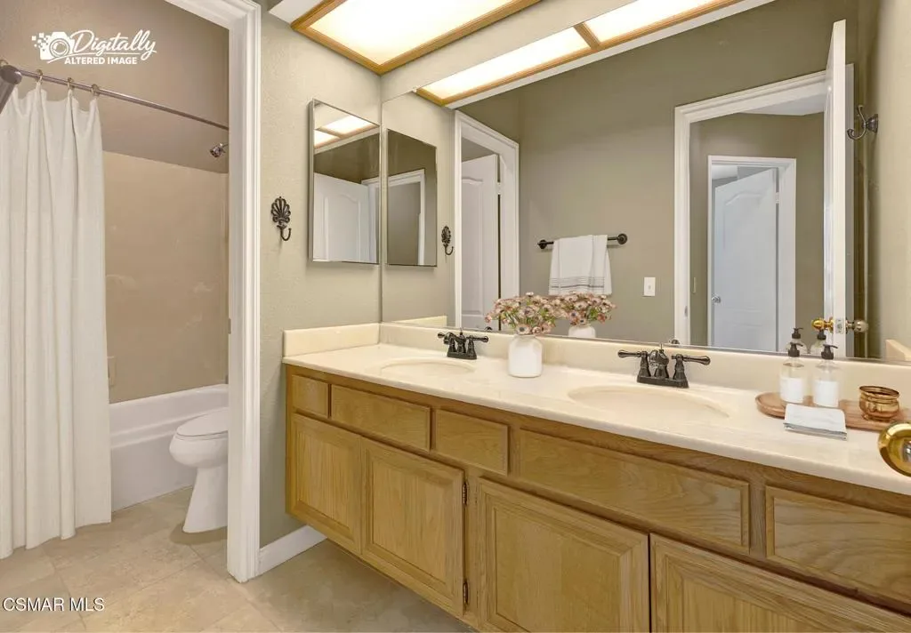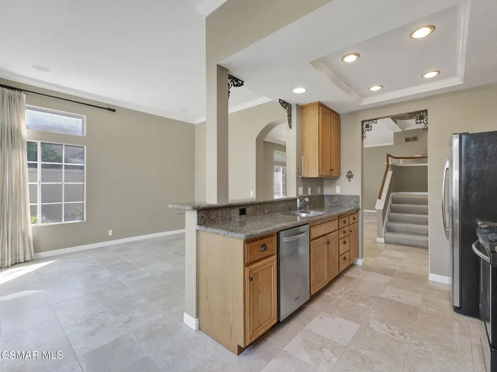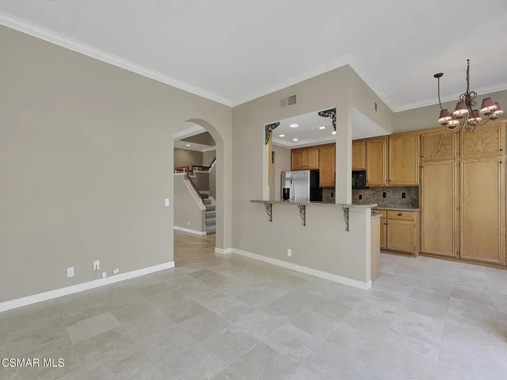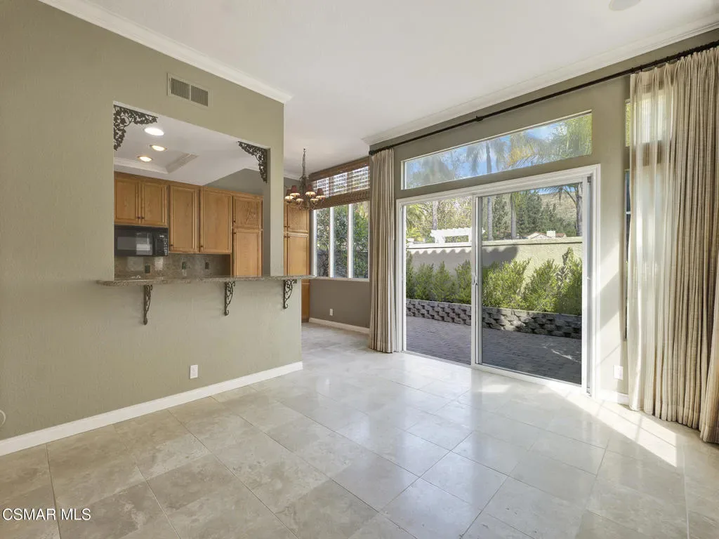 Located in the desirable Village on the Green community, this spacious end-unit home offers the largest floorplan in the neighborhood and a prime location just steps from the pool. With over 1,800 square feet of interior living space, the home feels bright and expansive, enhanced by an abundance of windows throughout.The inviting living room features vaulted ceilings, a cozy fireplace, and flows seamlessly into a separate formal dining area–perfect for entertaining. The well-appointed kitchen offers granite countertops, abundant cabinetry, a walk-in pantry, and a breakfast bar that opens to a generous nook area for casual dining or a family room. A private patio with pavers provides an easy-to-maintain outdoor space, ideal for relaxing or entertaining.The home also includes direct access to a large two-car garage, with washer and dryer hookups.Upstairs, a skylight in the hallway fills the space with natural light. All bedrooms are thoughtfully situated, including a spacious primary suite with mirrored doors at the walk-in closet, dual sinks, and a tub/shower combination. Two additional bedrooms feature mirrored wardrobe doors and share a full bathroom with dual sinks and a tub/shower combo. A convenient guest bath is located downstairs.The community offers a pool, spa, shower area, and plentiful guest parking. Located within the beautifully maintained Wood Ranch master-planned community, residents enjoy close proximity to scenic trails, shopping, and a golf course -making this an exceptional place to call home.